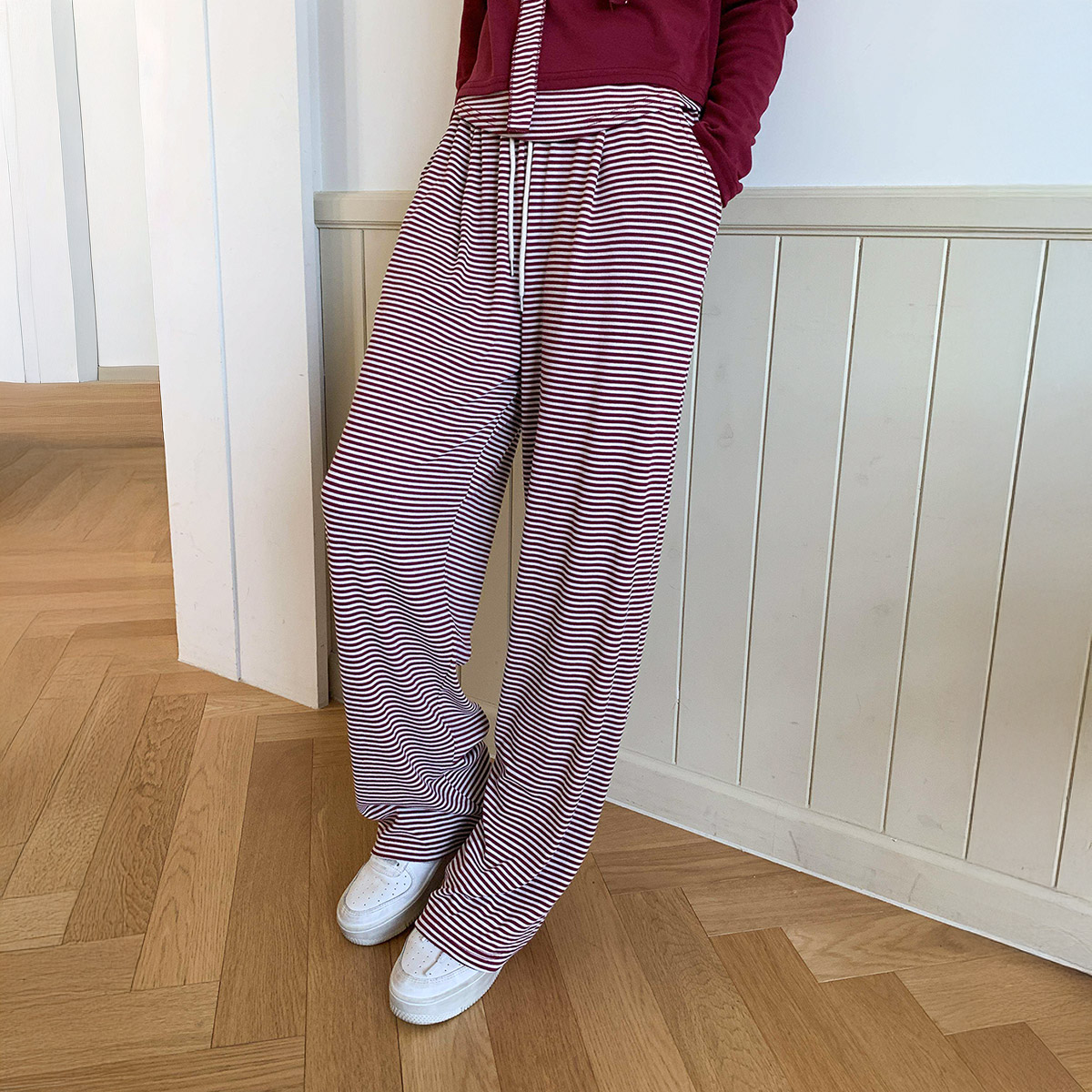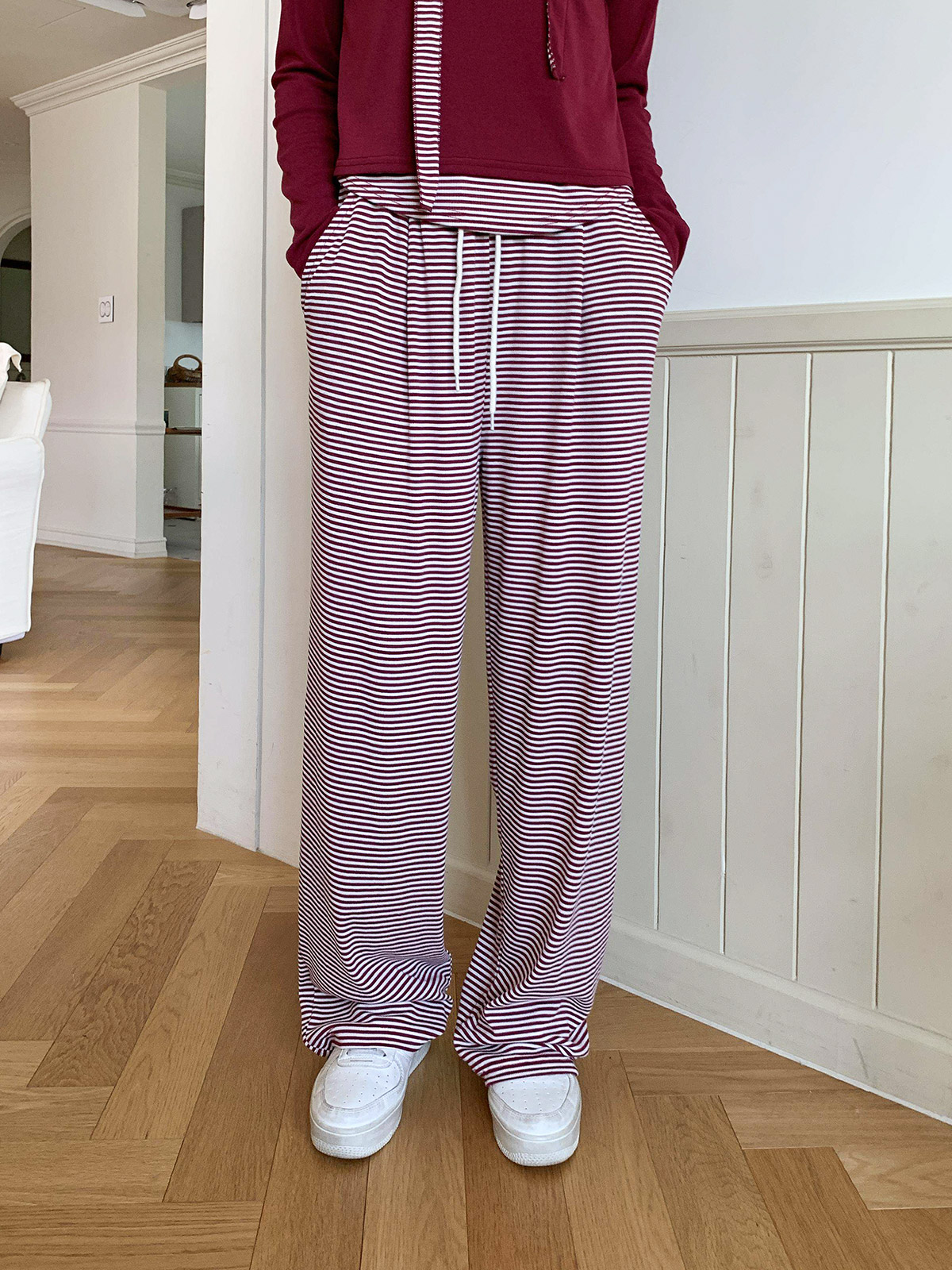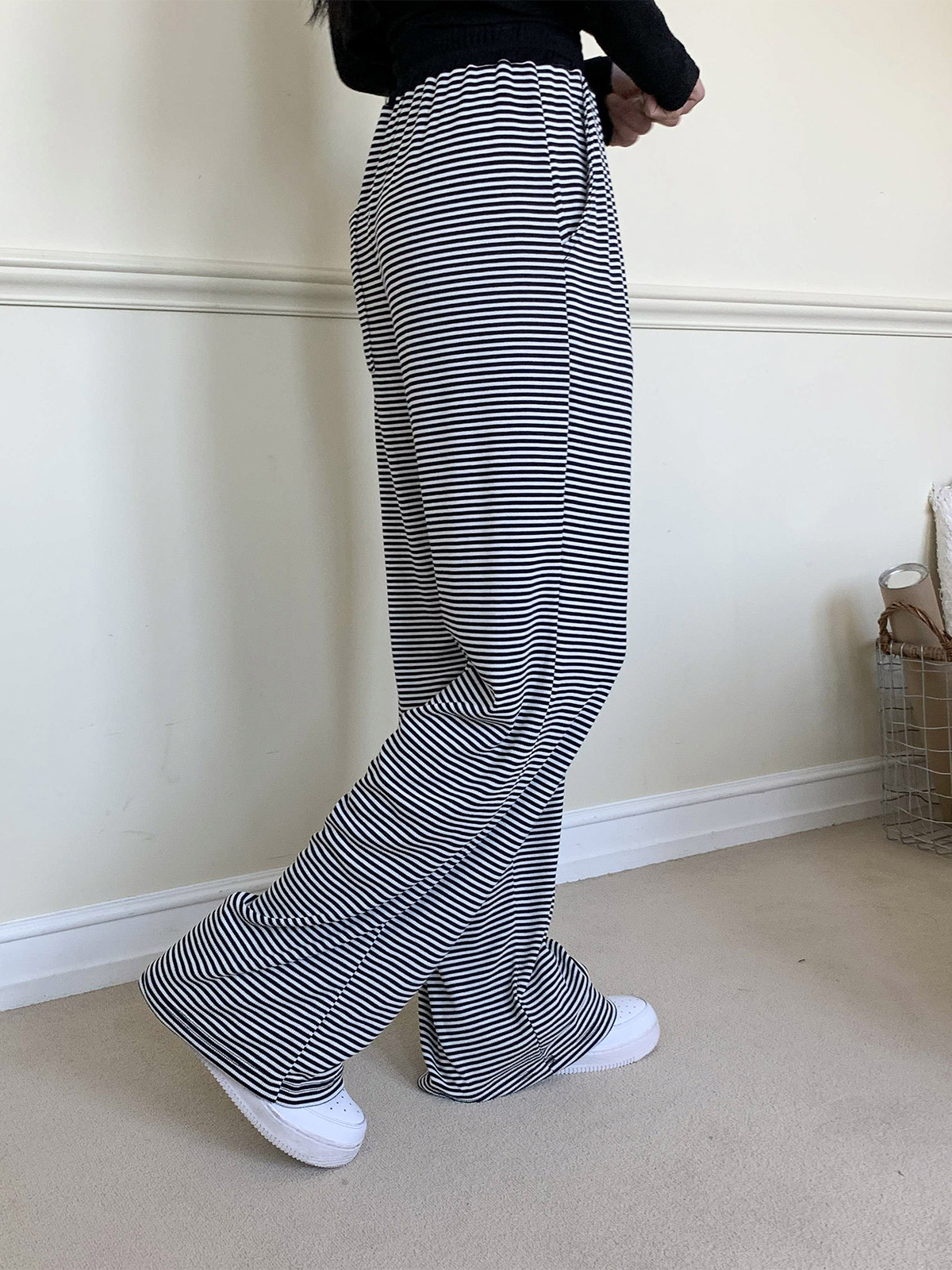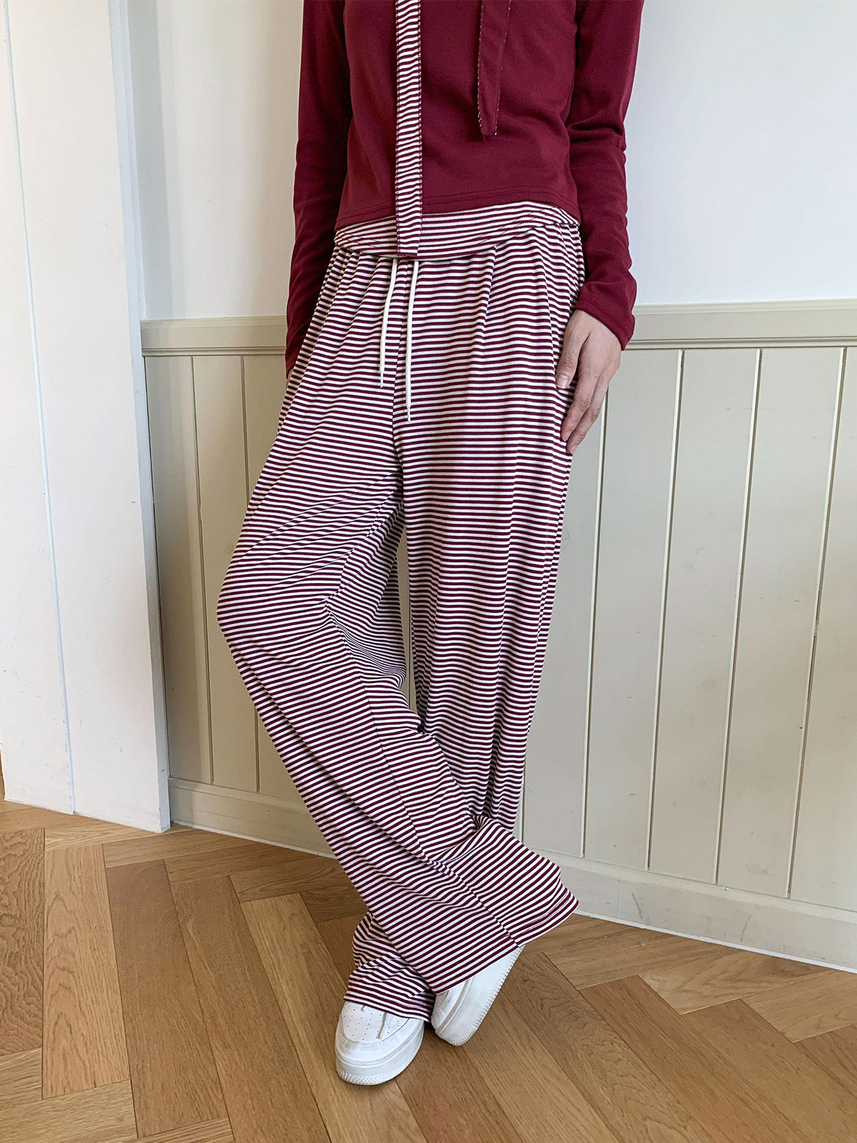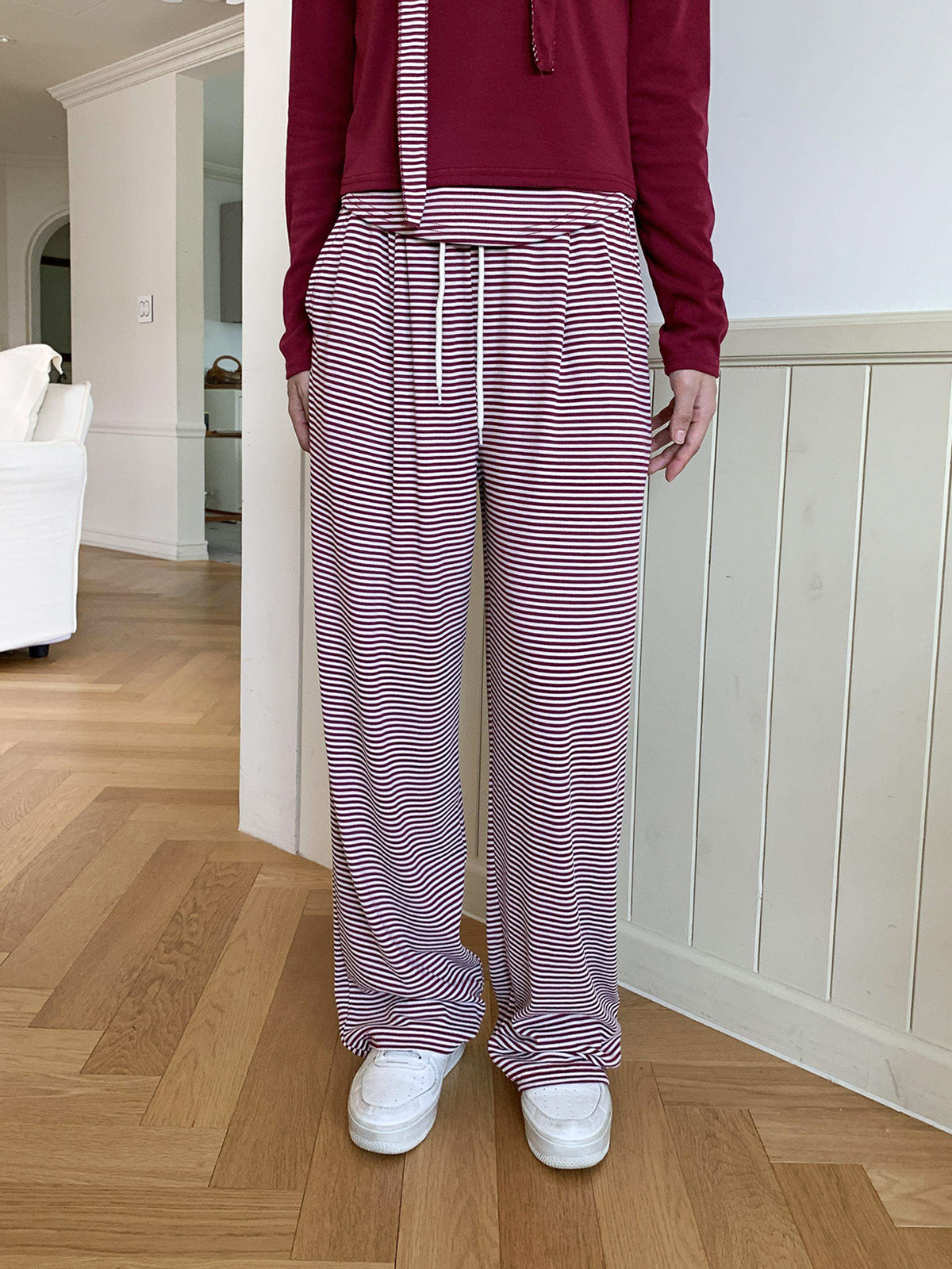 스트라이프 패턴이 돋보이는 편안한 핏의 밴딩 팬츠