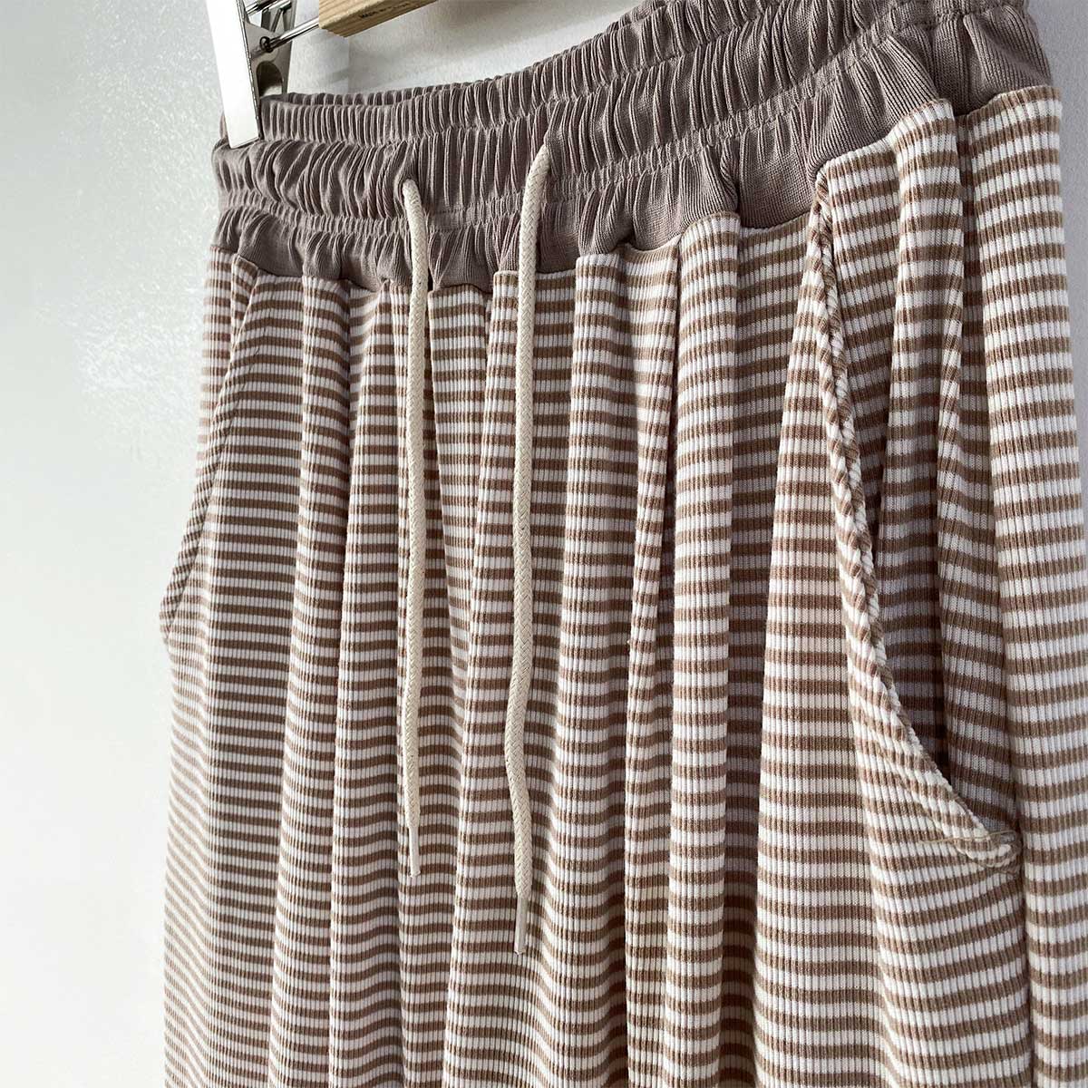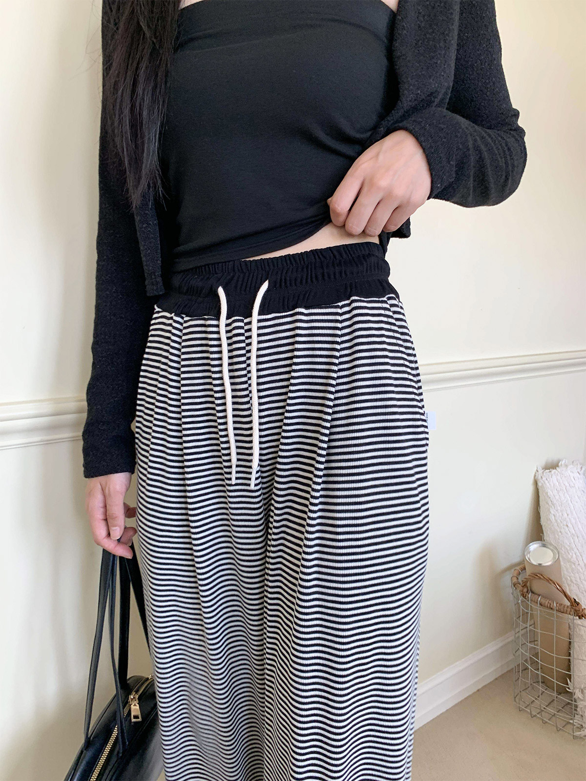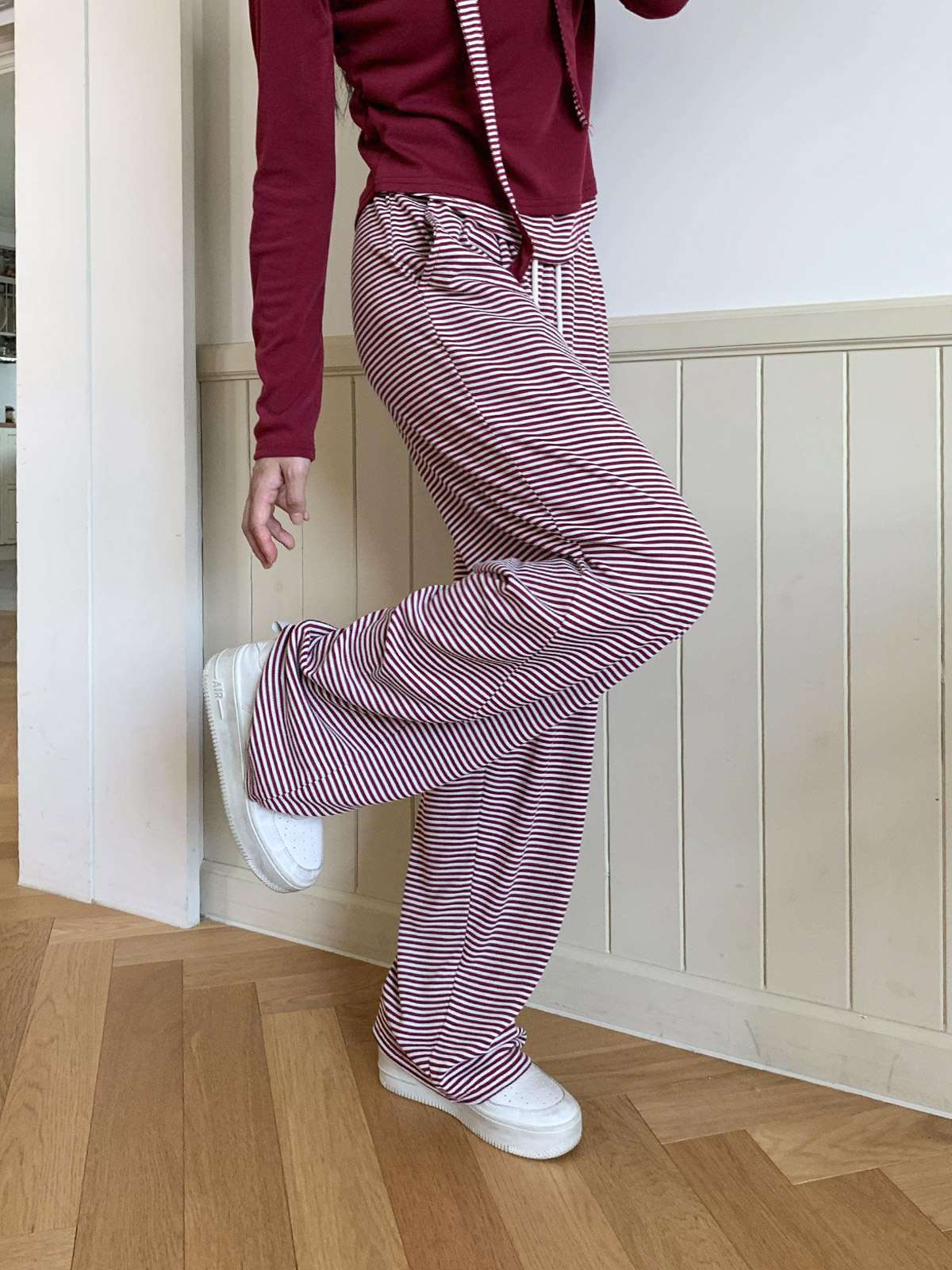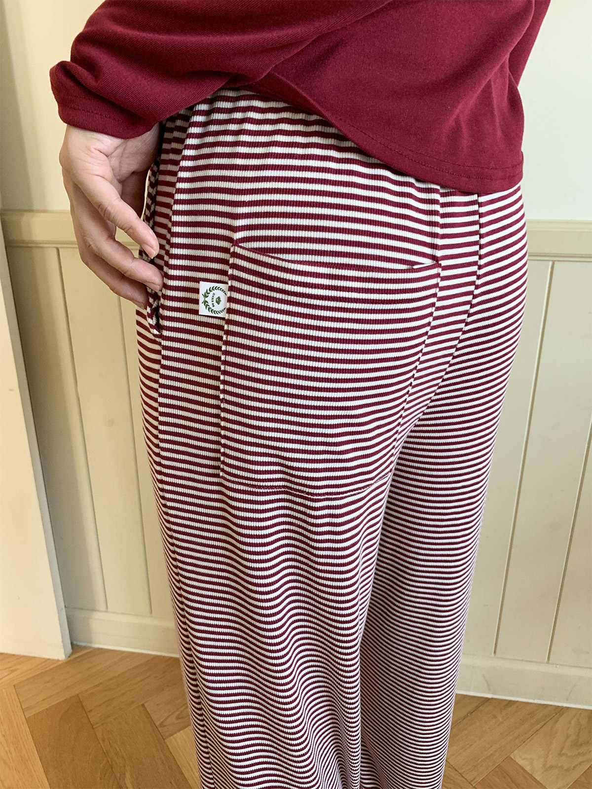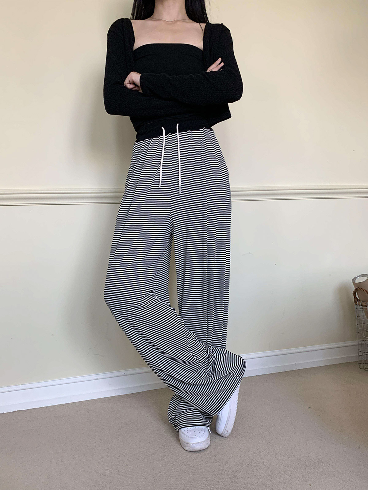 스트라이프 패턴이 돋보이는 편안한 핏의 밴딩 팬츠