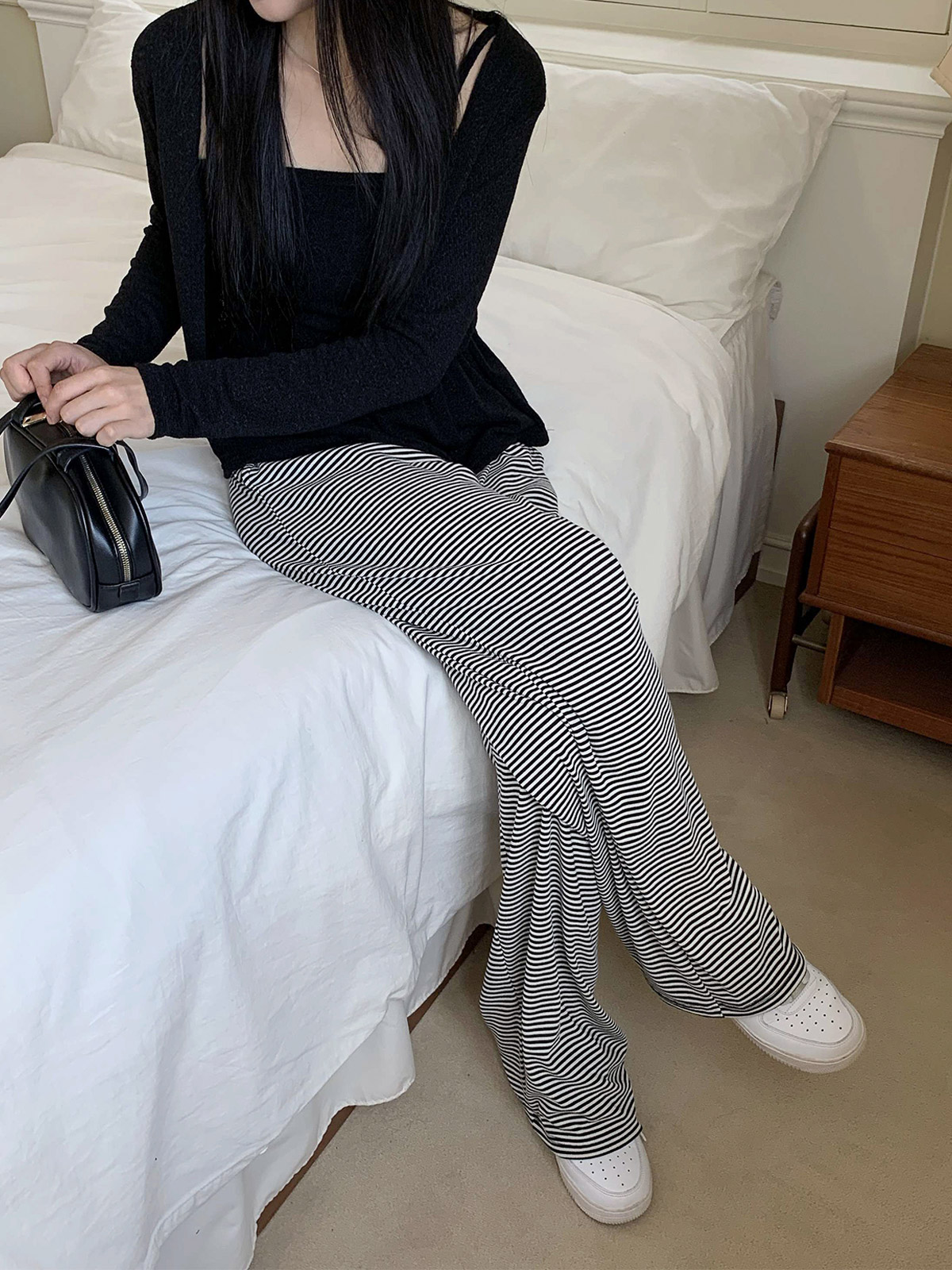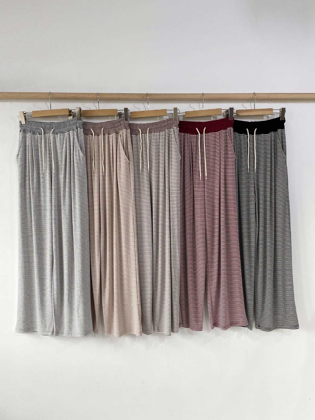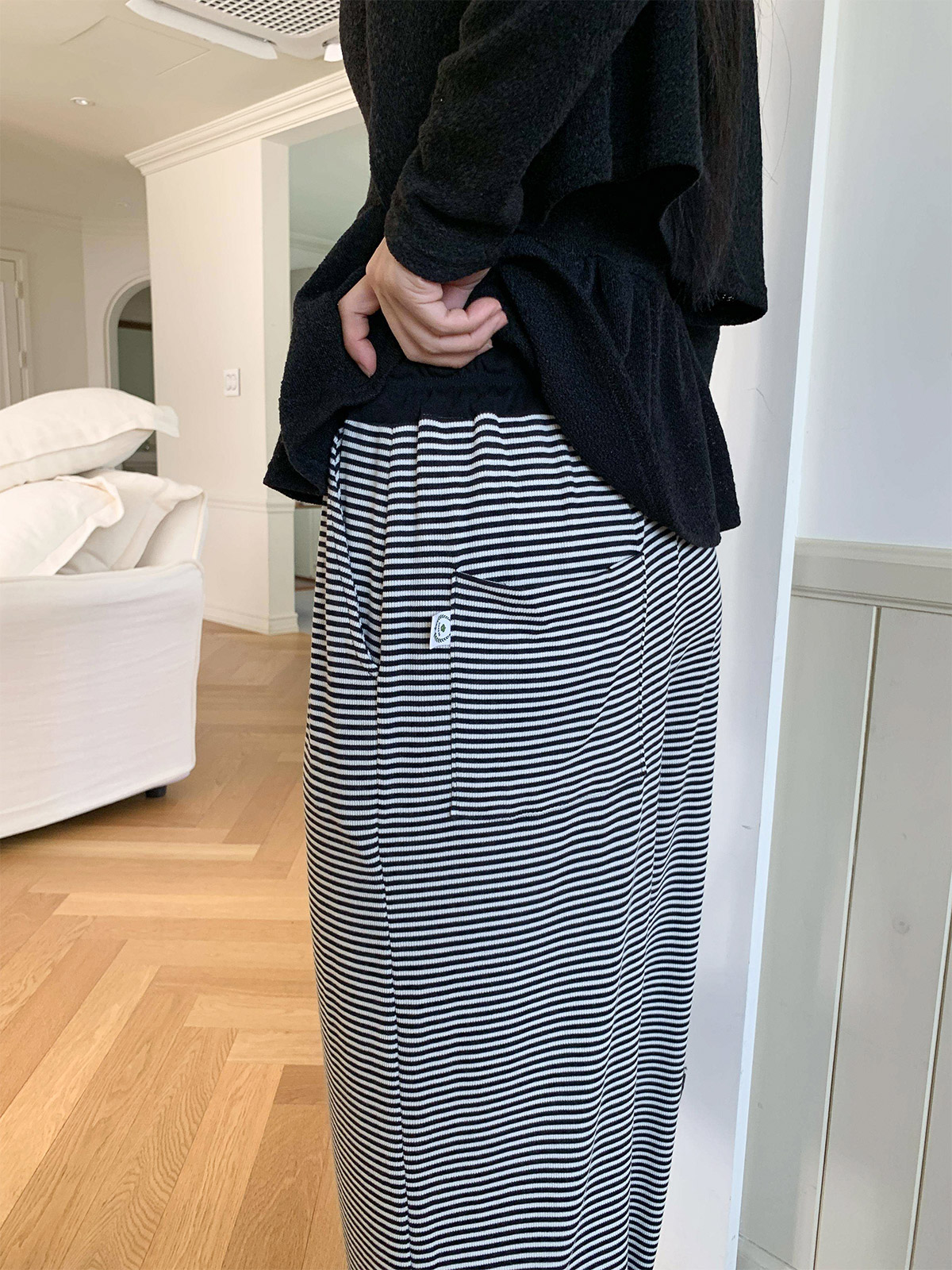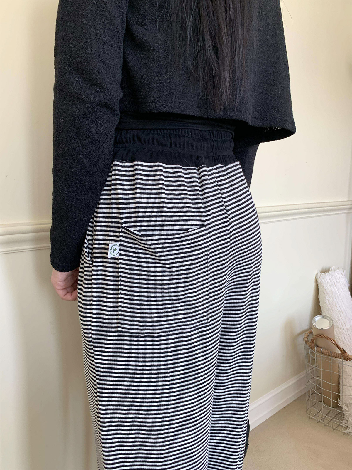 편안한 착용감을 주는 스트라이프 패턴 밴딩 팬츠예요!