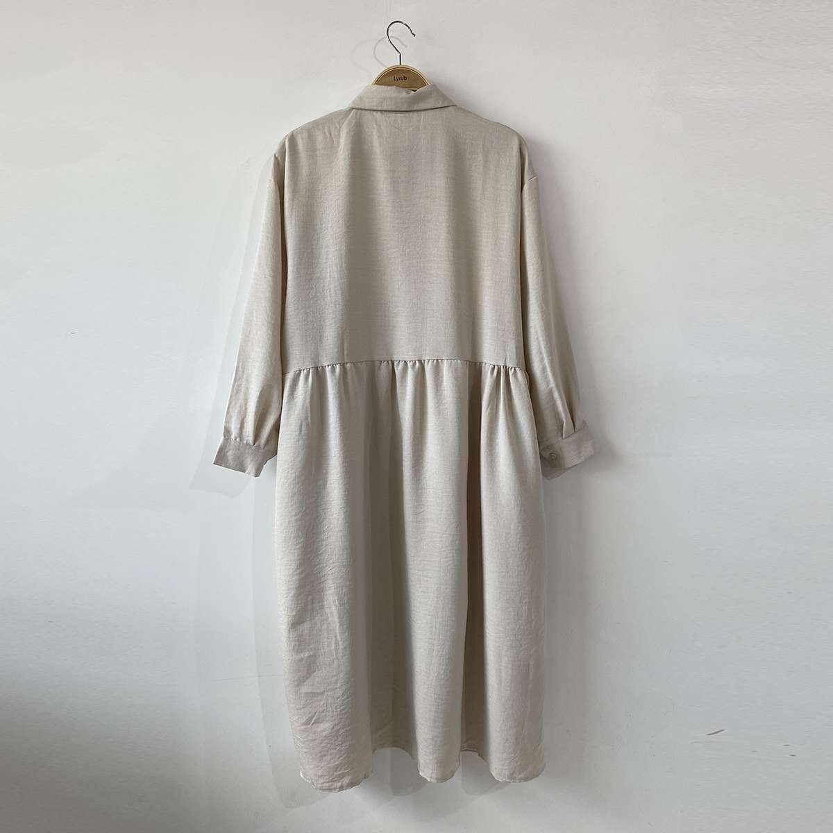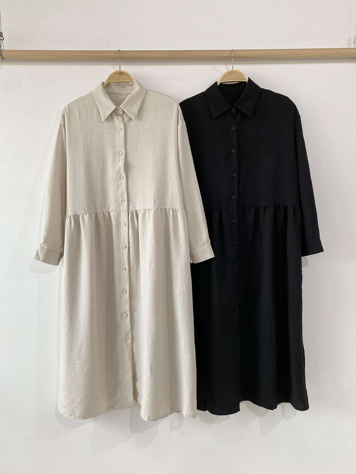 [ OPS10401K58-드모티 오버핏 플레어 카라 셔츠 롱 원피스 ]