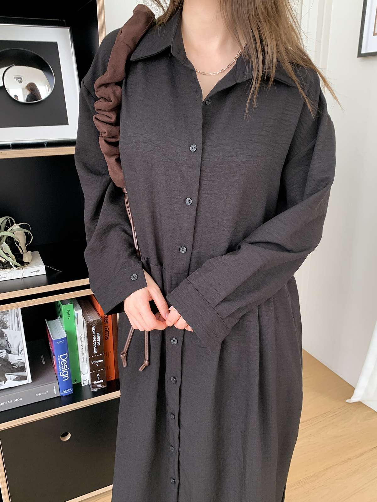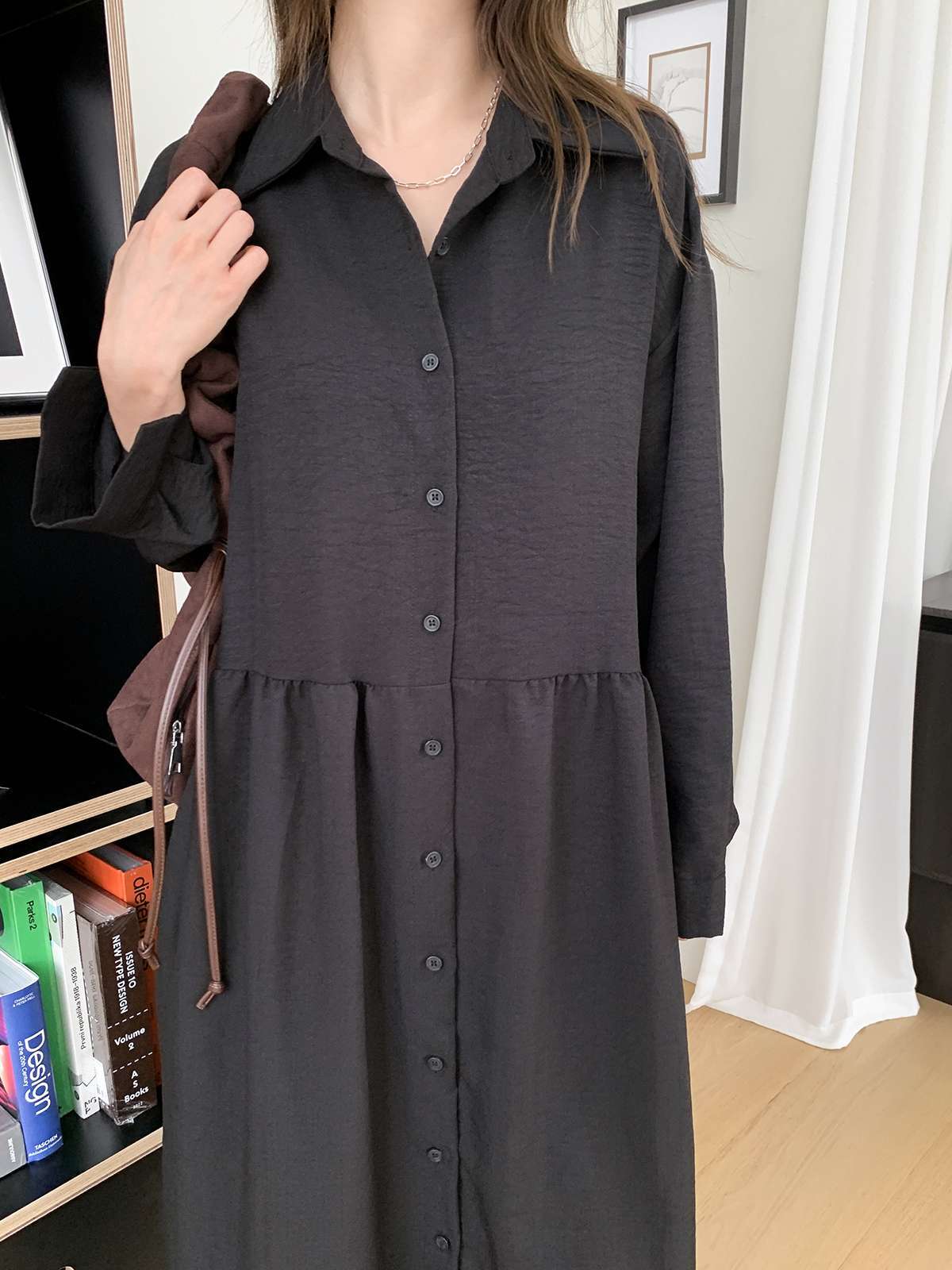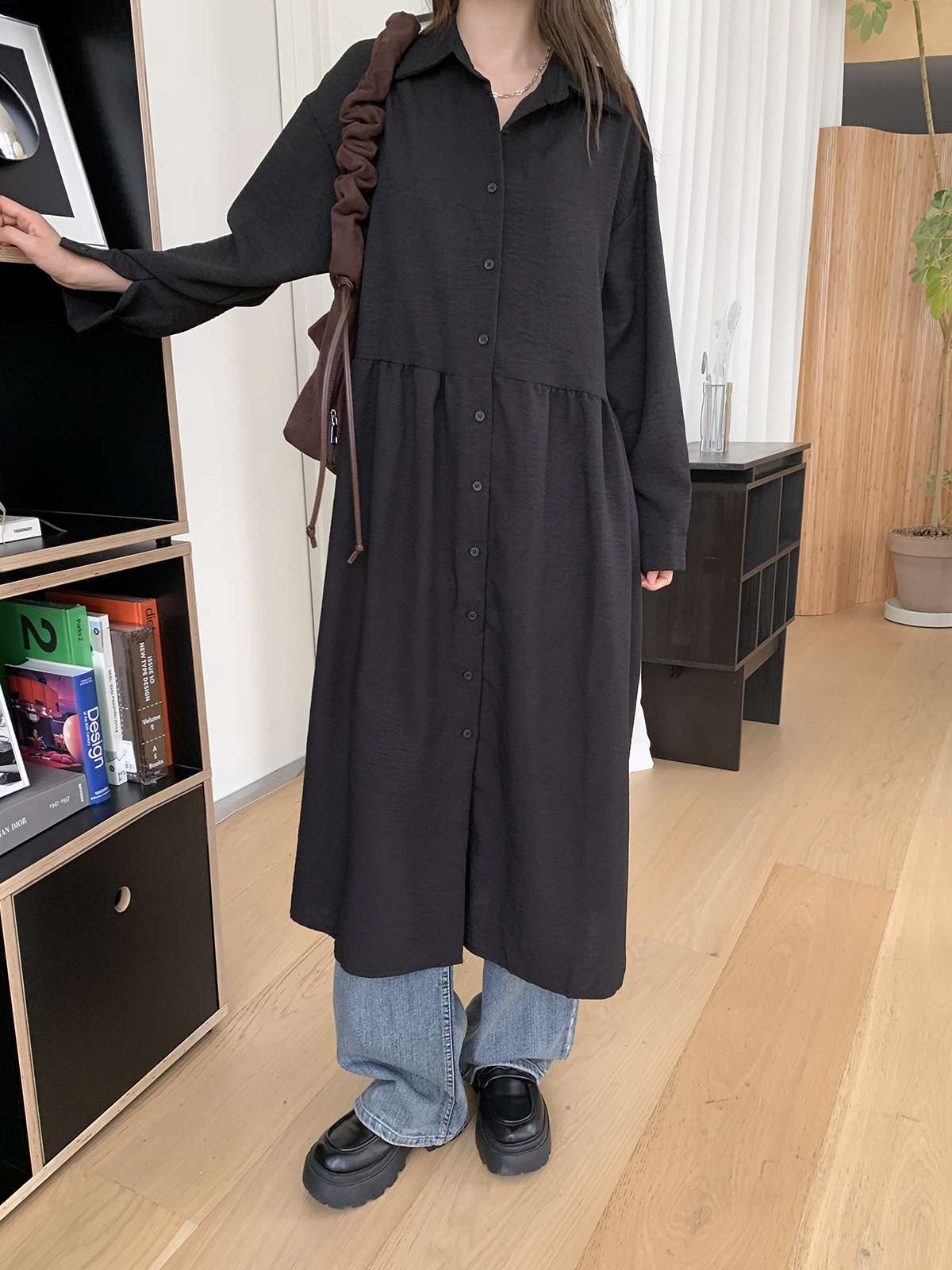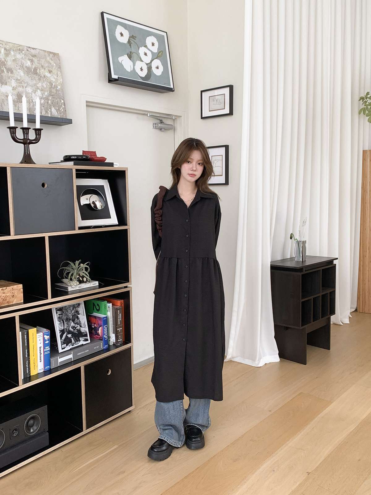 OPS10401K58-드모티 오버핏 플레어 카라 셔츠 롱 원피스