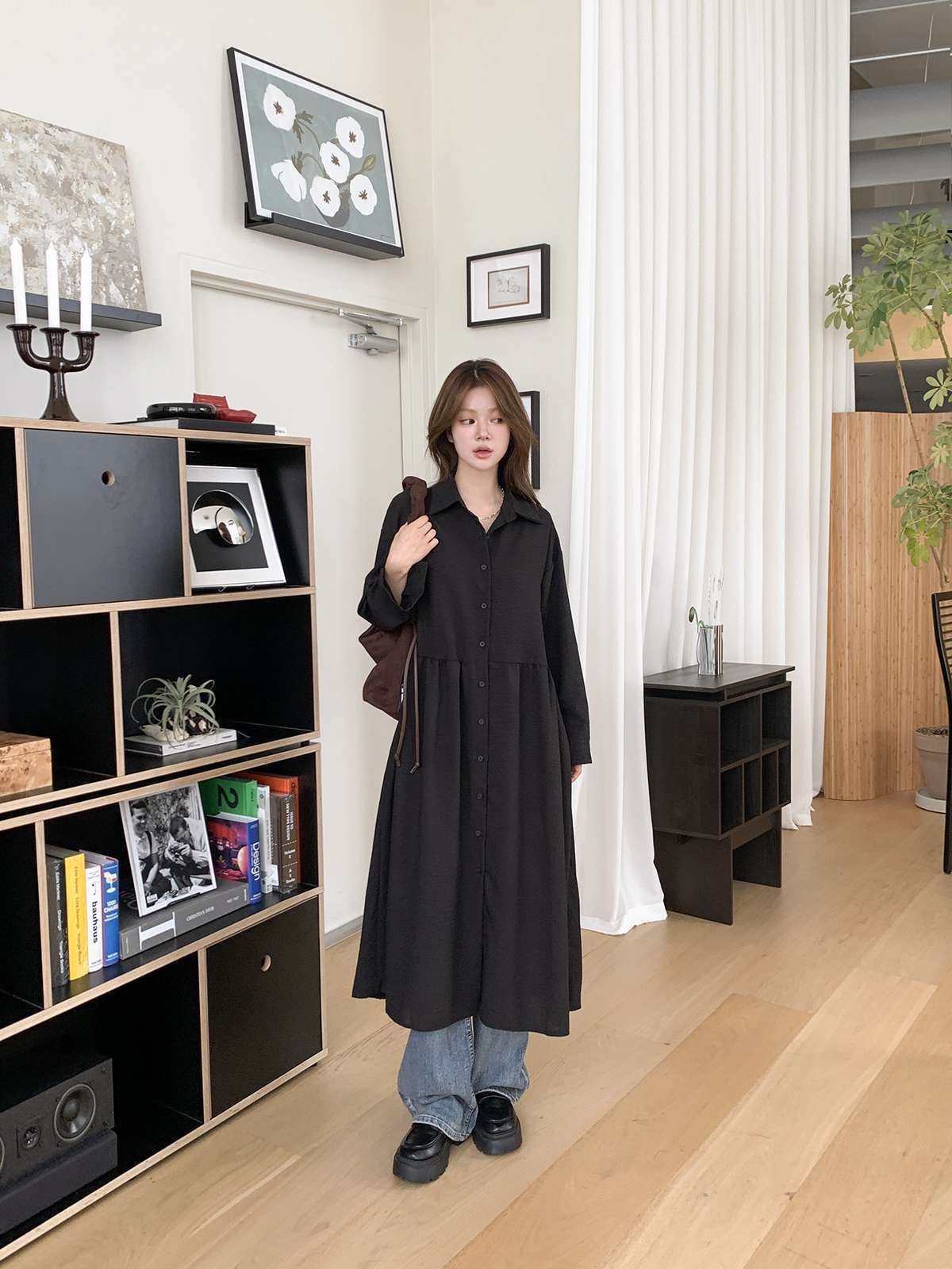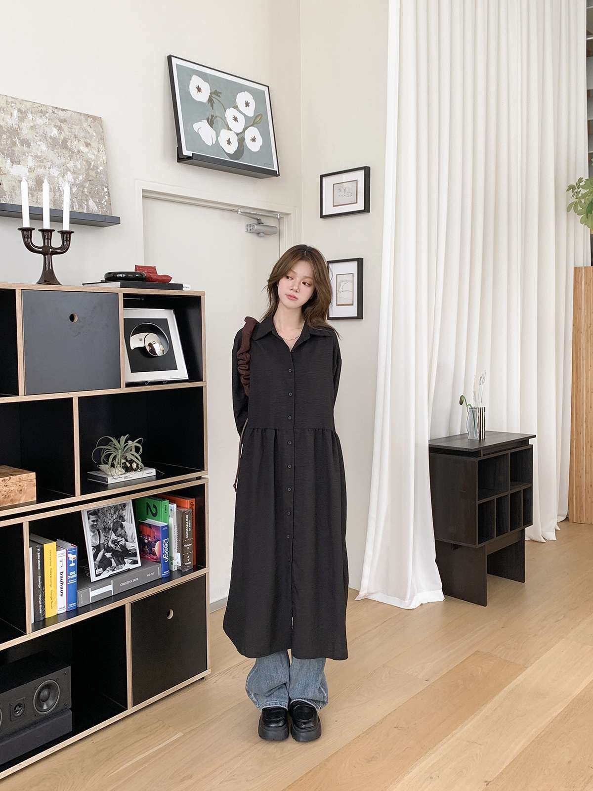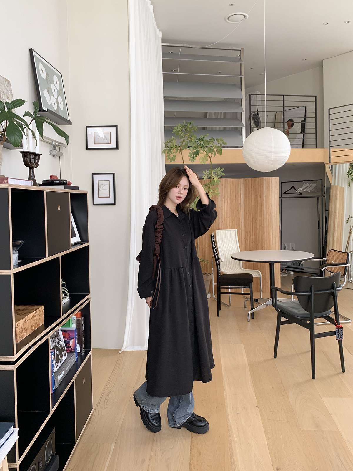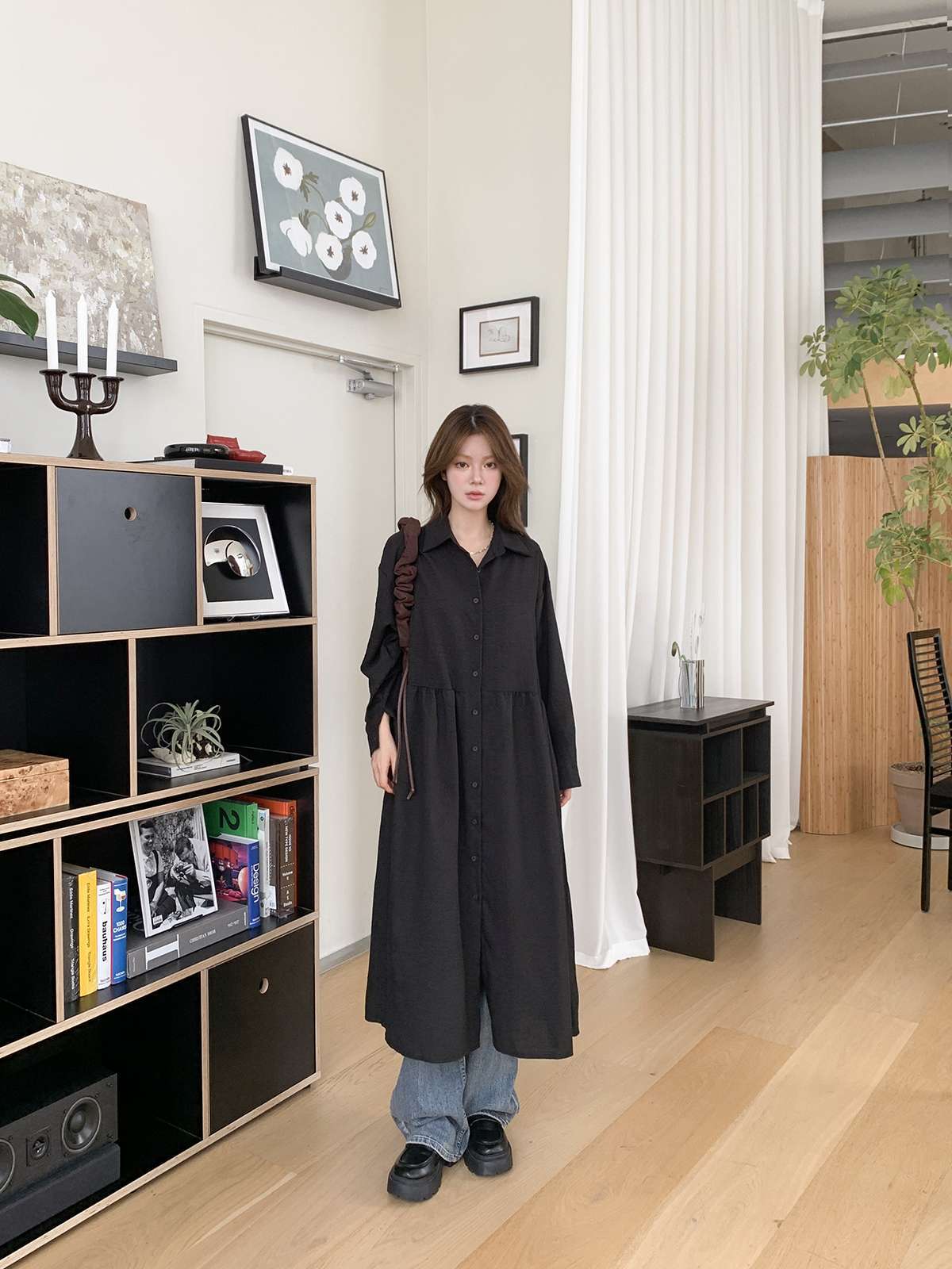 OPS10401K58-드모티 오버핏 플레어 카라 셔츠 롱 원피스