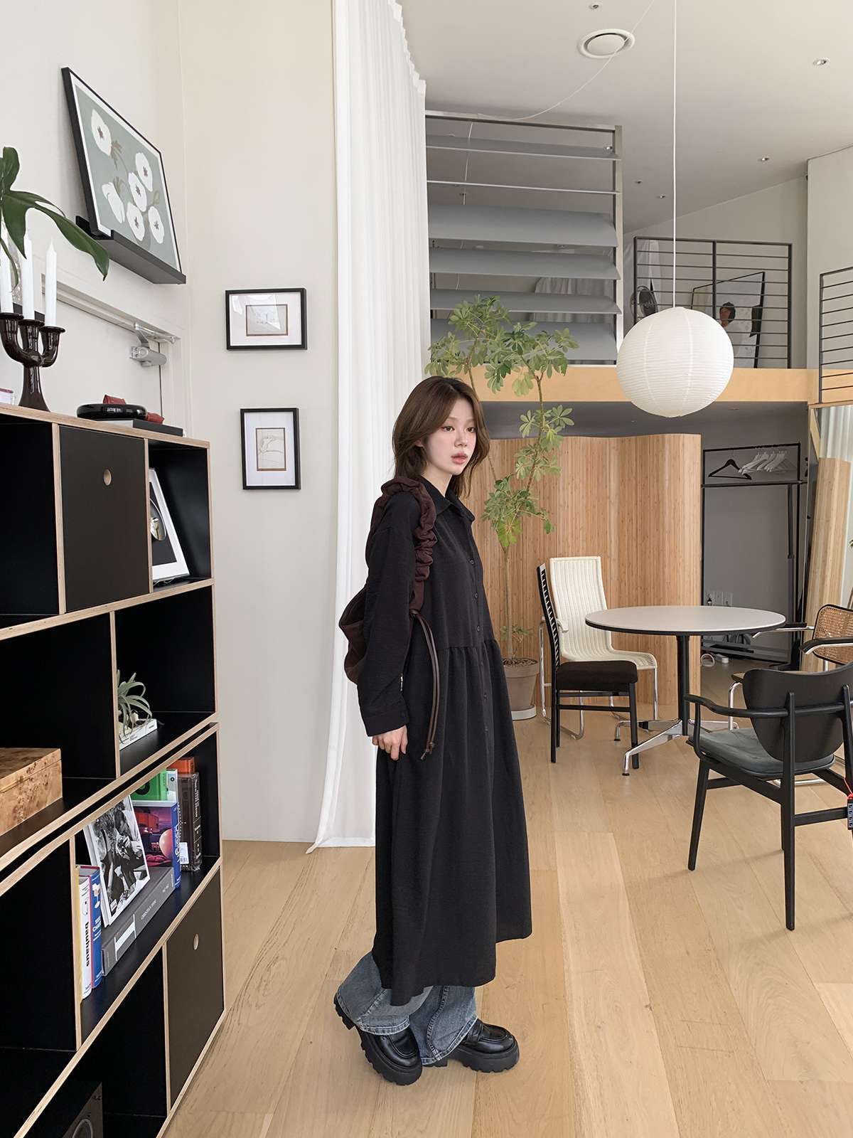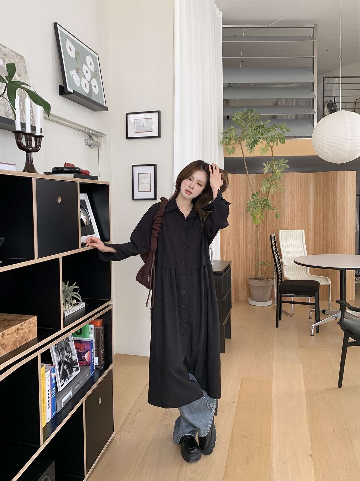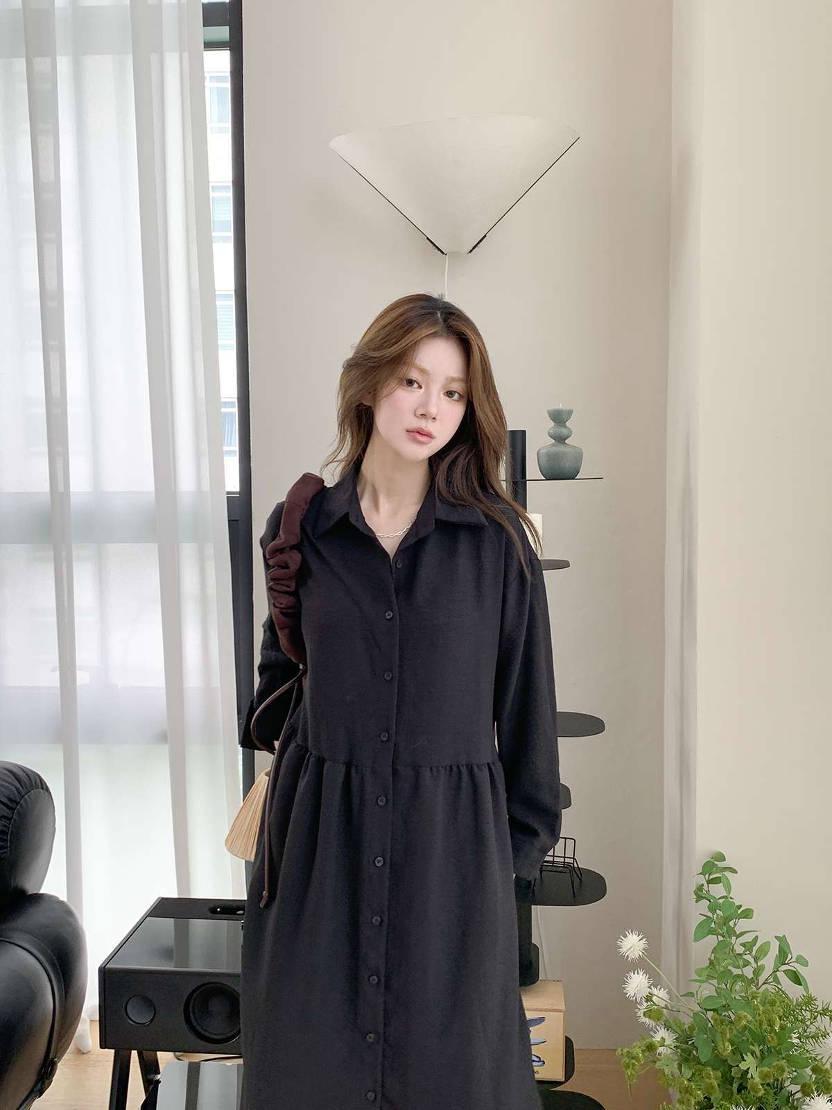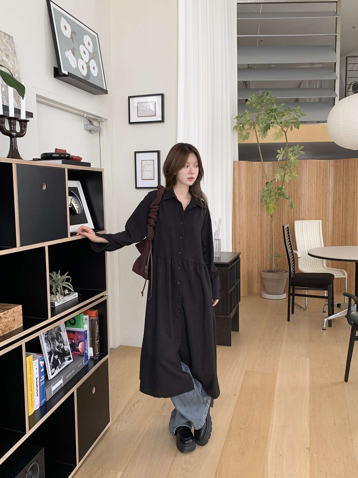 OPS10401K58-드모티 오버핏 플레어 카라 셔츠 롱 원피스