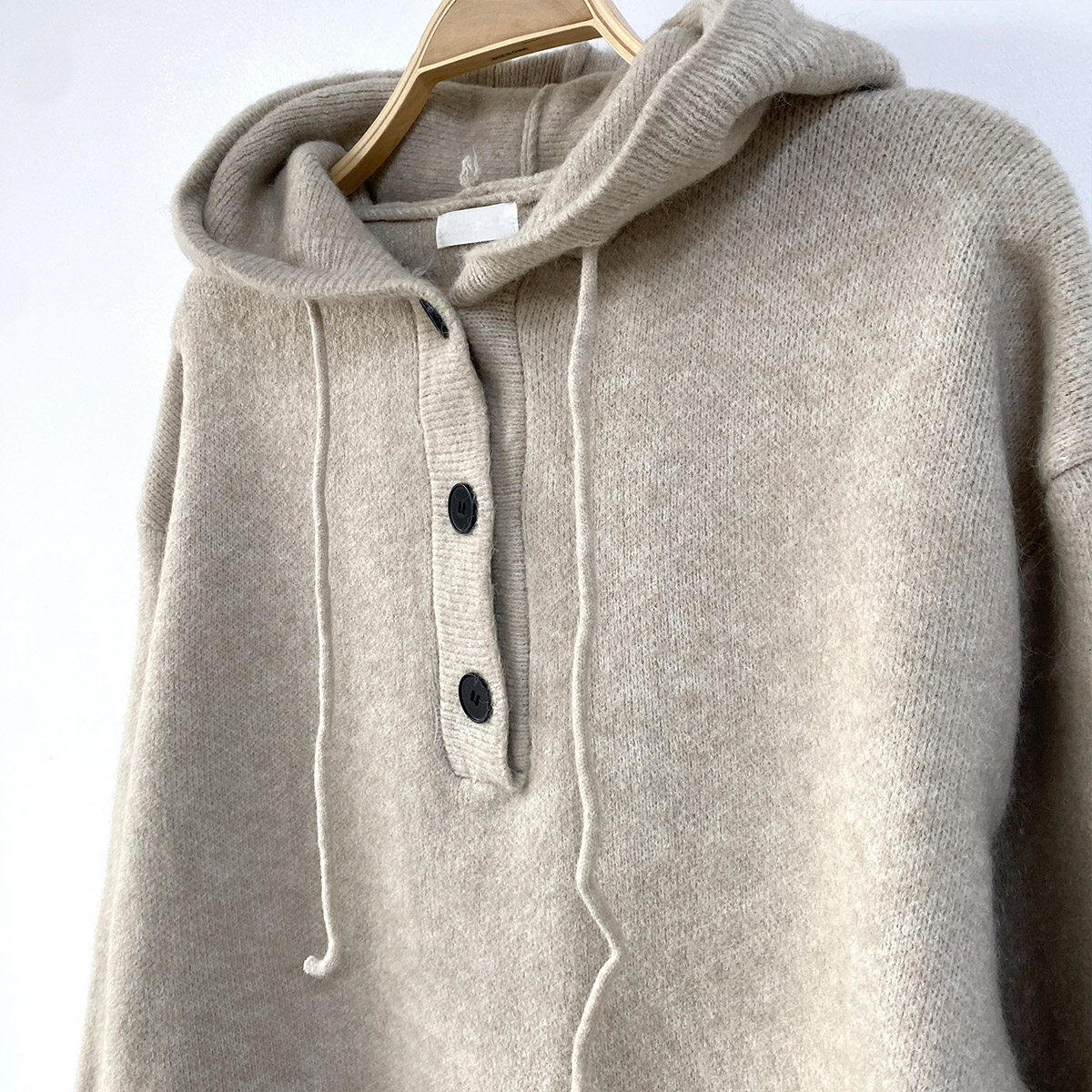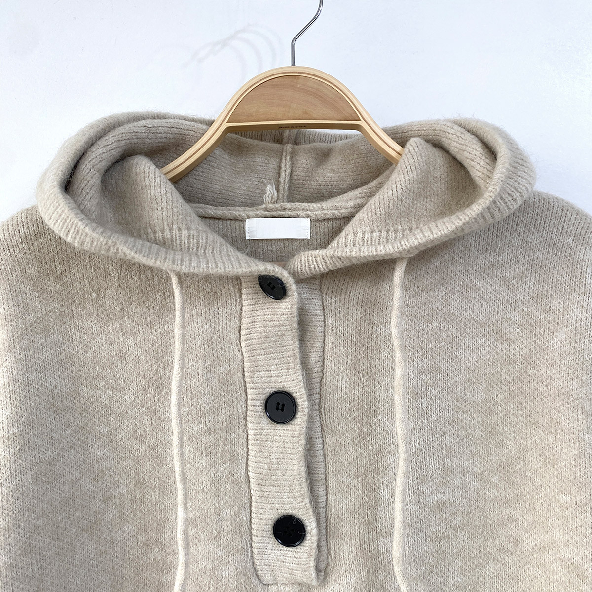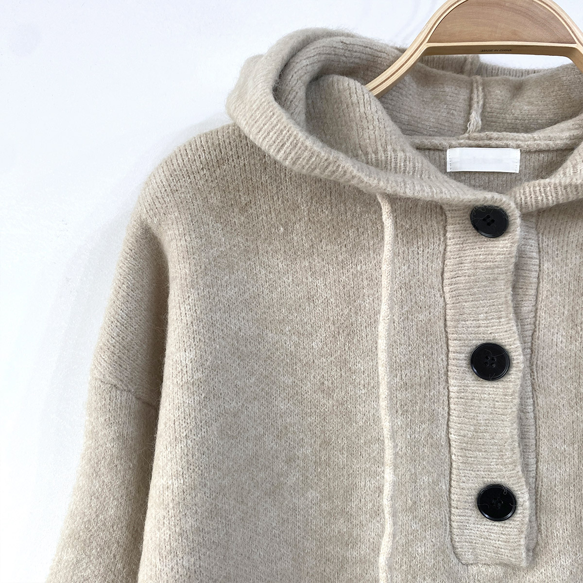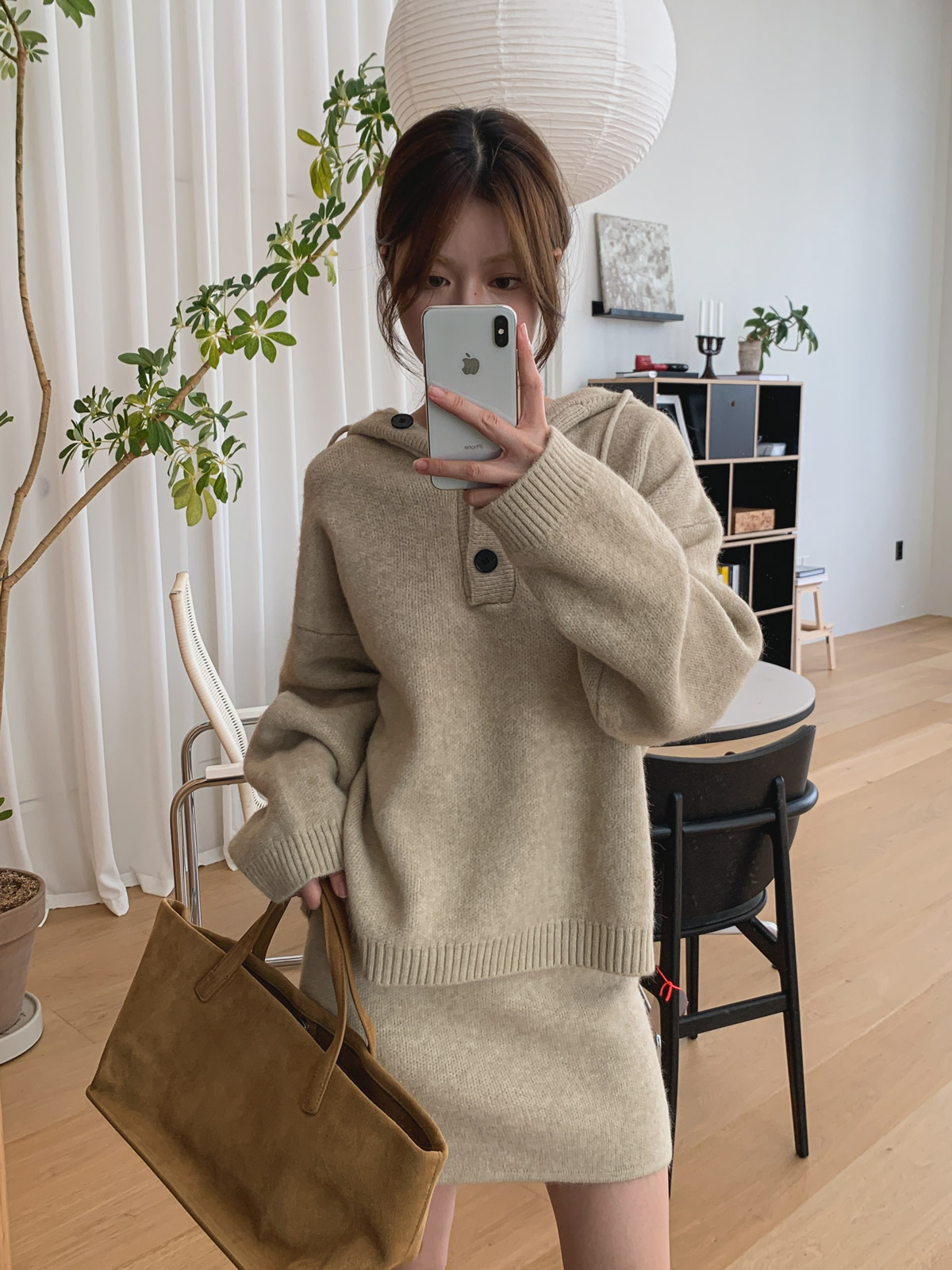 SET3826K58-드올라 쓰리 버튼 후드 니트 미니 스커트 세트