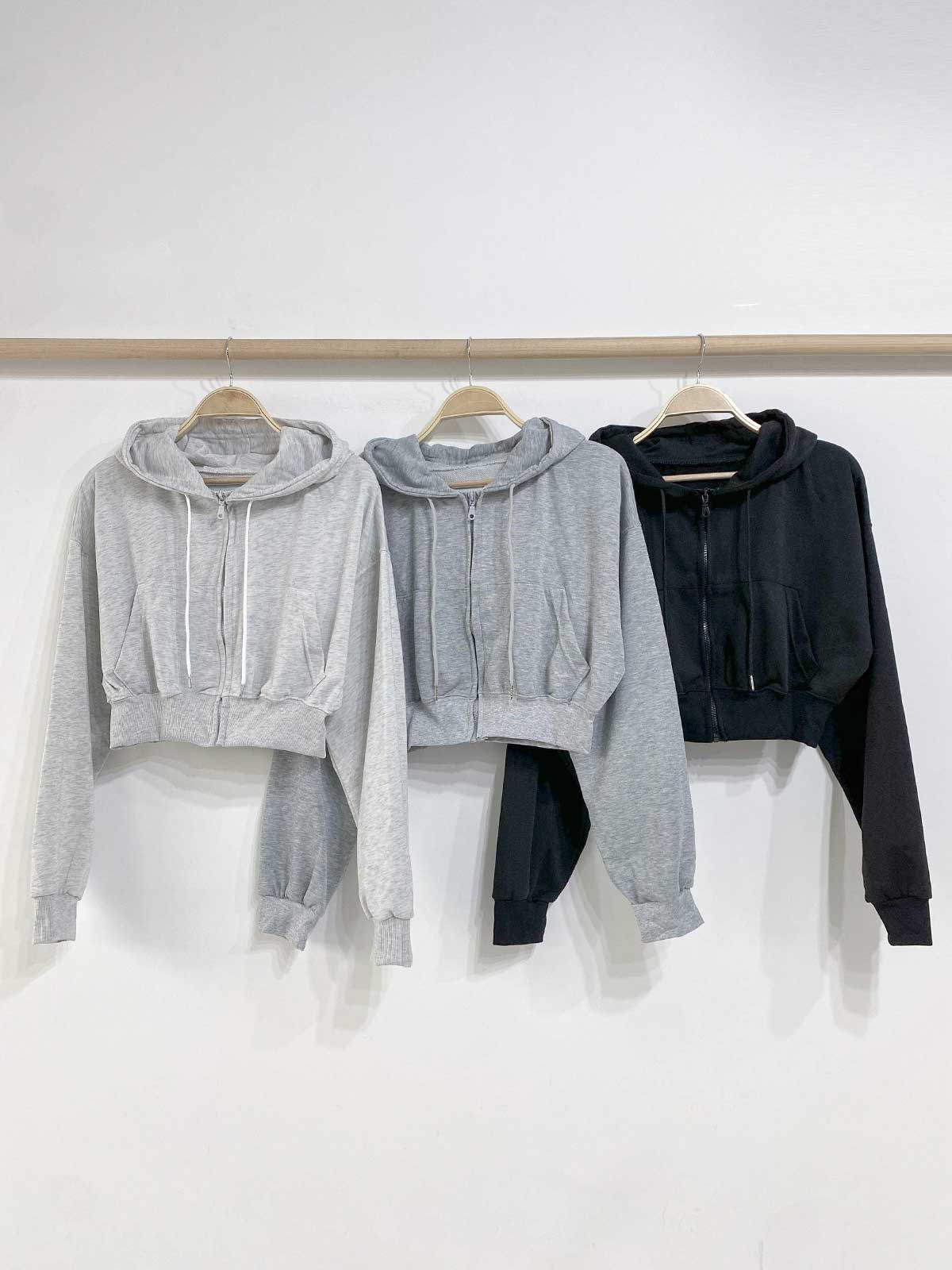JK6032K58-카올라 베이직 코튼 크롭 후드 집업