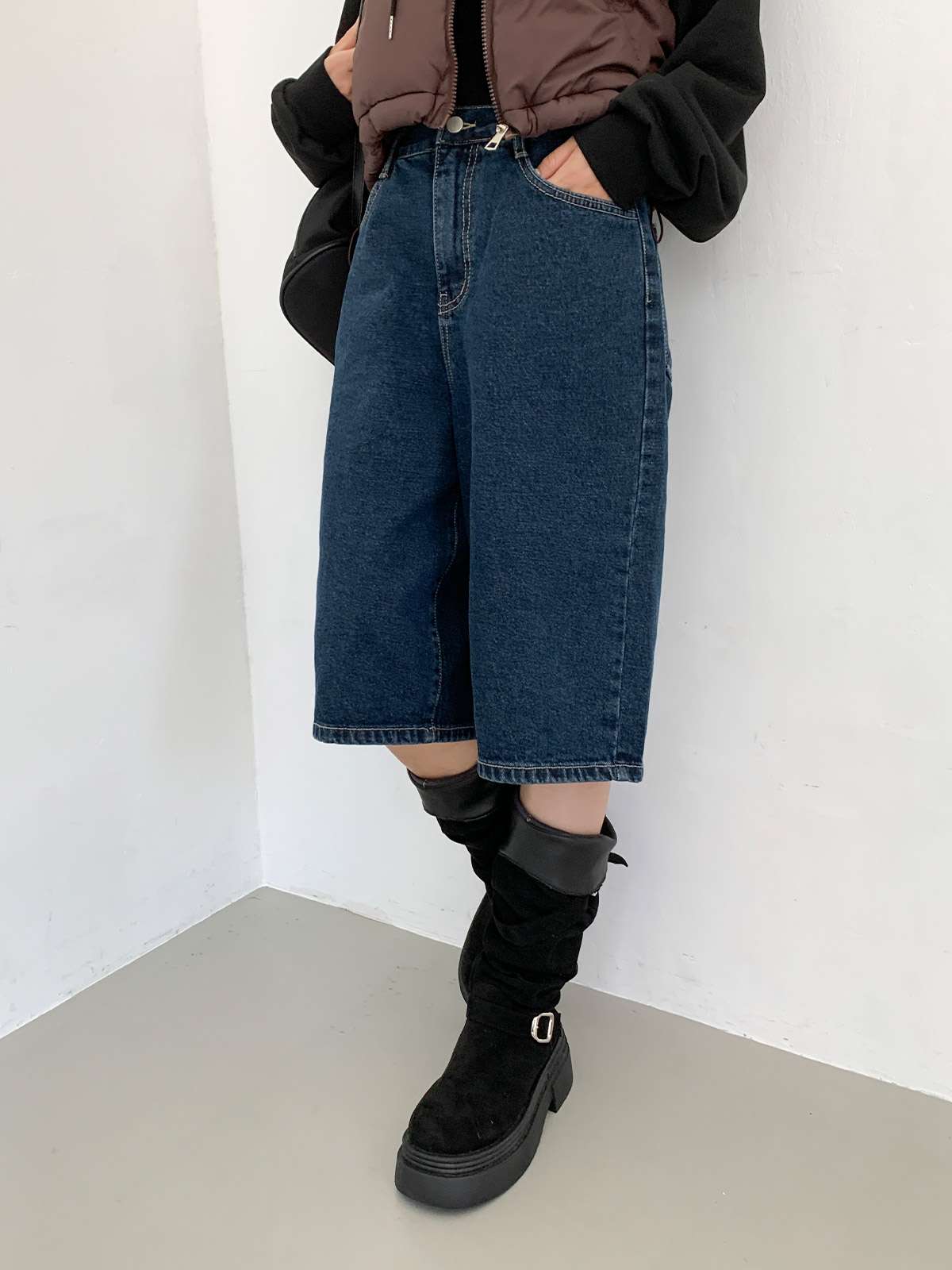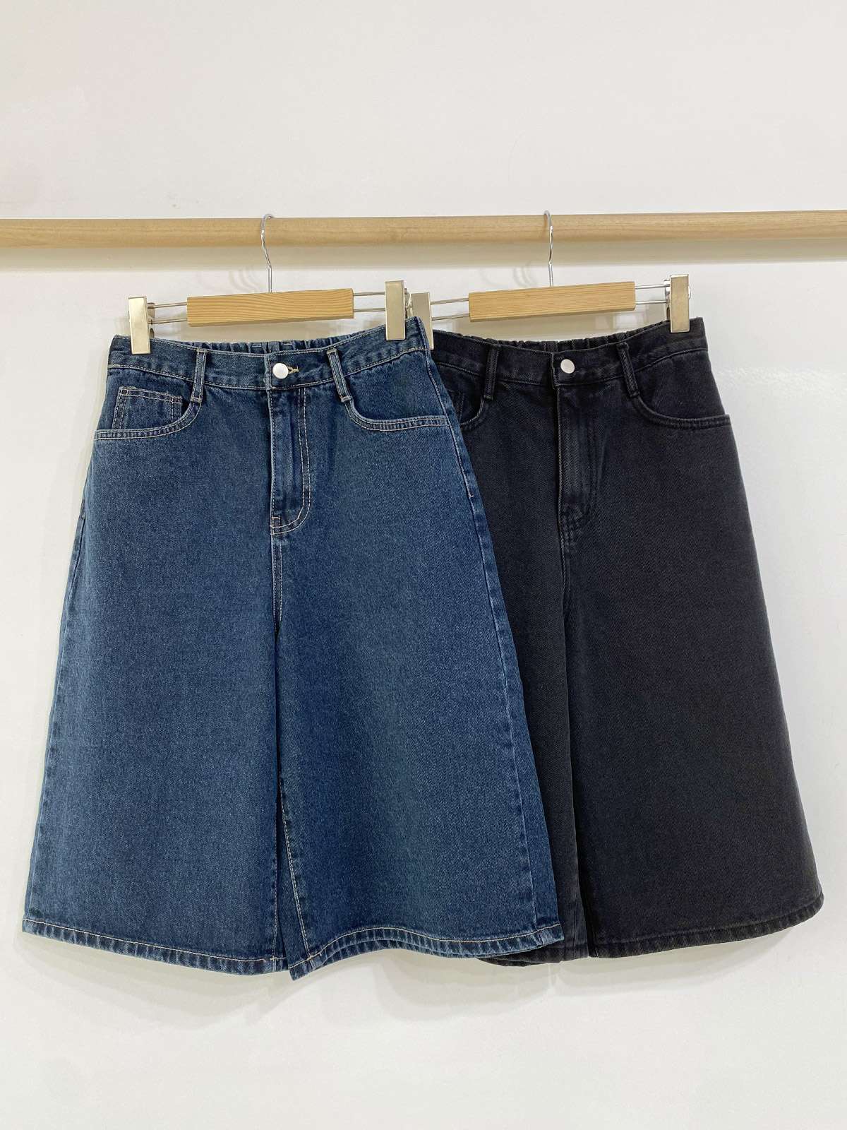 PT15433K58-즈메이 와이드 뒷밴딩 데님 버뮤다 팬츠