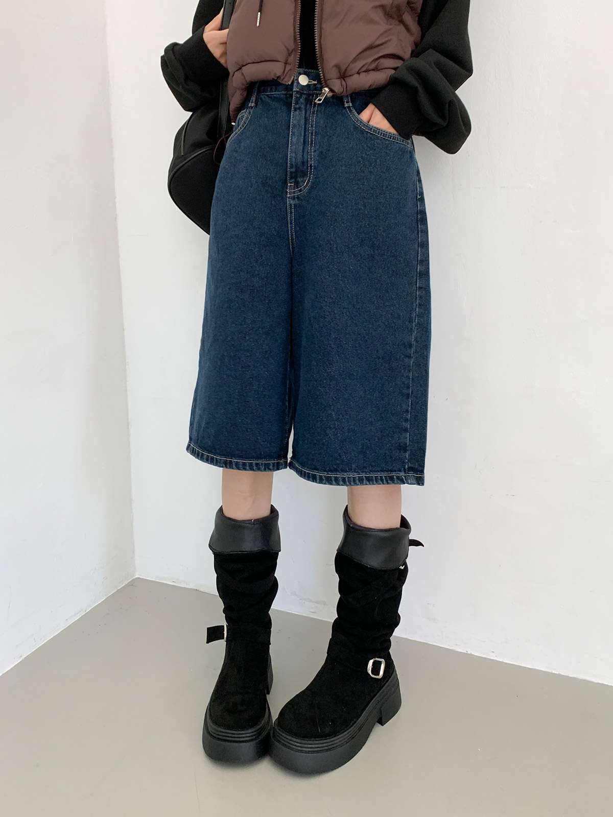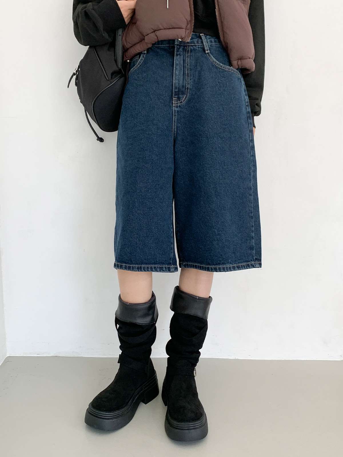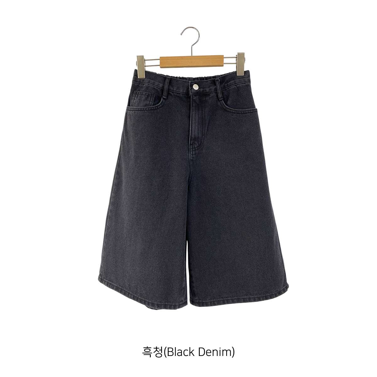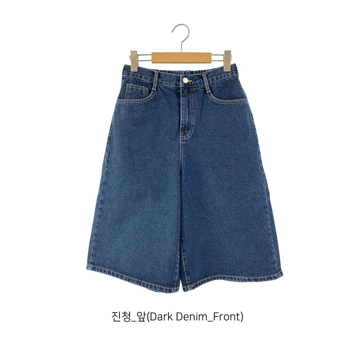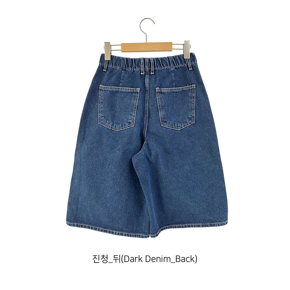 [ PT15433K58-즈메이 와이드 뒷밴딩 데님 버뮤다 팬츠 ]