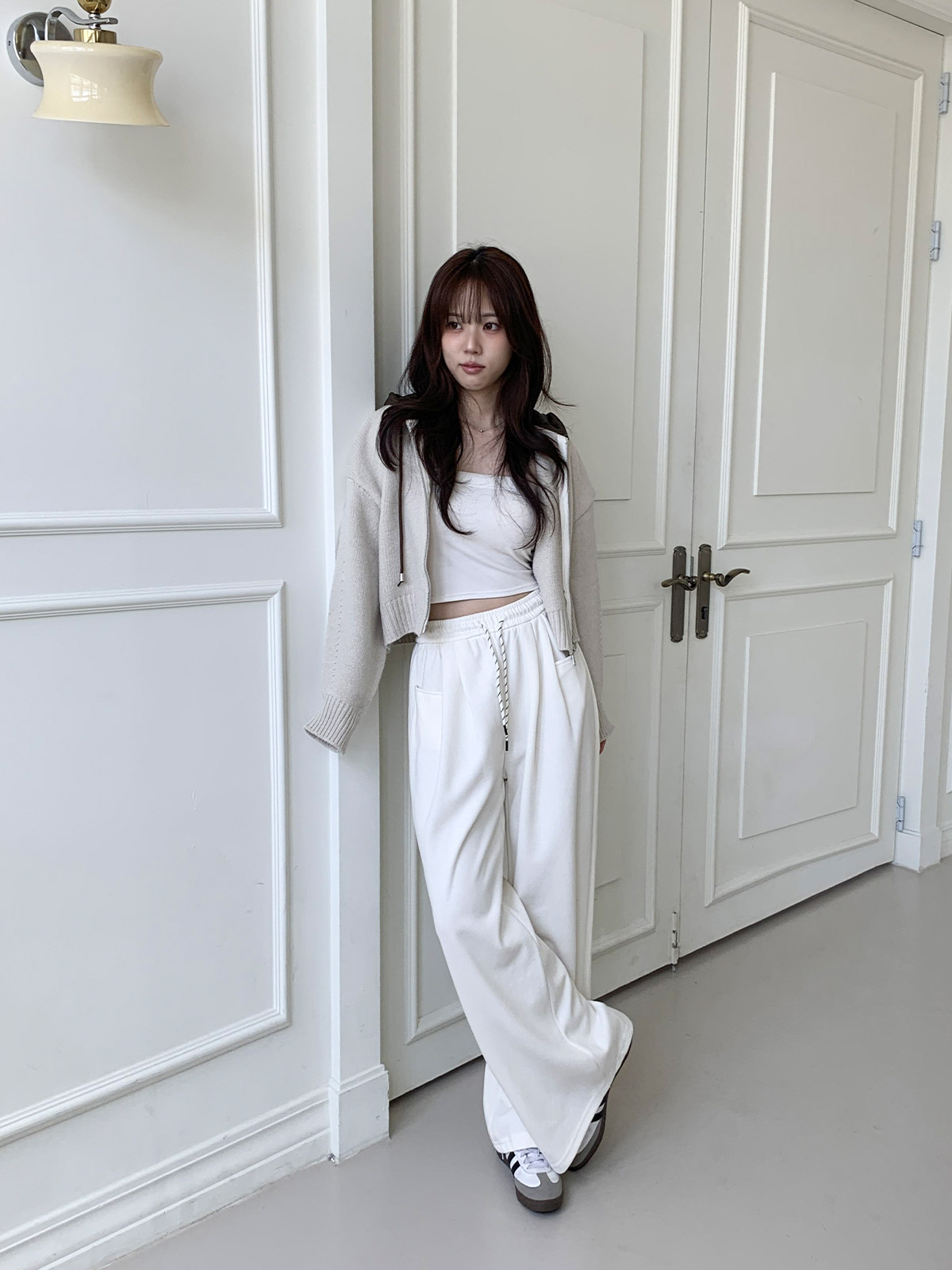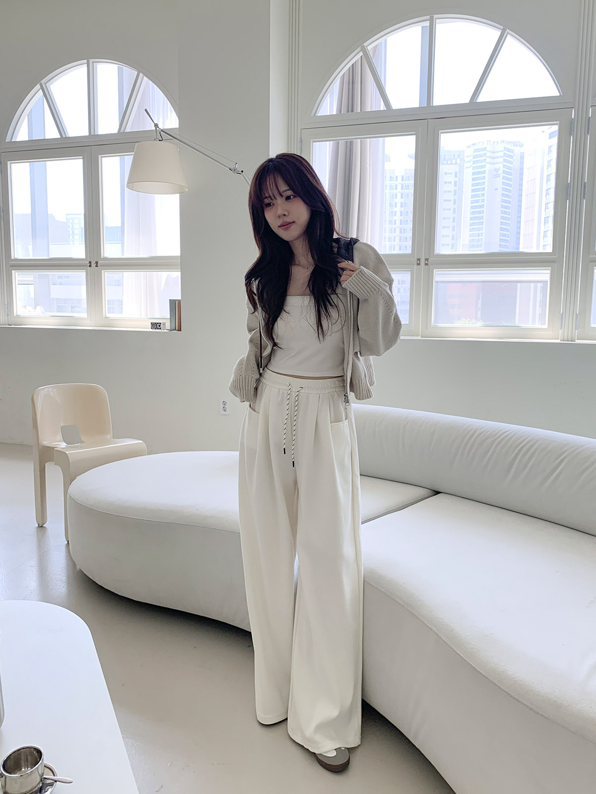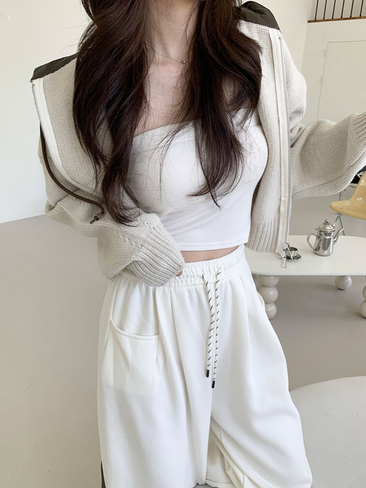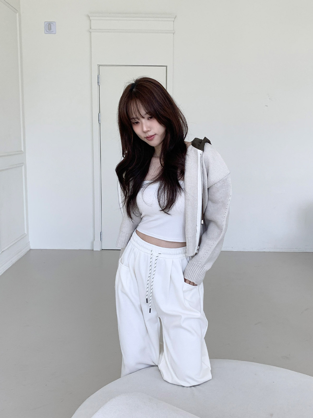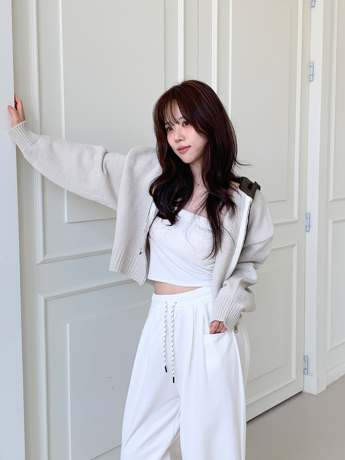 크롭한 기장감으로 허리 라인이 슬림해 보이며