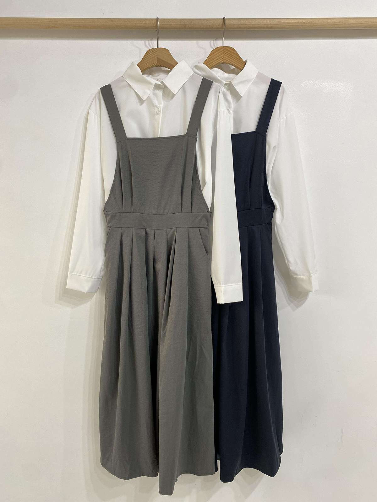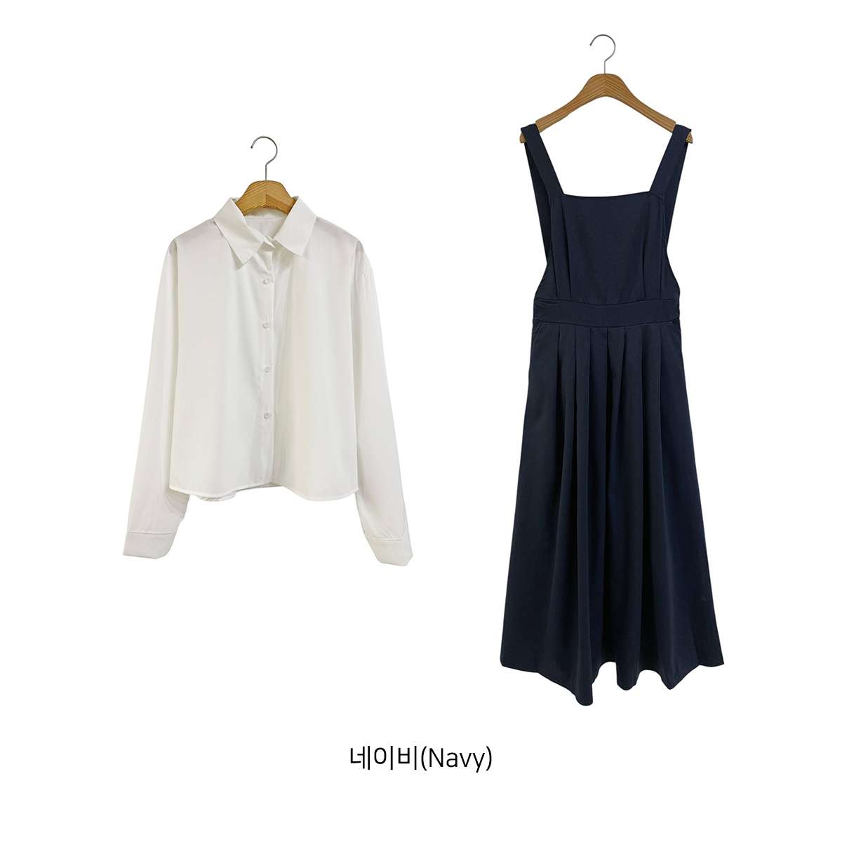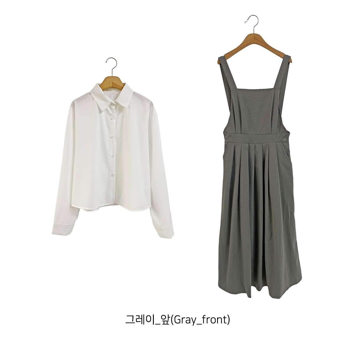 [ SET3830K58-가에븐 베이직 셔츠 플리츠 뷔스티에 롱 원피스 세트 ]