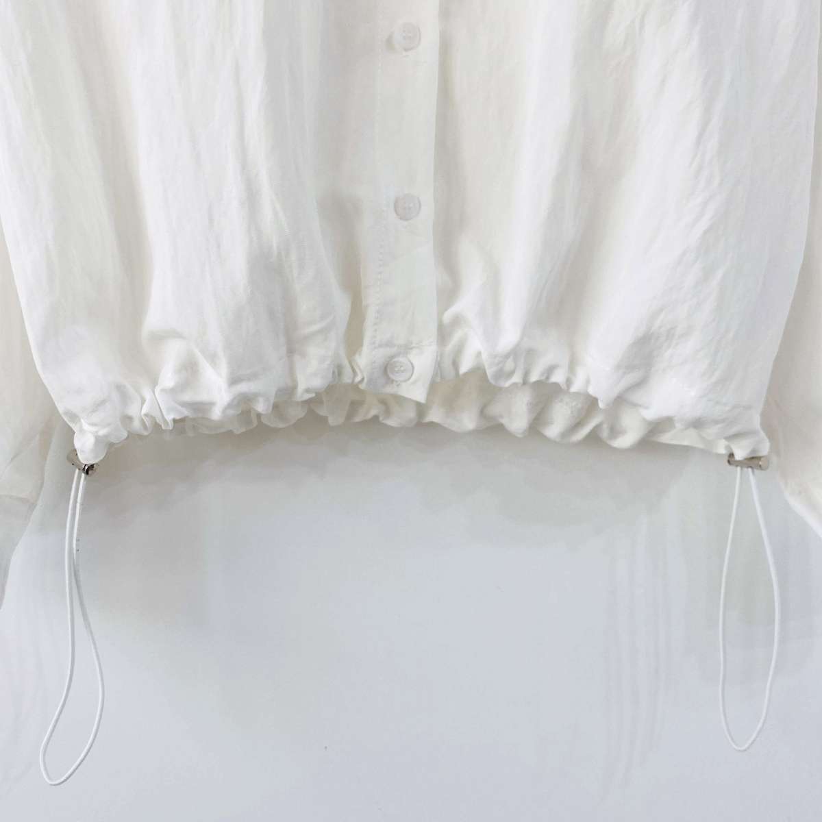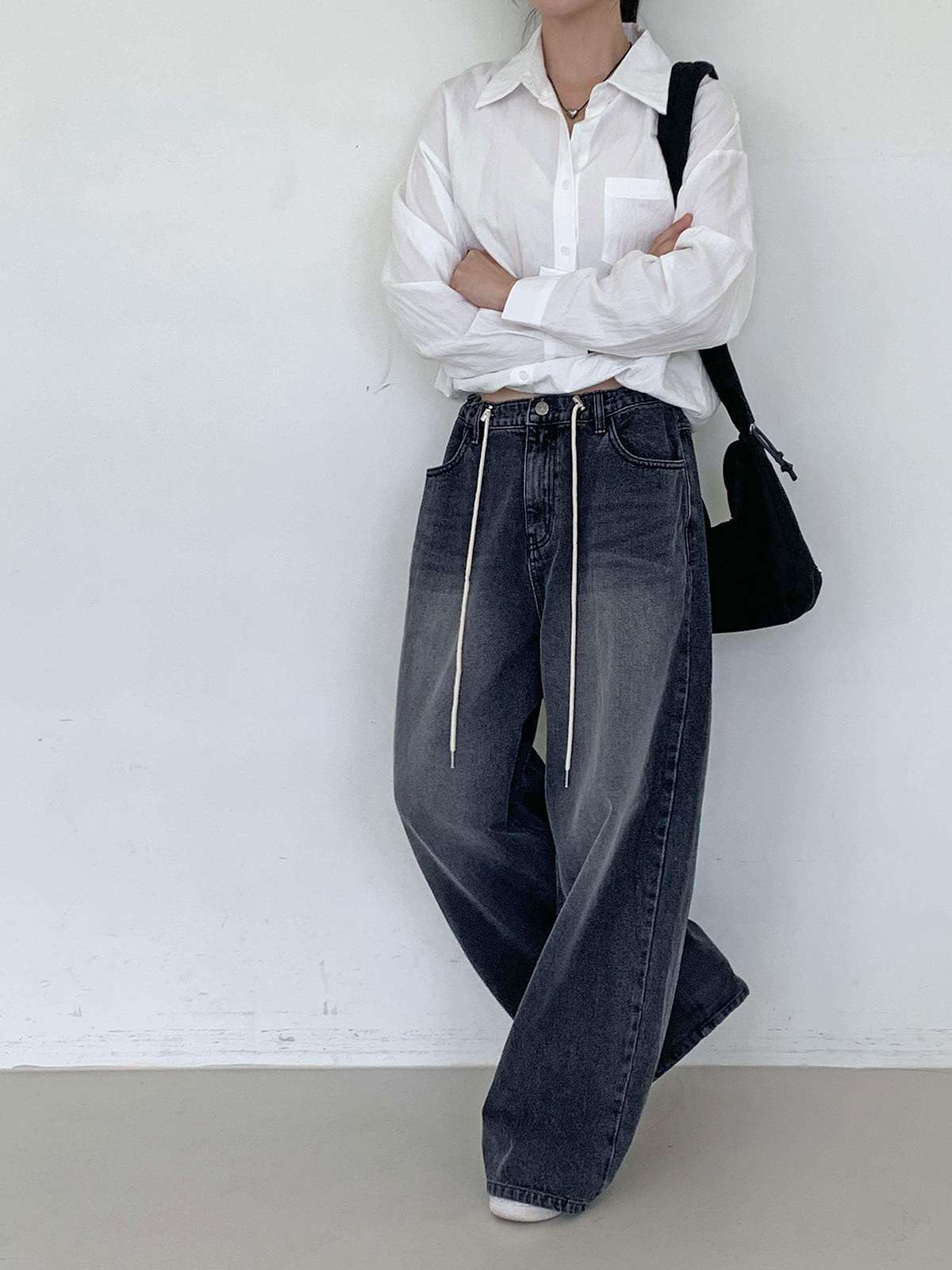 밑단 스트링 디테일이 돋보이는 세미 크롭 루즈핏 셔츠