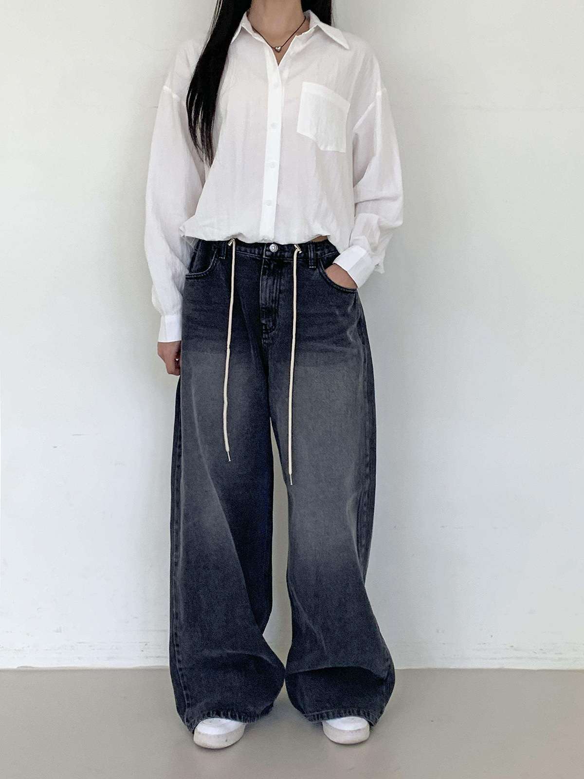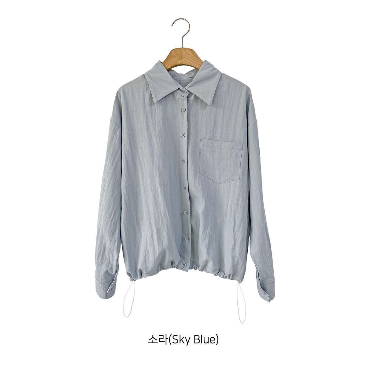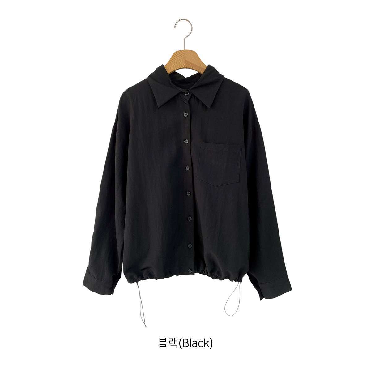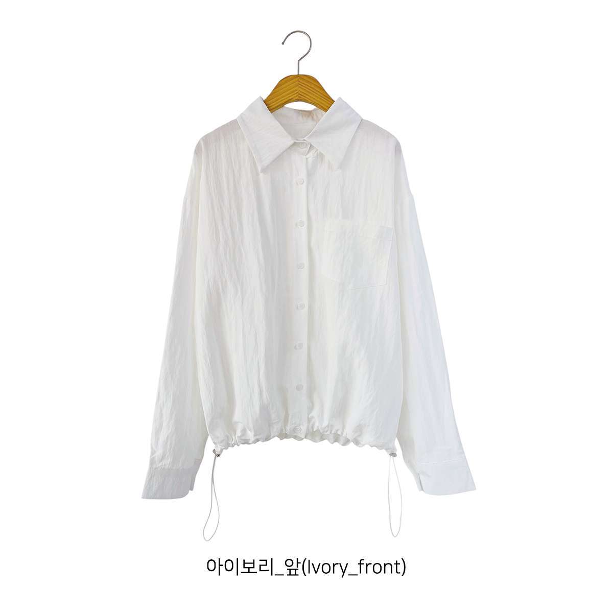 NB3305K58-도븐루 밑단 스트링 세미 크롭 루즈핏 셔츠