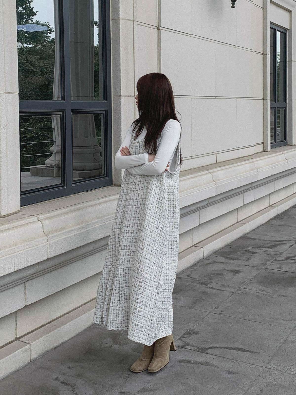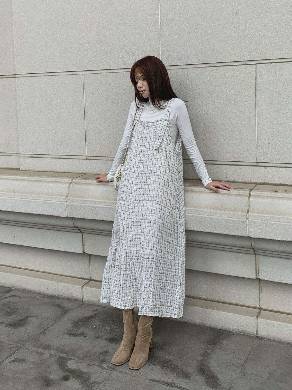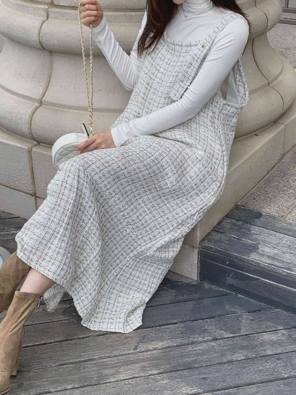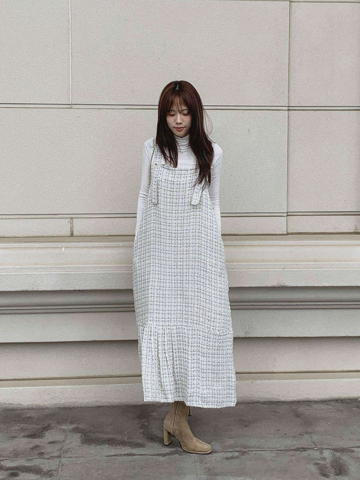 #원피스#캐주얼원피스#원피스코디#원피스룩#여성원피스#데일리원피스#데일리코디#멜빵원피스#트위드원피스#트위드나시원피스#멜빵롱원피스#가을멜빵원피스#트위드#롱#멜빵#A라인#여성#가을#겨울#롱원피스#A라인원피스#트위드롱원피스#A라인롱원피스#하객원피스#가을원피스#겨울원피스#가을트위드원피스#여성트위드원피스#롱멜빵원피스#노카라#클래식#모던#고급스러운#단정한#페미닌#러블리#데이트#나시원피스#이너코디#레이어드#결혼식#체형커버#하객룩#오피스룩#데이트룩#페미닌룩#결혼식룩#격