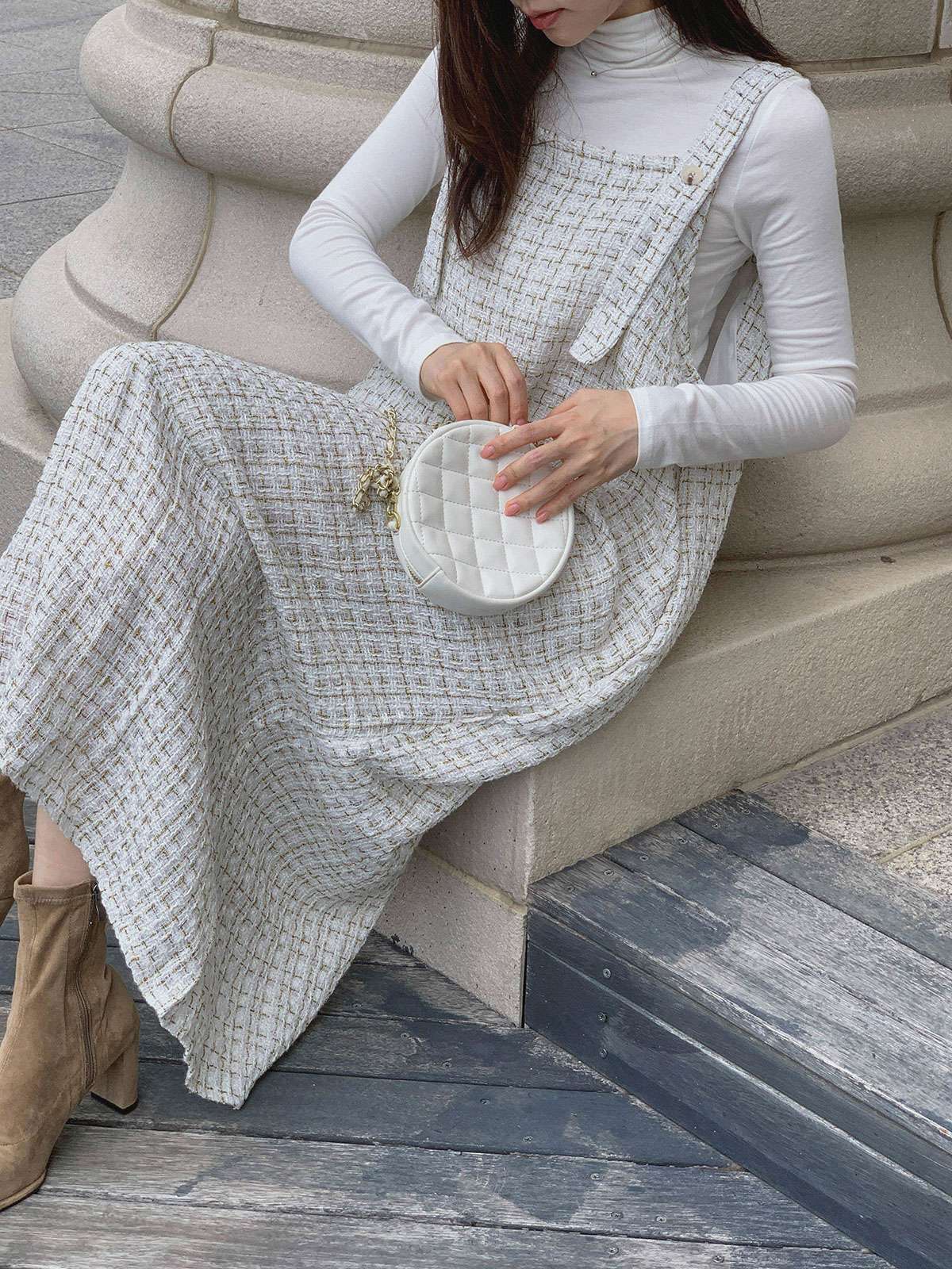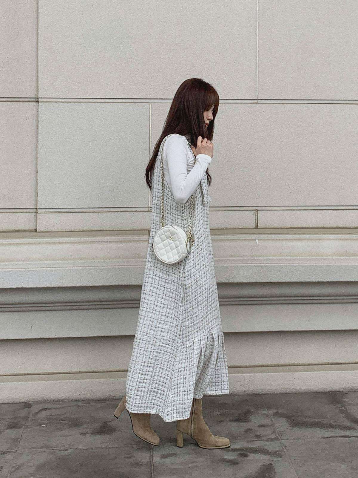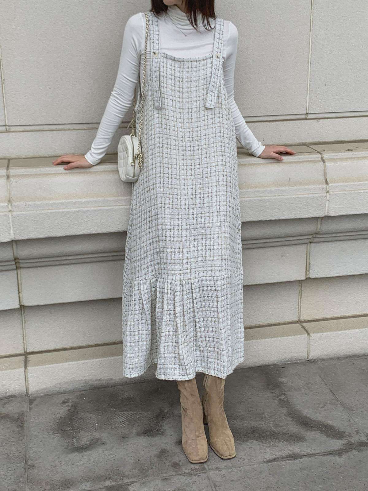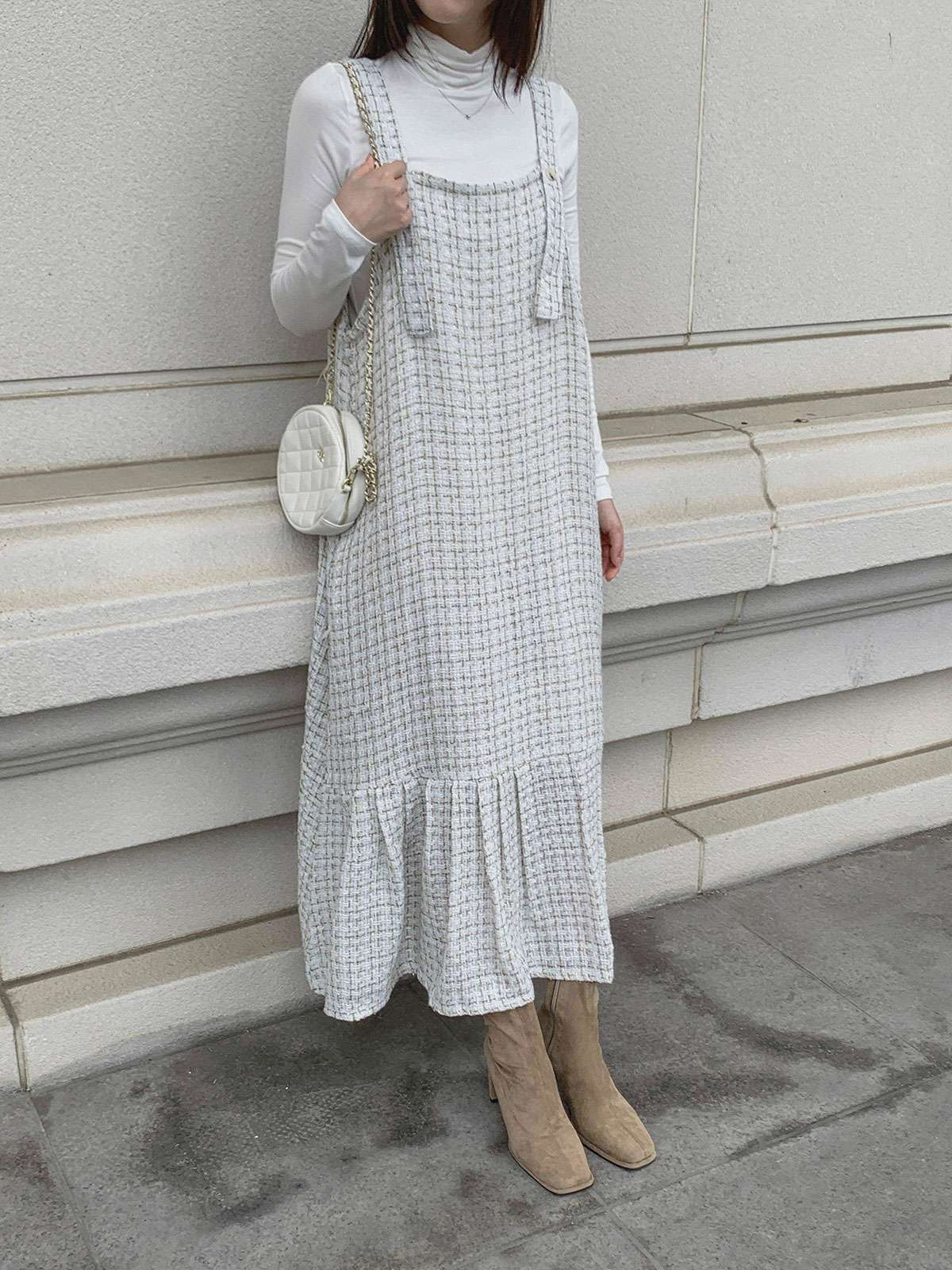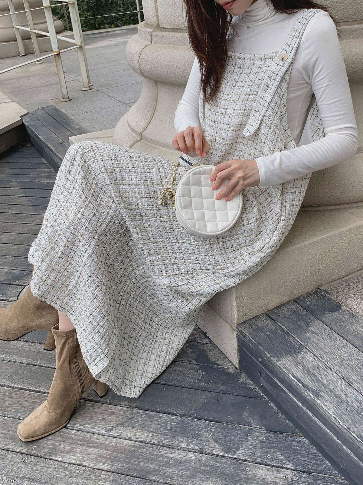 #원피스#캐주얼원피스#원피스코디#원피스룩#여성원피스#데일리원피스#데일리코디#멜빵원피스#트위드원피스#트위드나시원피스#멜빵롱원피스#가을멜빵원피스#트위드#롱#멜빵#A라인#여성#가을#겨울#롱원피스#A라인원피스#트위드롱원피스#A라인롱원피스#하객원피스#가을원피스#겨울원피스#가을트위드원피스#여성트위드원피스#롱멜빵원피스#노카라#클래식#모던#고급스러운#단정한#페미닌#러블리#데이트#나시원피스#이너코디#레이어드#결혼식#체형커버#하객룩#오피스룩#데이트룩#페미닌룩#결혼식룩#격