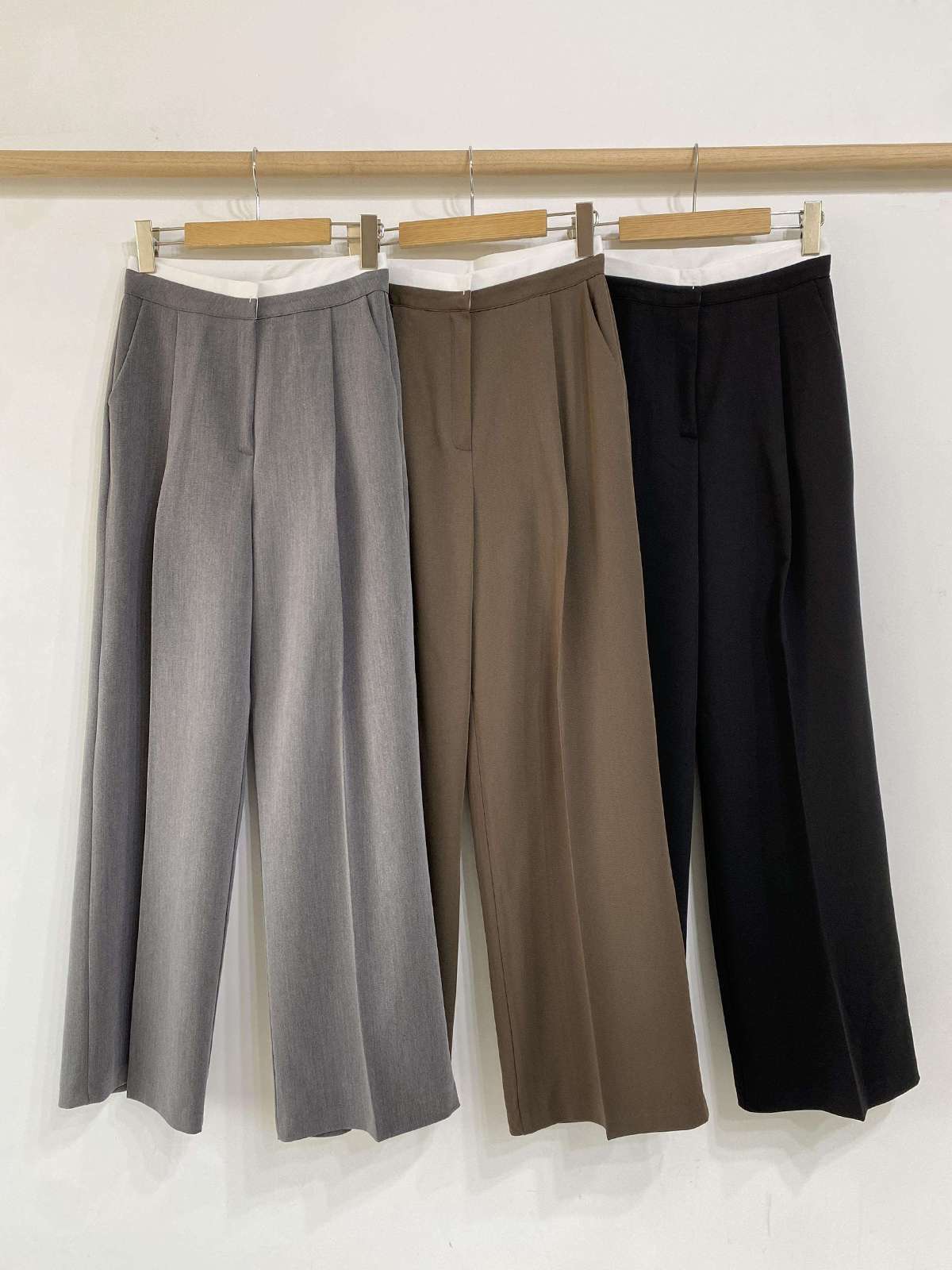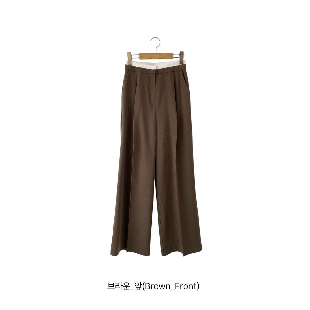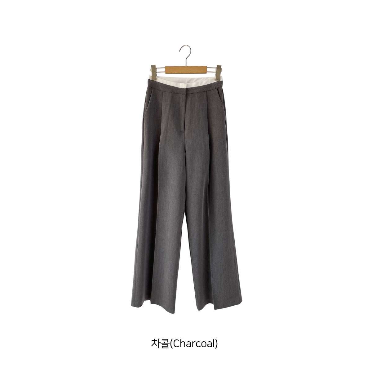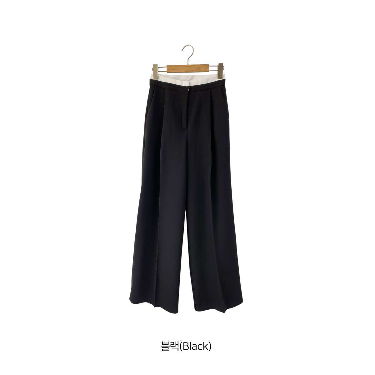 허리 라인 배색이 포인트인 일자핏의 핀턱 와이드 슬랙스