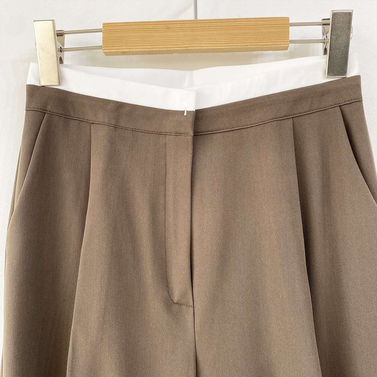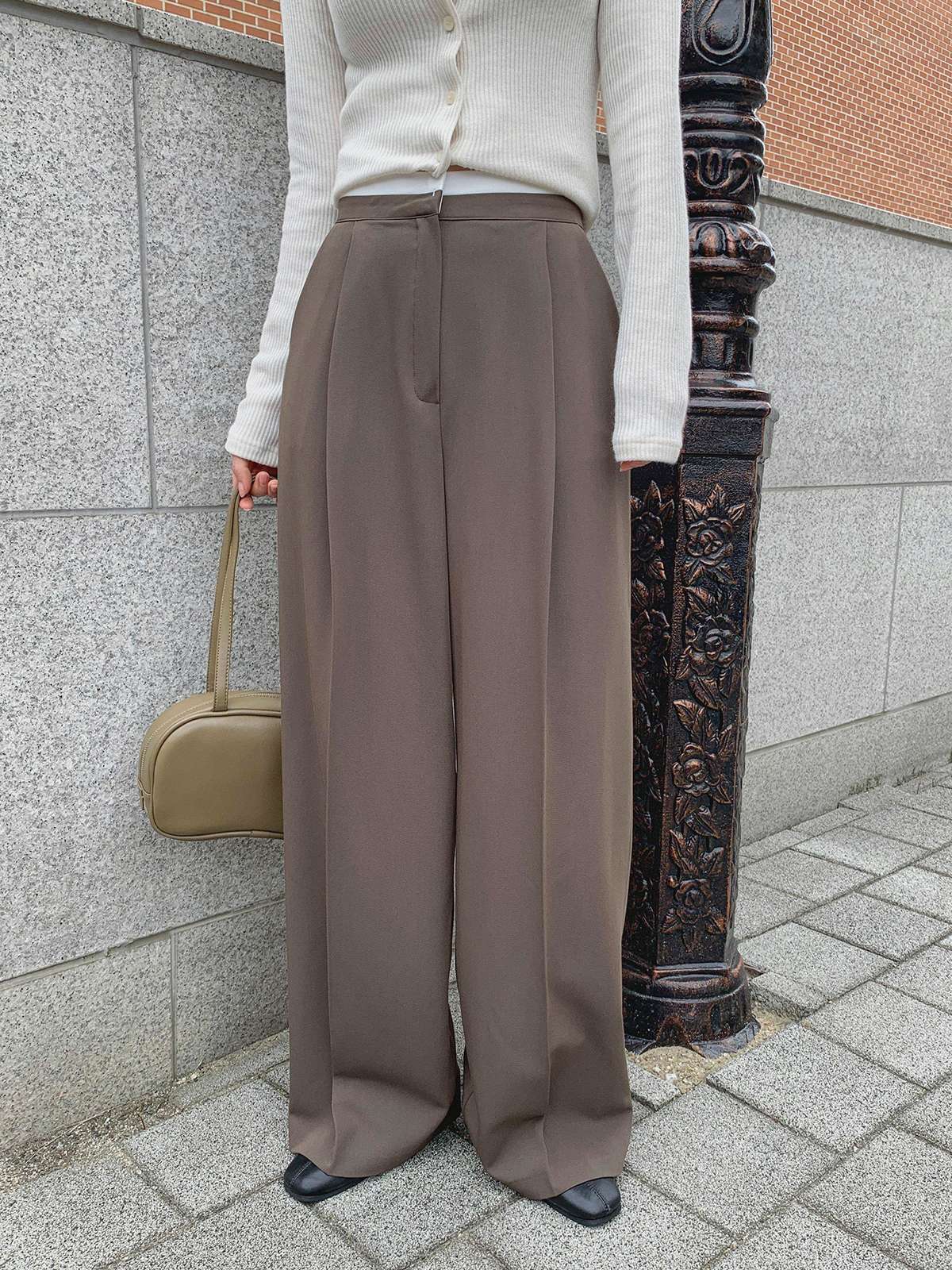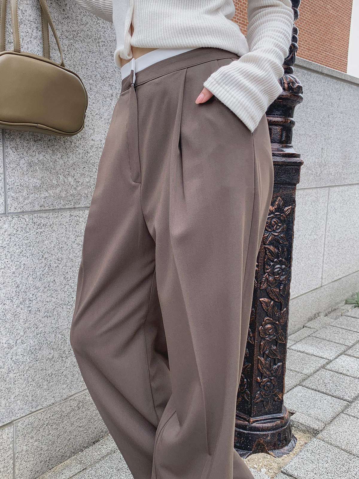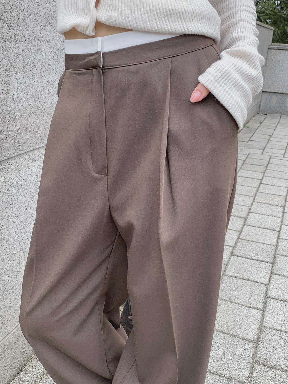 허리 라인 배색이 포인트인 일자핏의 핀턱 와이드 슬랙스