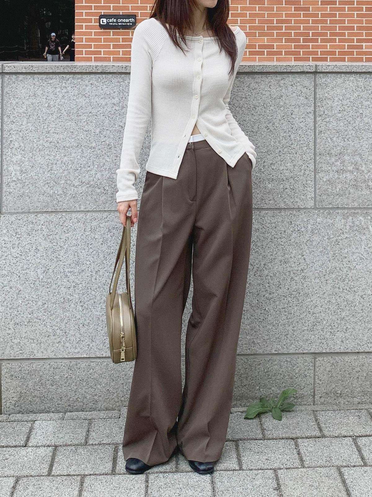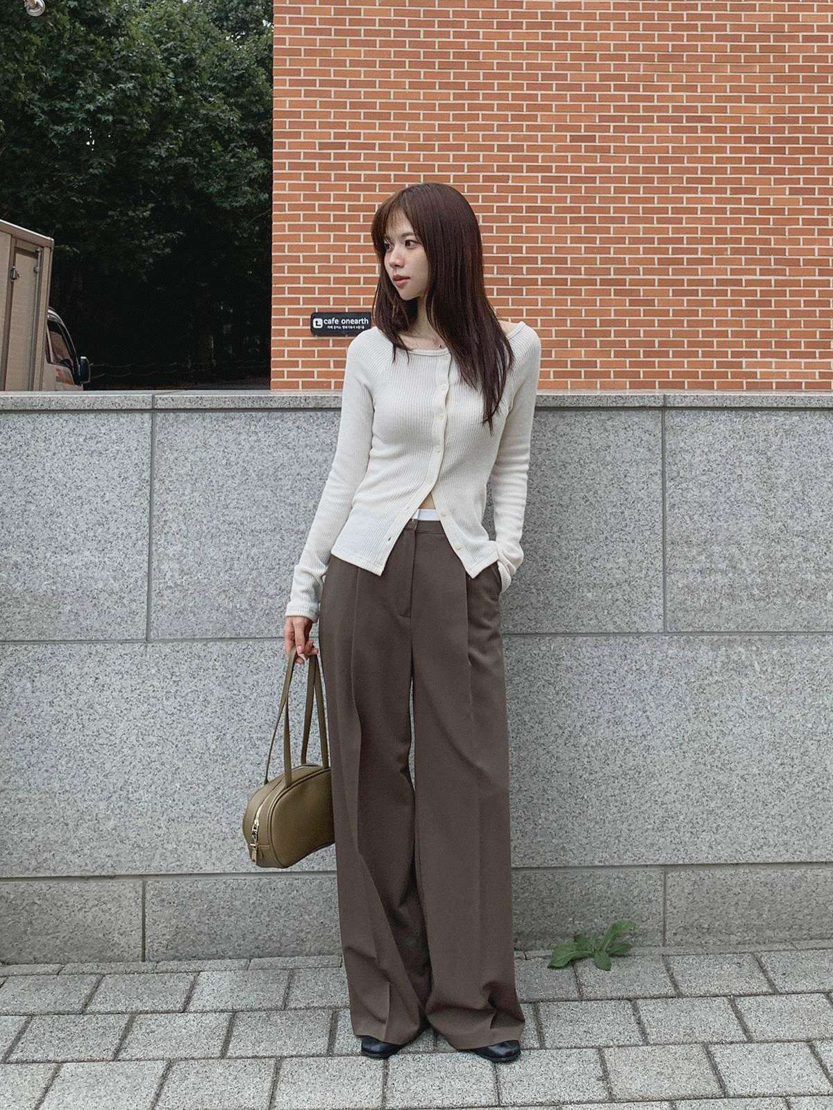 깔끔하게 떨어지는 일자 와이드 핏이 매력적인 슬랙스입니다!