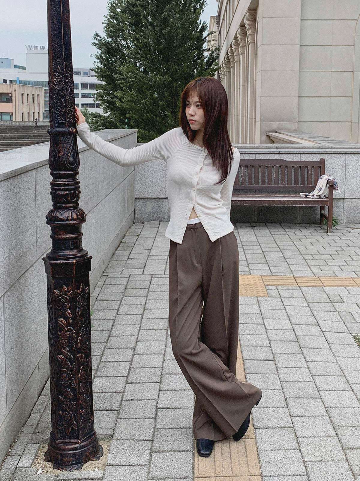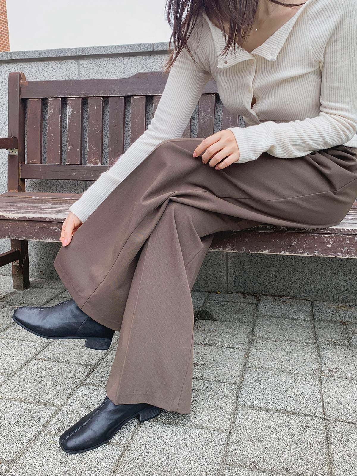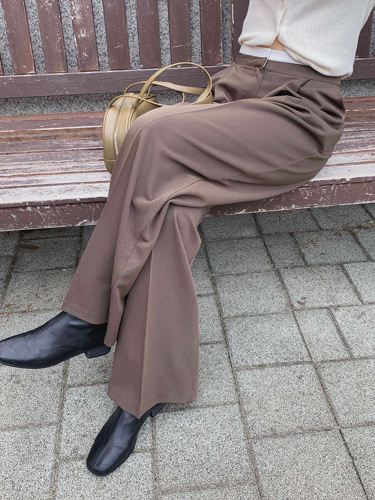 핀턱 주름이 다리 라인을 더욱 길고 슬림하게 연출해 줍니다.