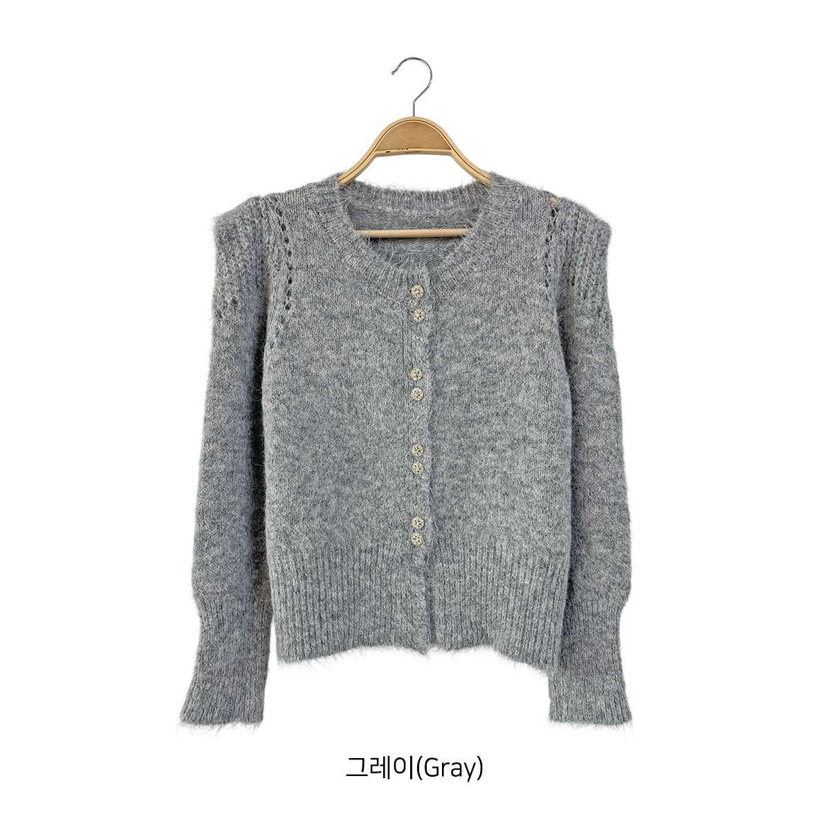 [ CD3607K59-네모앤 어깨 퍼프 라운드 큐빅 투버튼 가디건 ]