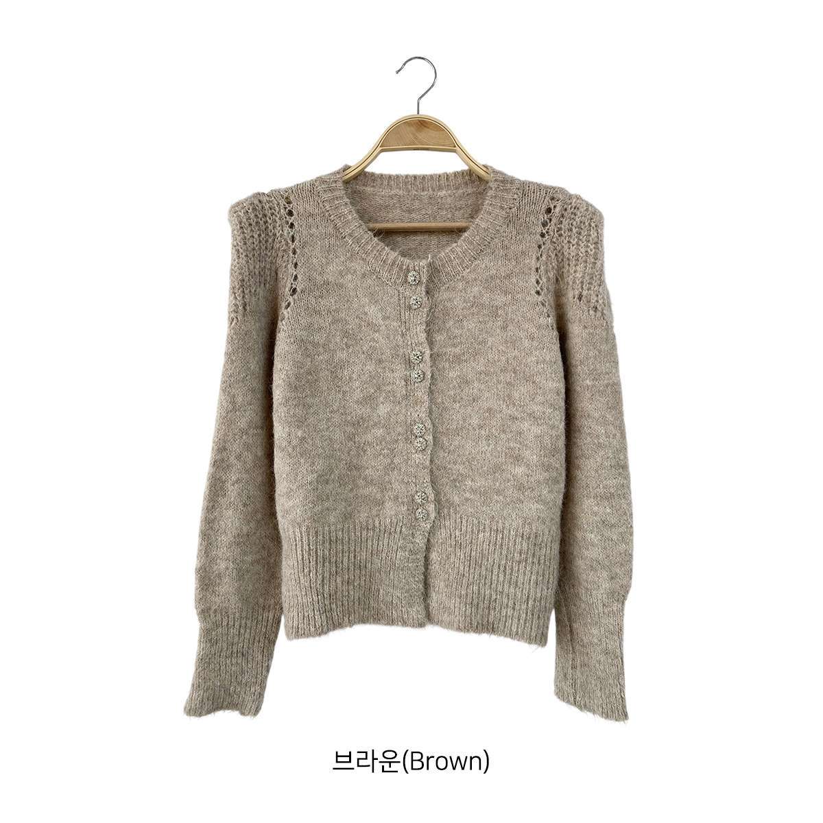 CD3607K59-네모앤 어깨 퍼프 라운드 큐빅 투버튼 가디건