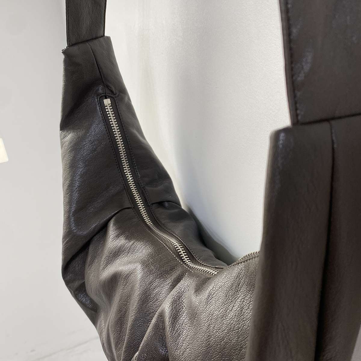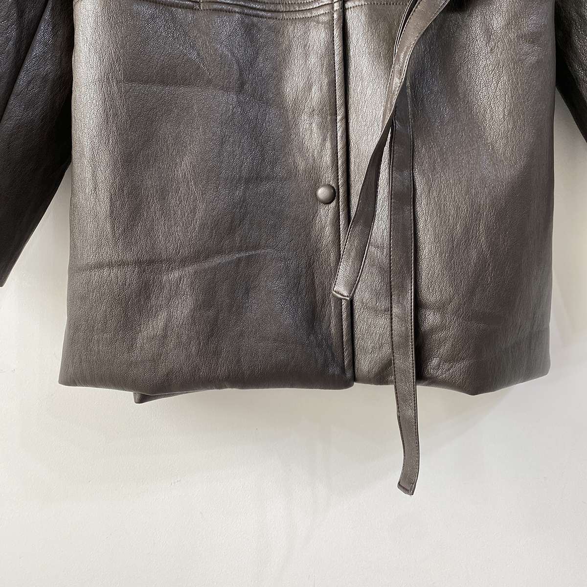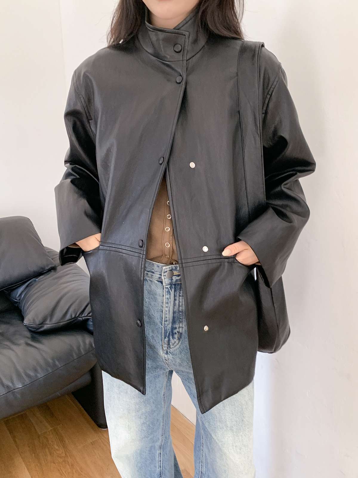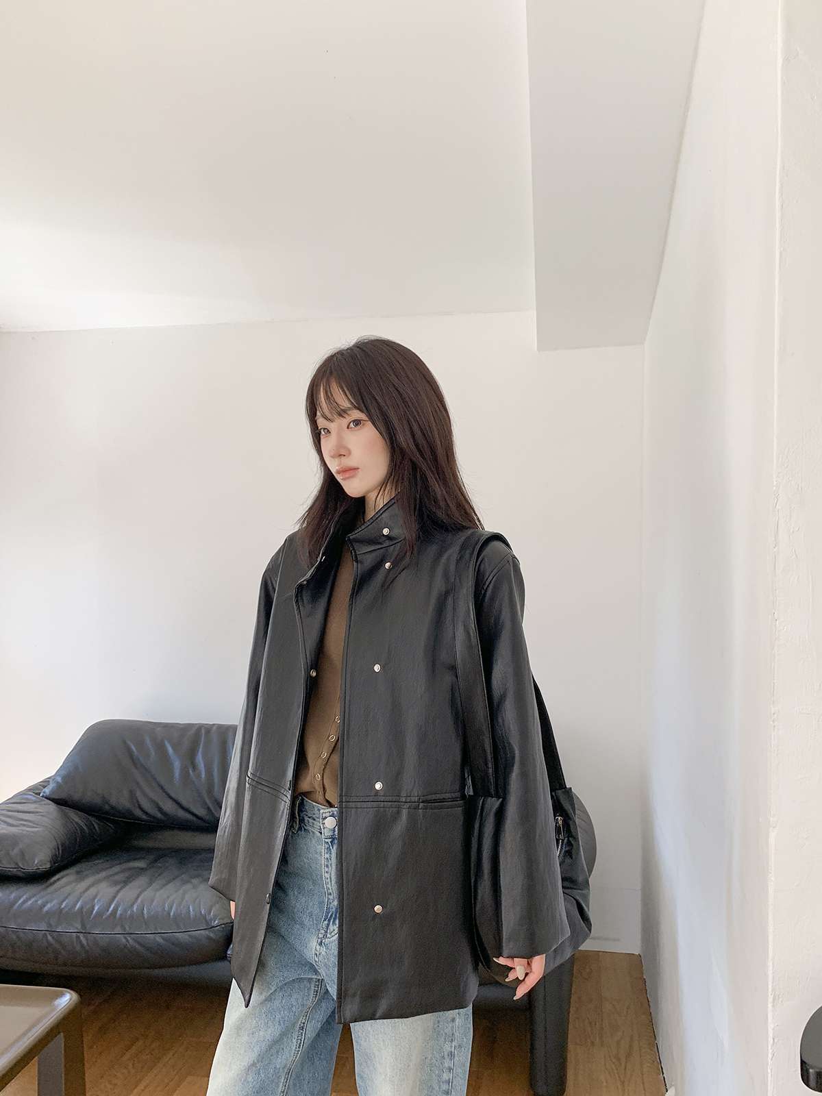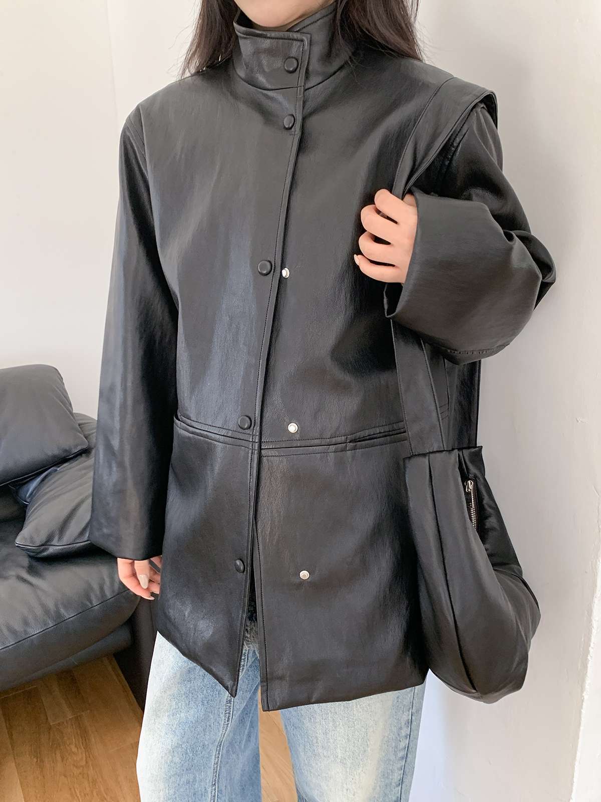 [ JK6045K59-더모드 하이넥 루즈핏 레더 자켓 크로스백 벨트 세트 ]