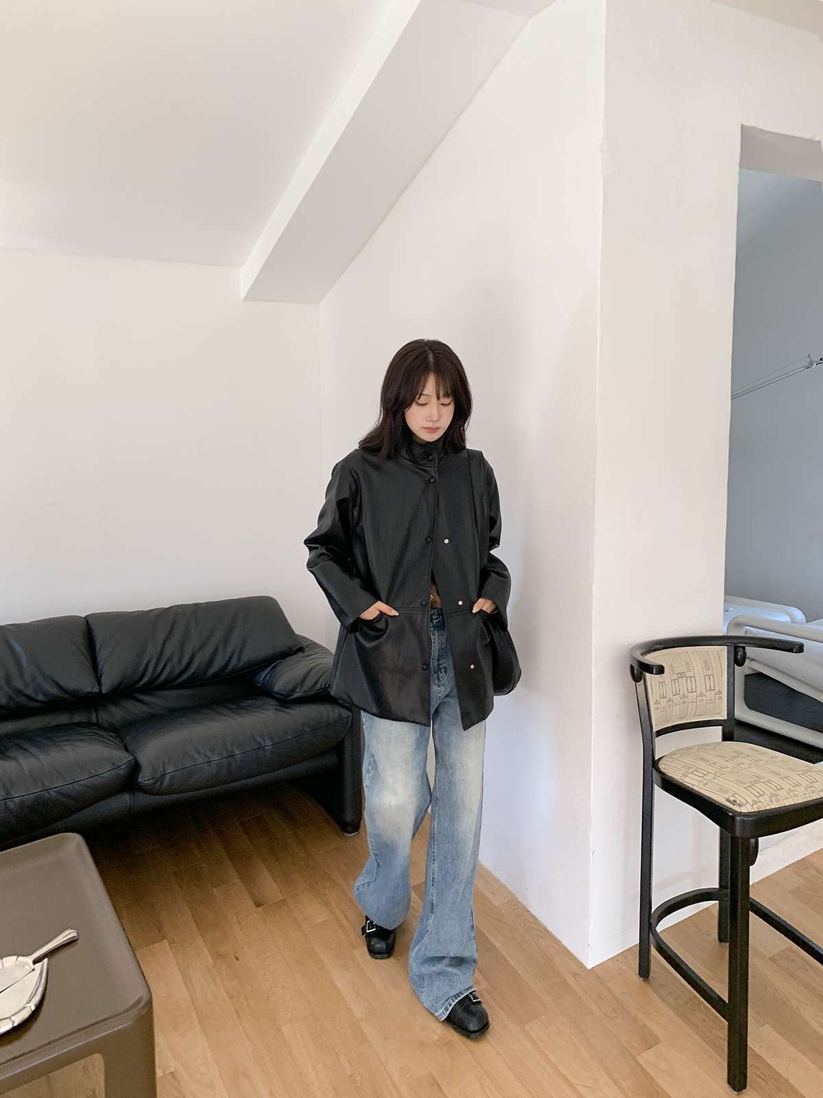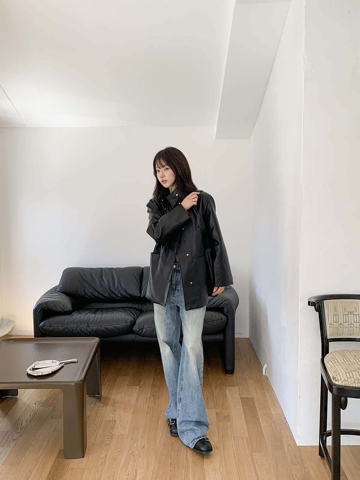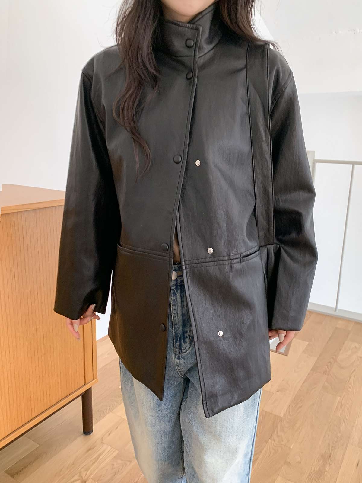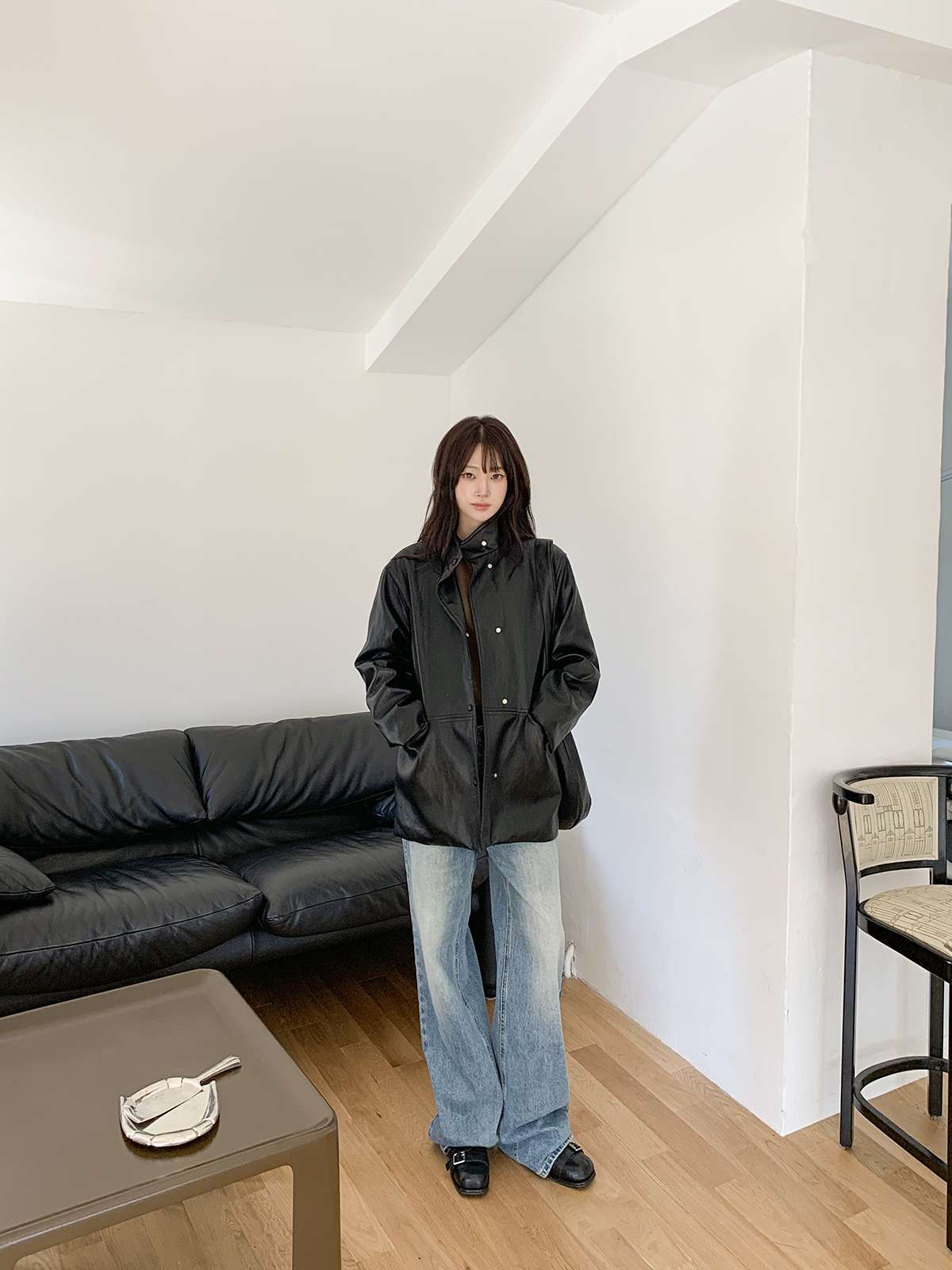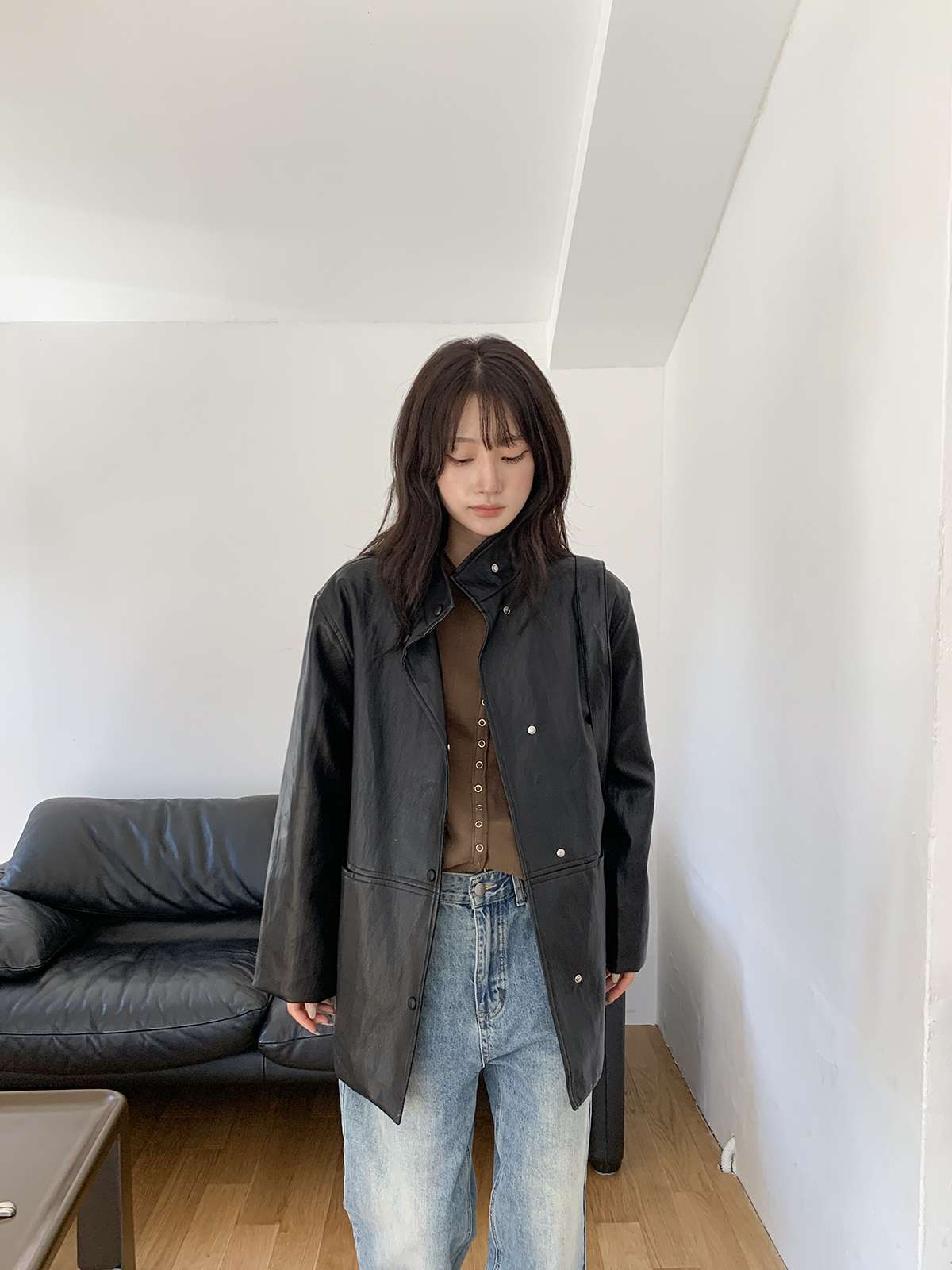힙하고 시크한 무드의 베이직한 레더 자켓입니다.