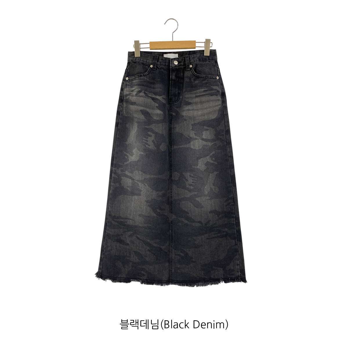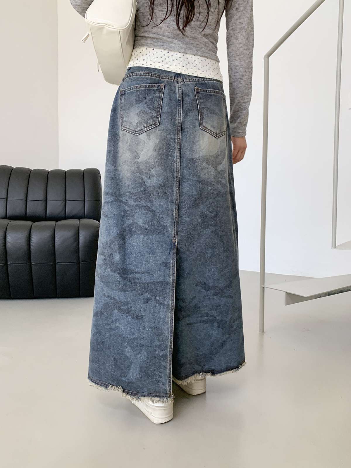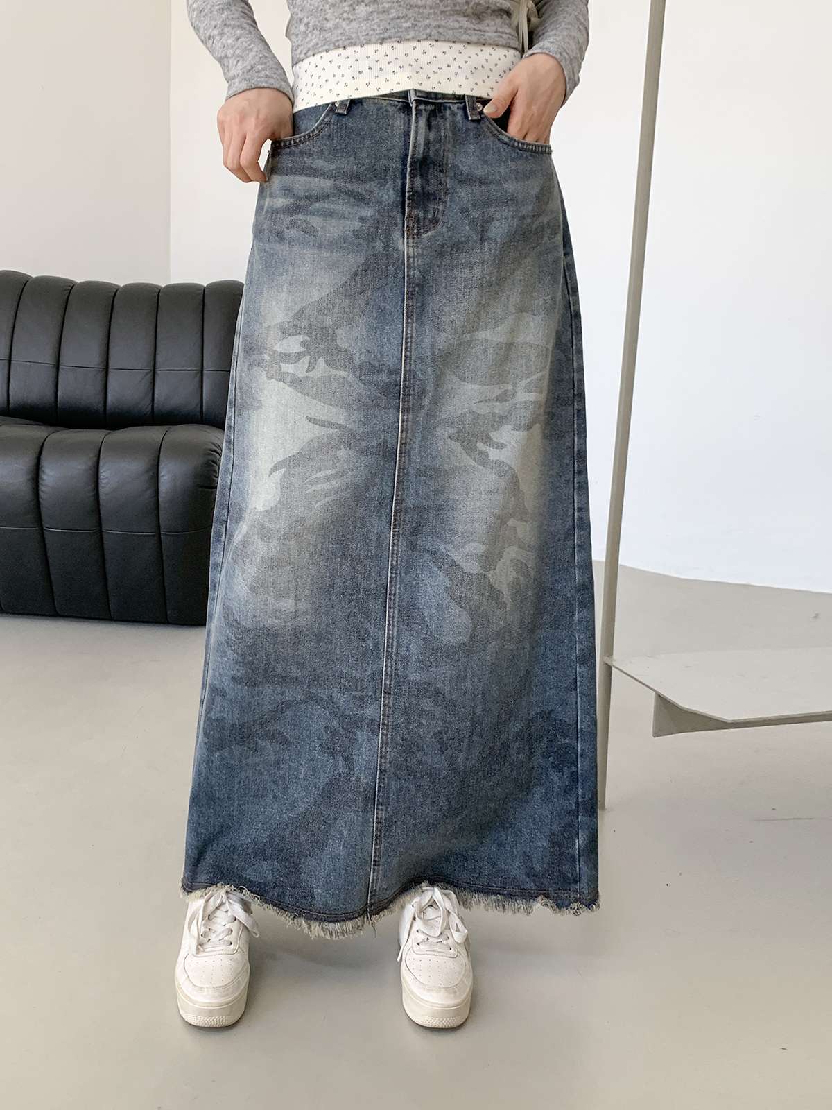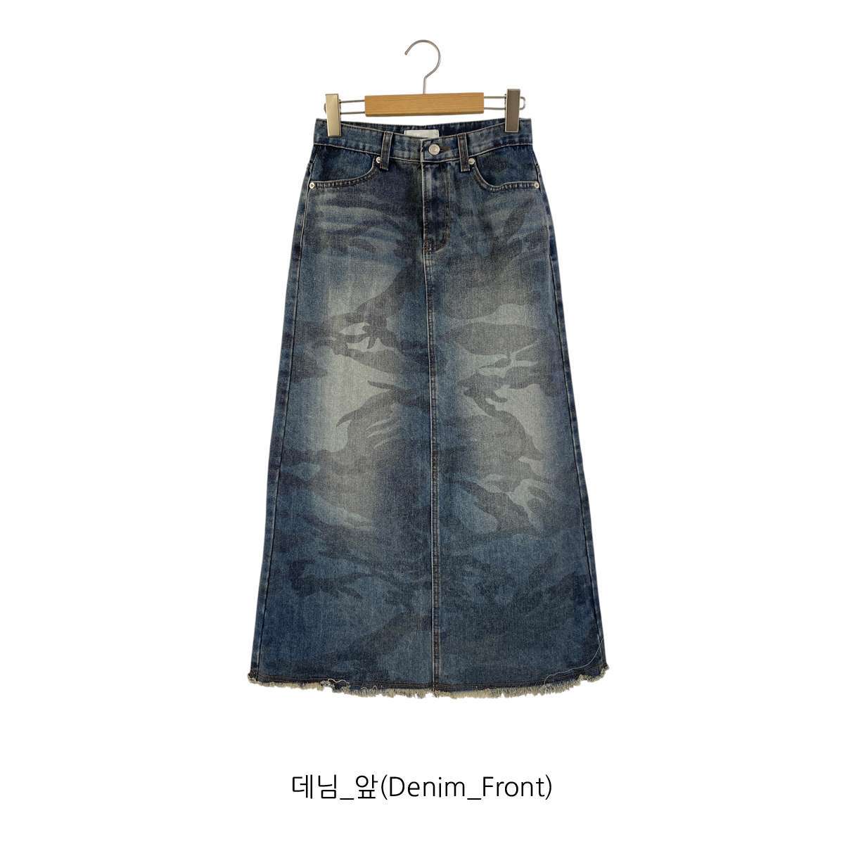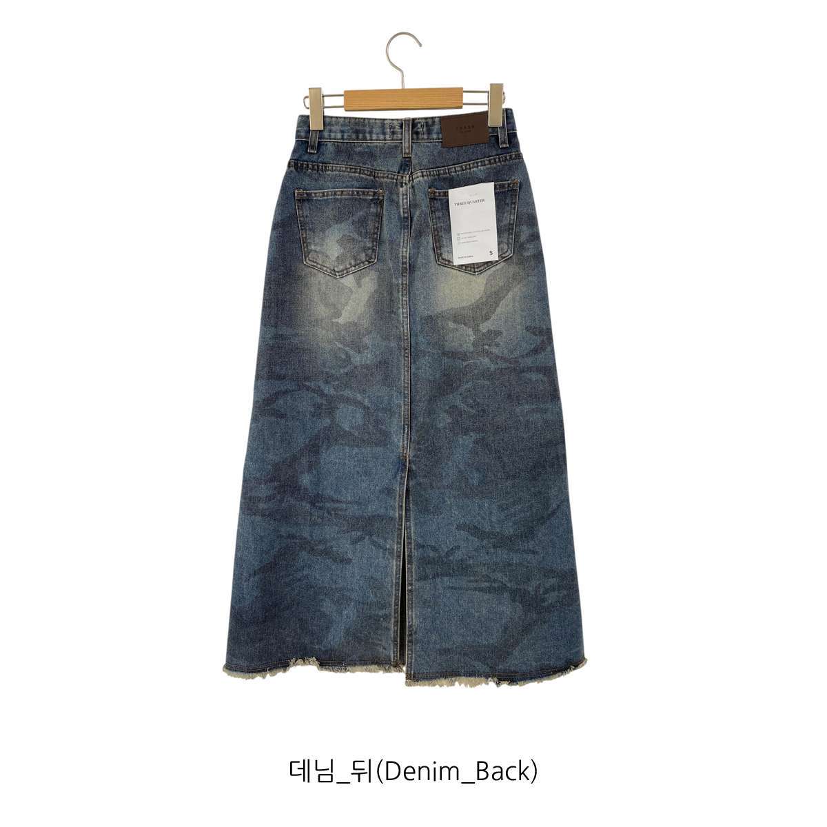 SK7414K59-페리얼 카모 워싱 빈티지 데님 롱 스커트