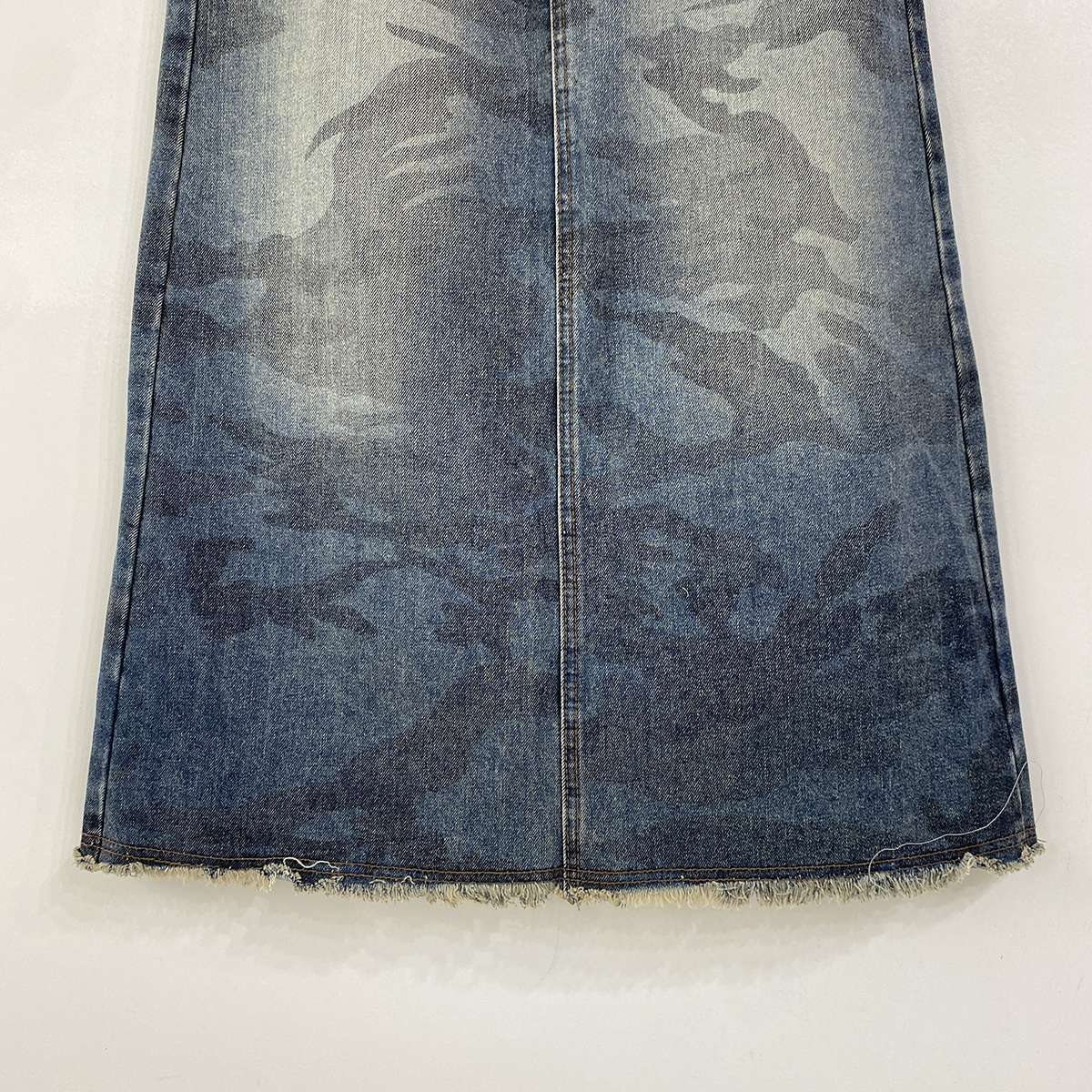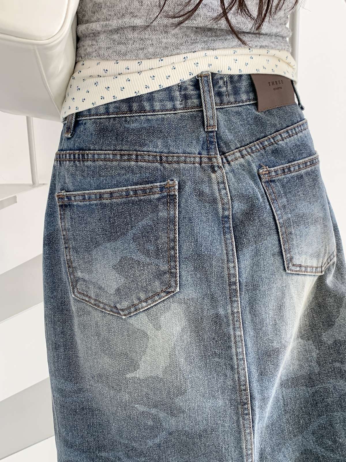 힙한 무드의 카모 패턴 워싱 데님스커트로
