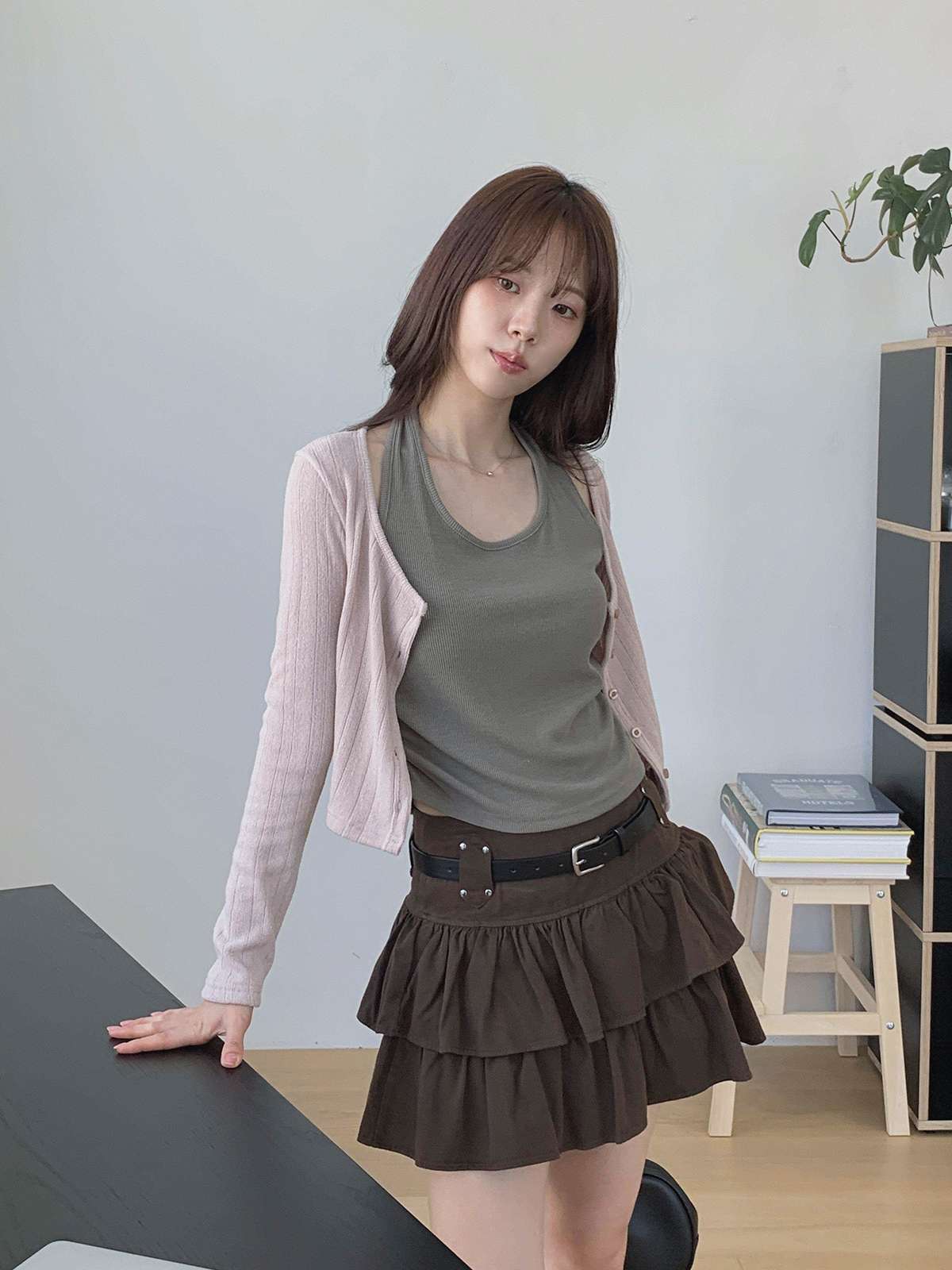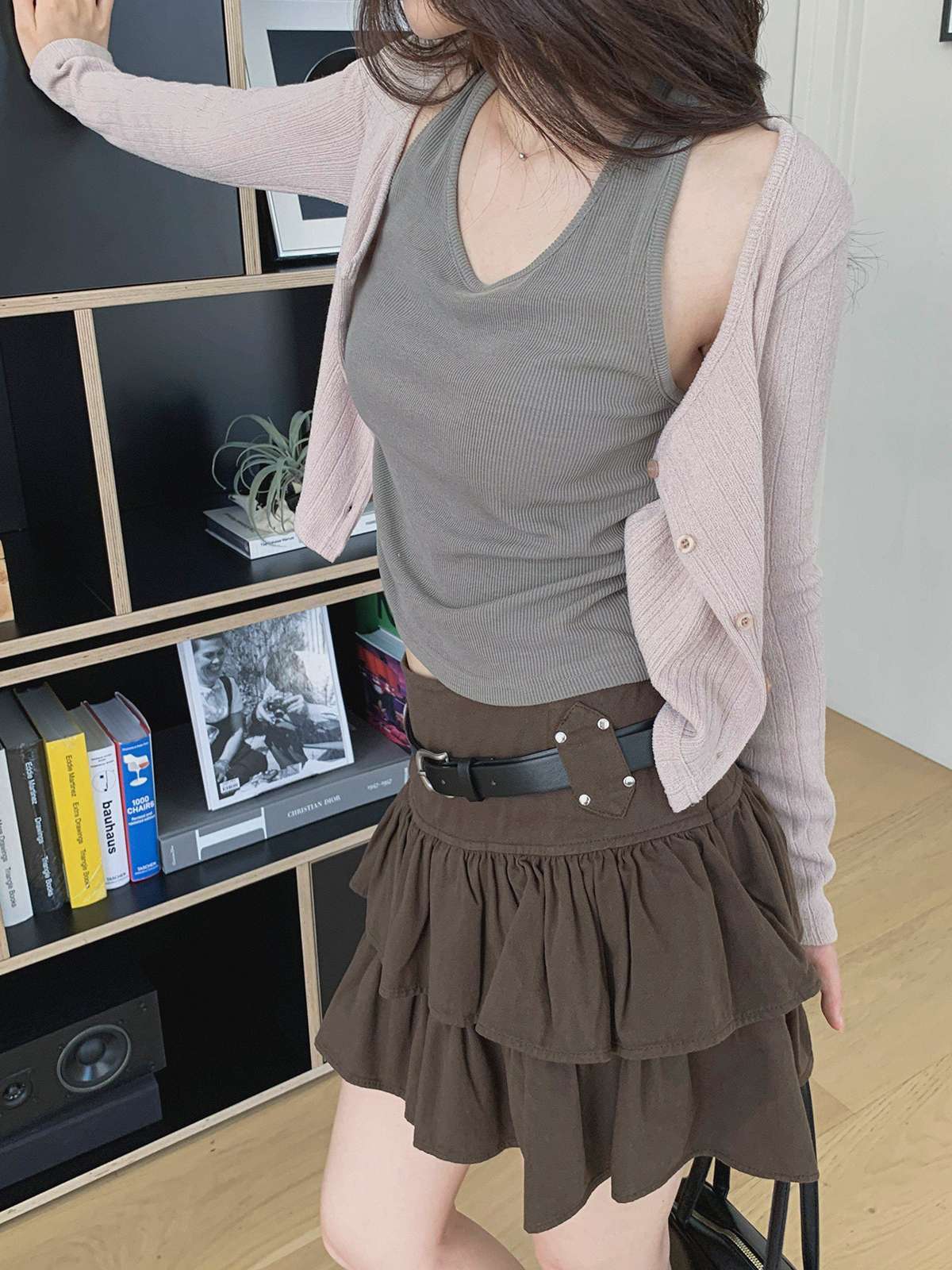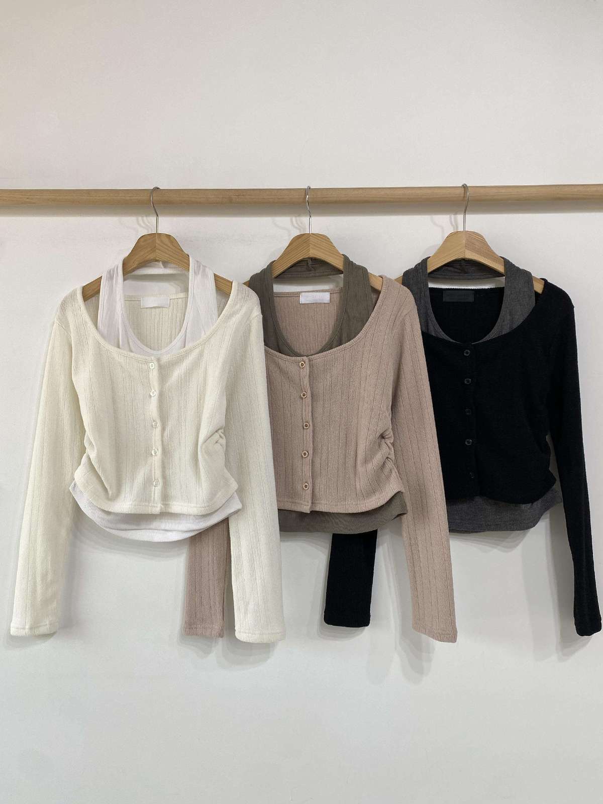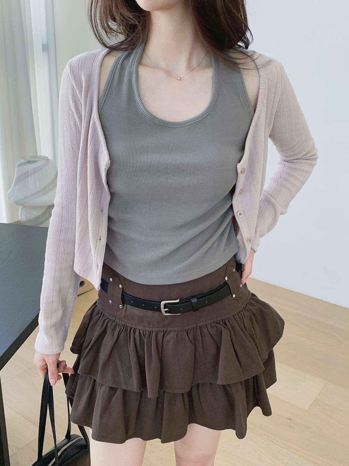 [ CD3610K59-듀리디 홀터넥 나시 일체형 슬림 골지 가디건 ]