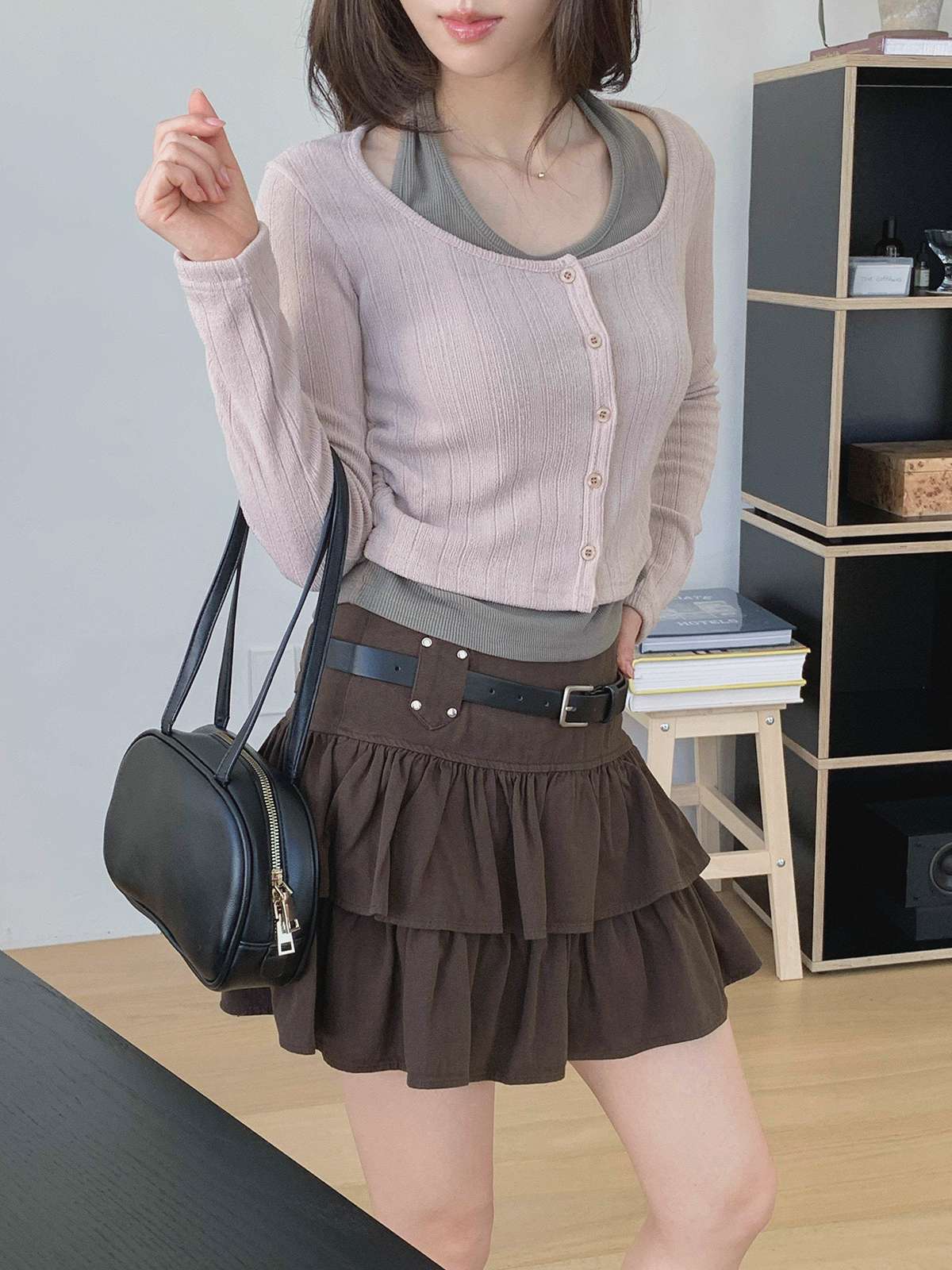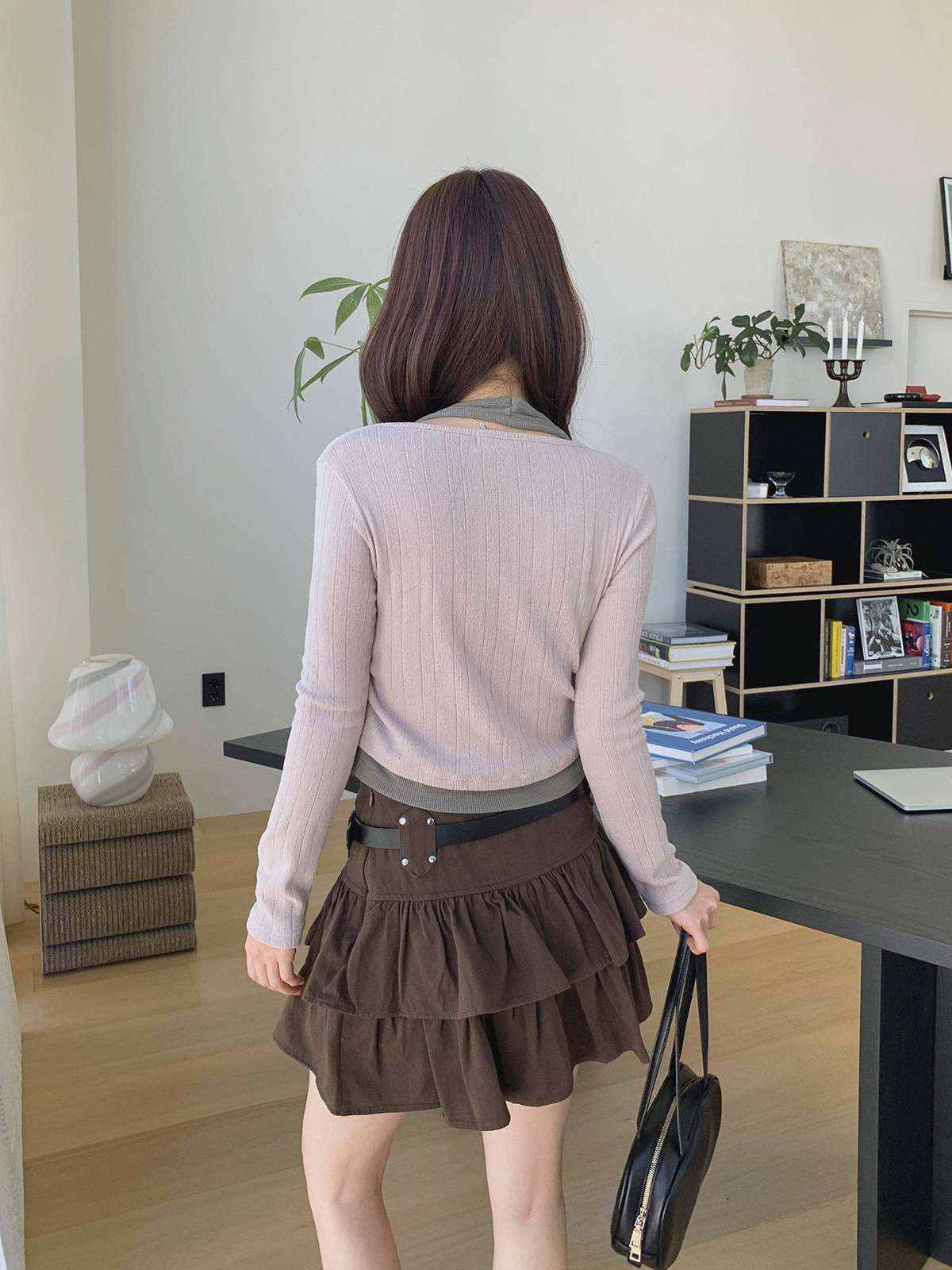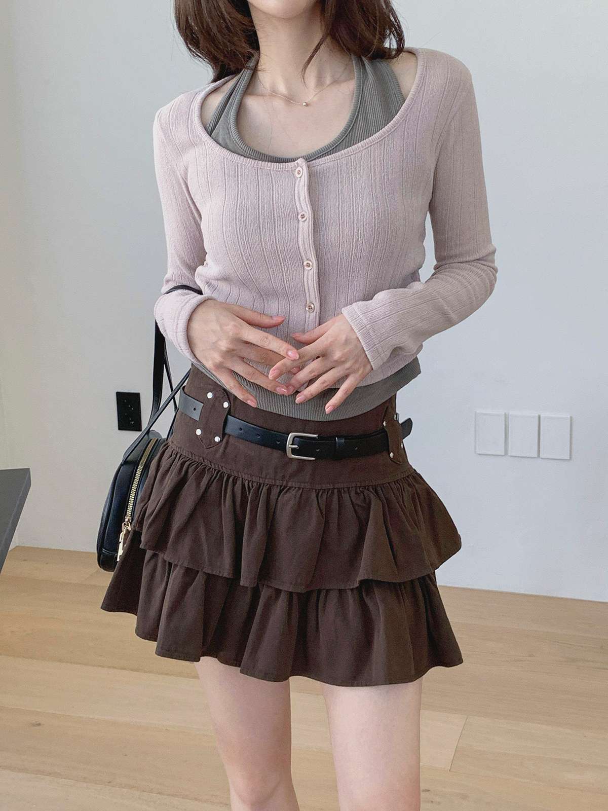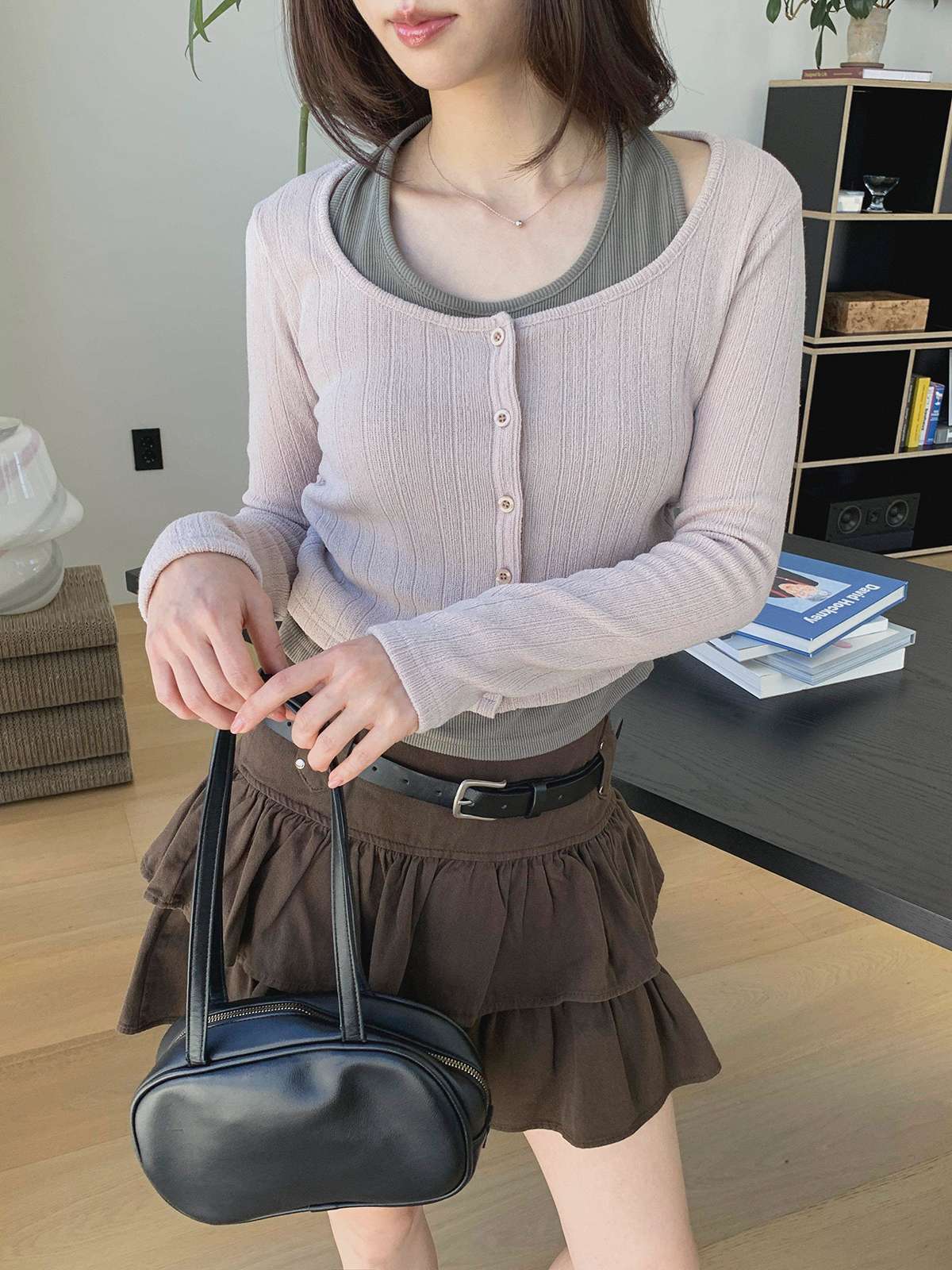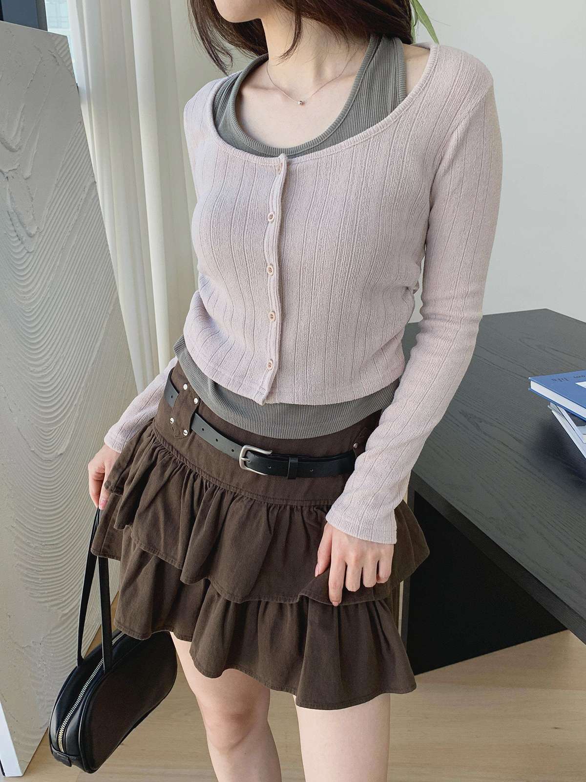 [ CD3610K59-듀리디 홀터넥 나시 일체형 슬림 골지 가디건 ]