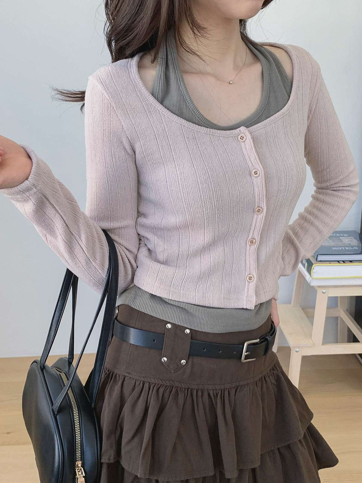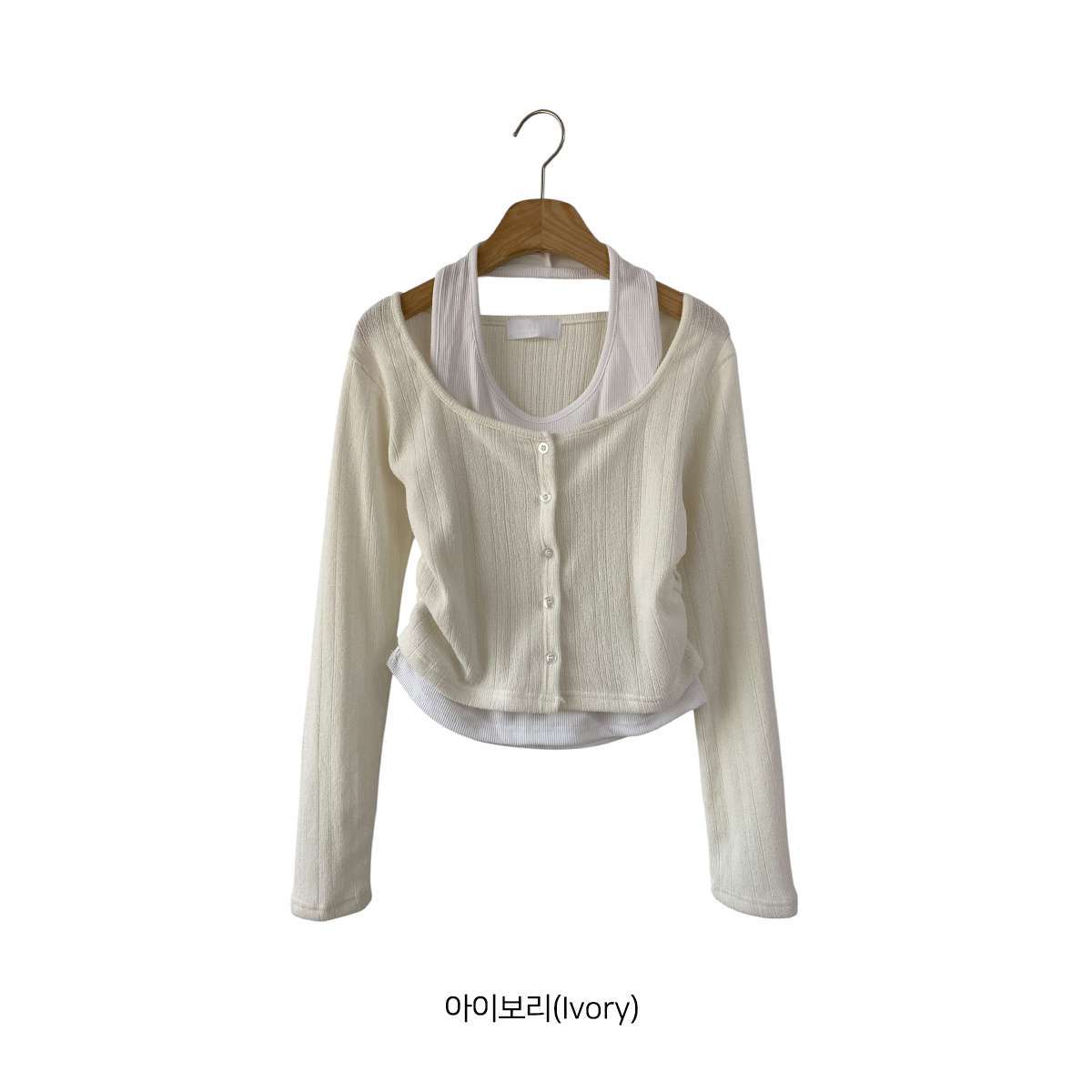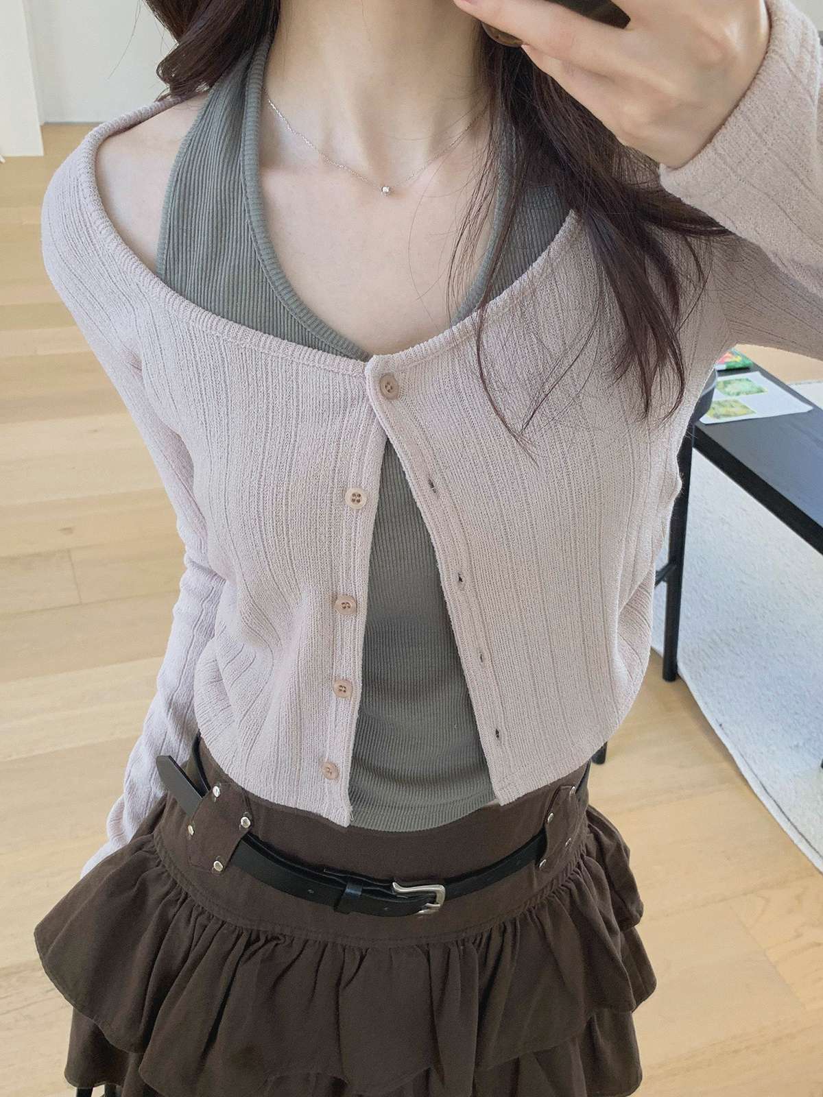 긴팔 가디건과 홀터넥 나시가 일체형으로 디자인된 슬림 가디건
