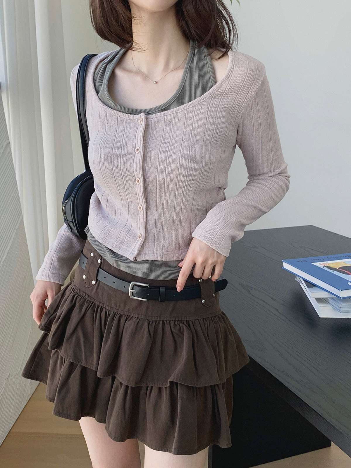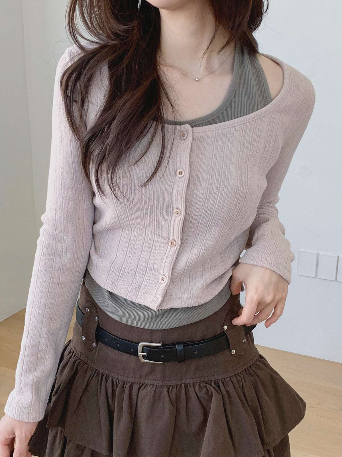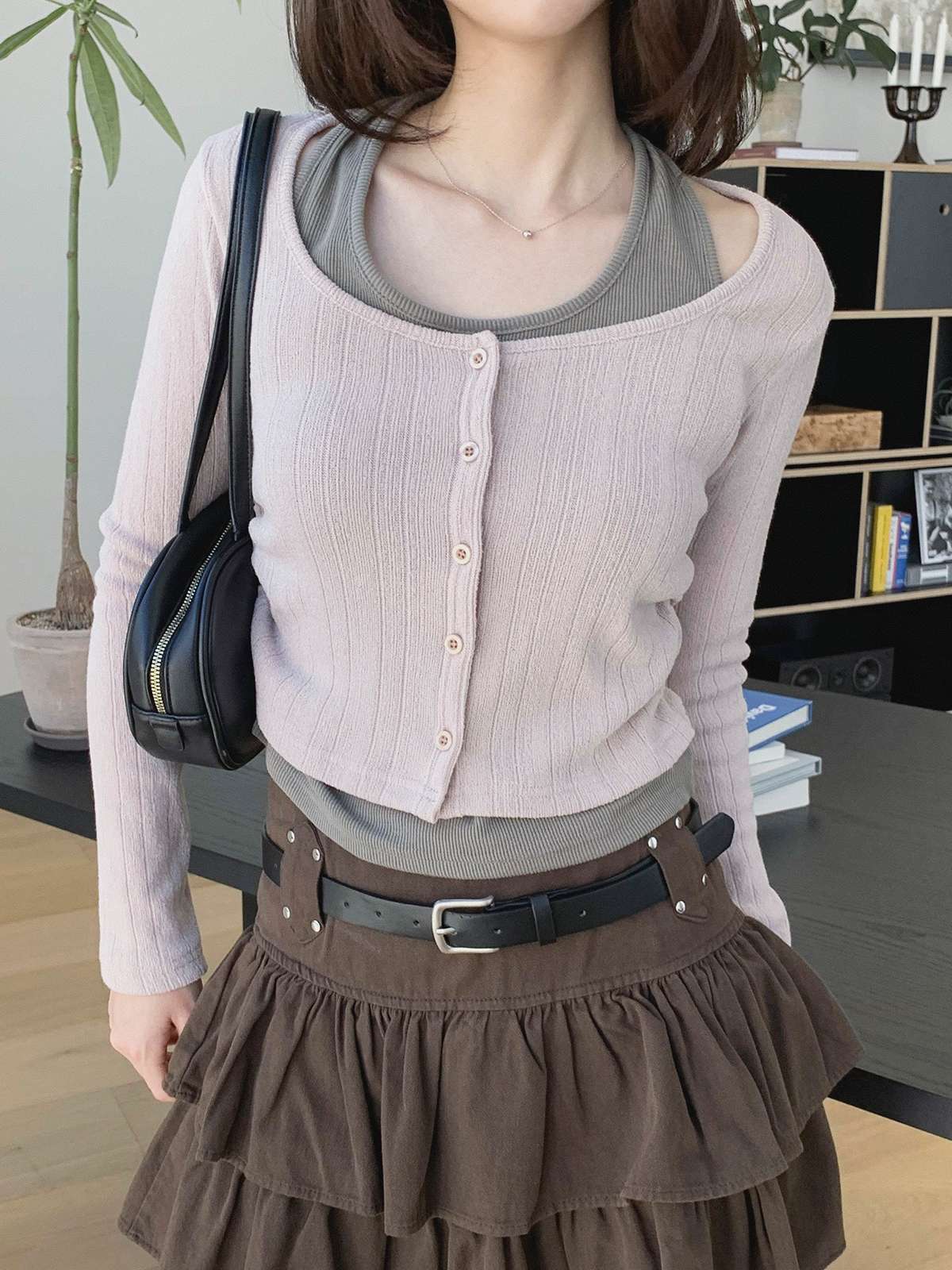 긴팔 가디건과 홀터넥 나시가 일체형으로 디자인된 슬림 가디건