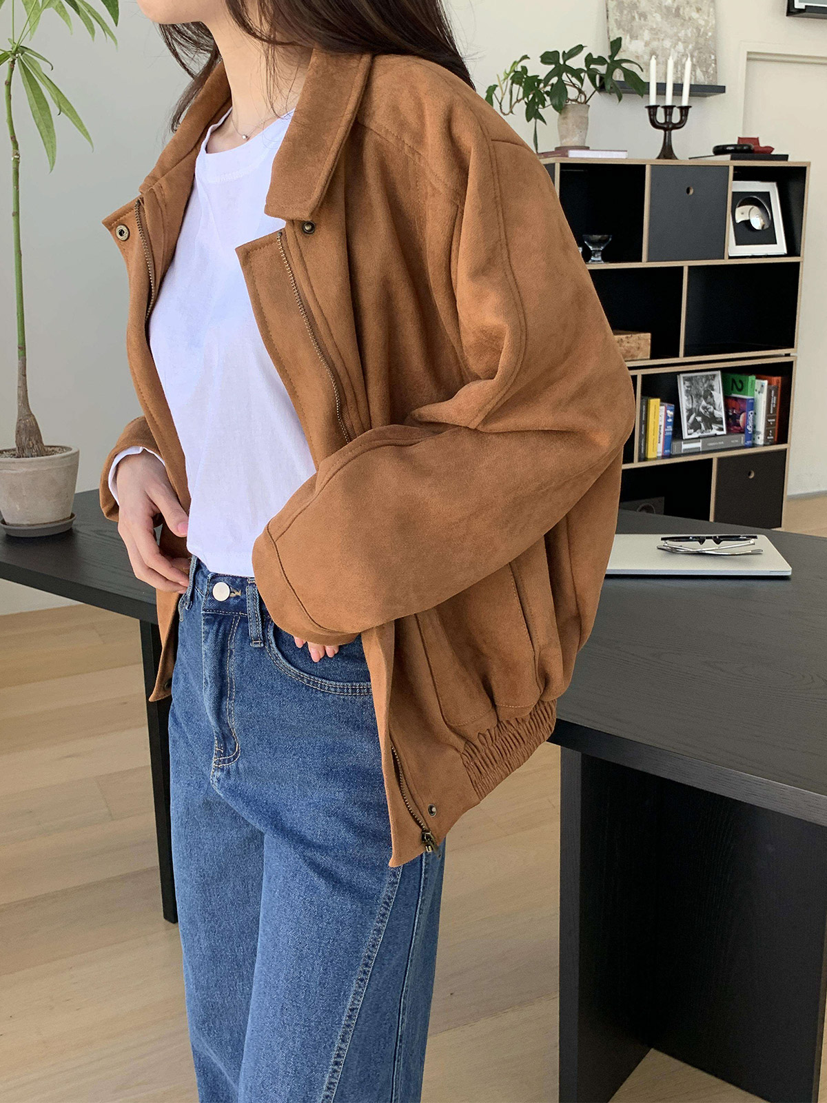 JK6048K59-레트인 루즈핏 히든 지퍼 스웨이드 점퍼