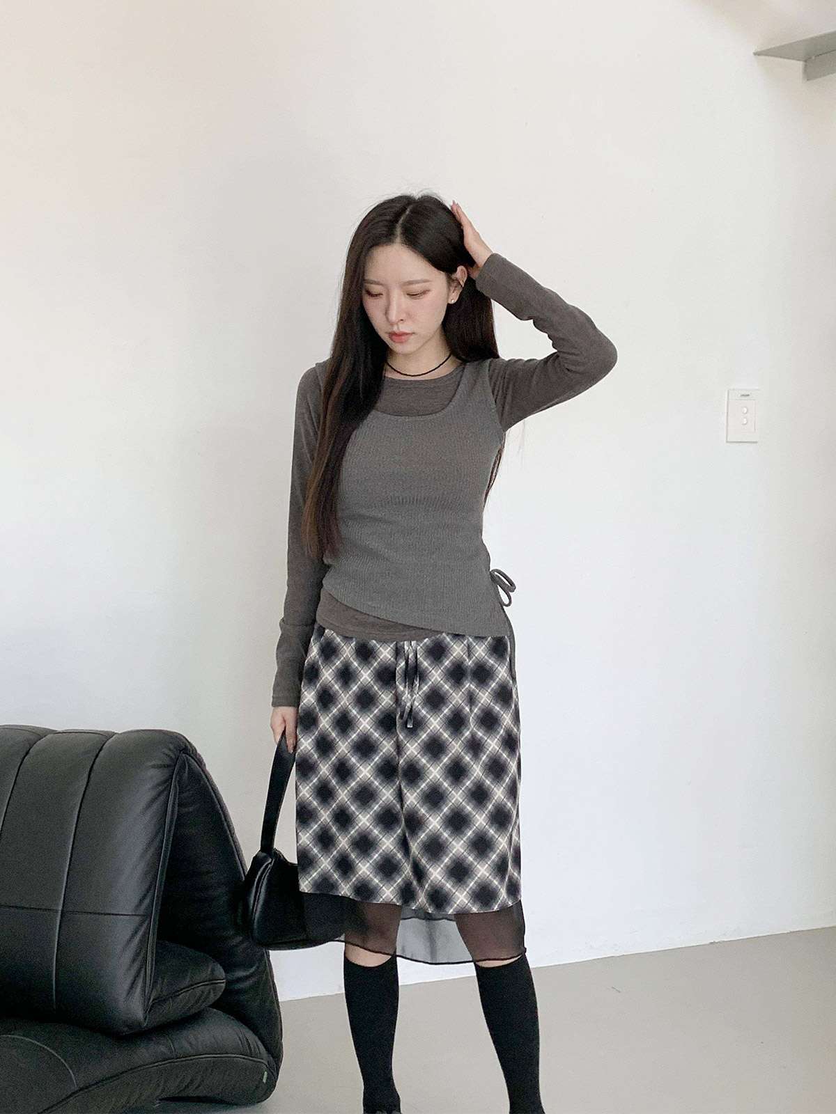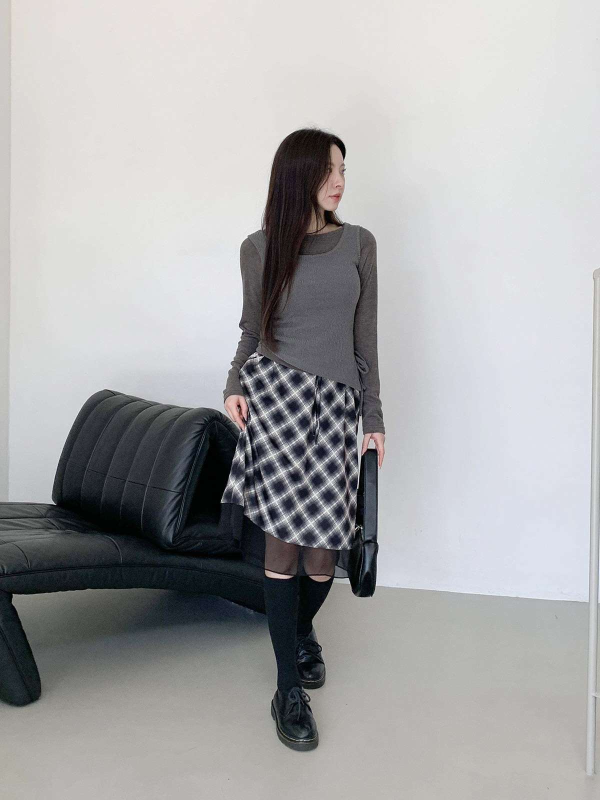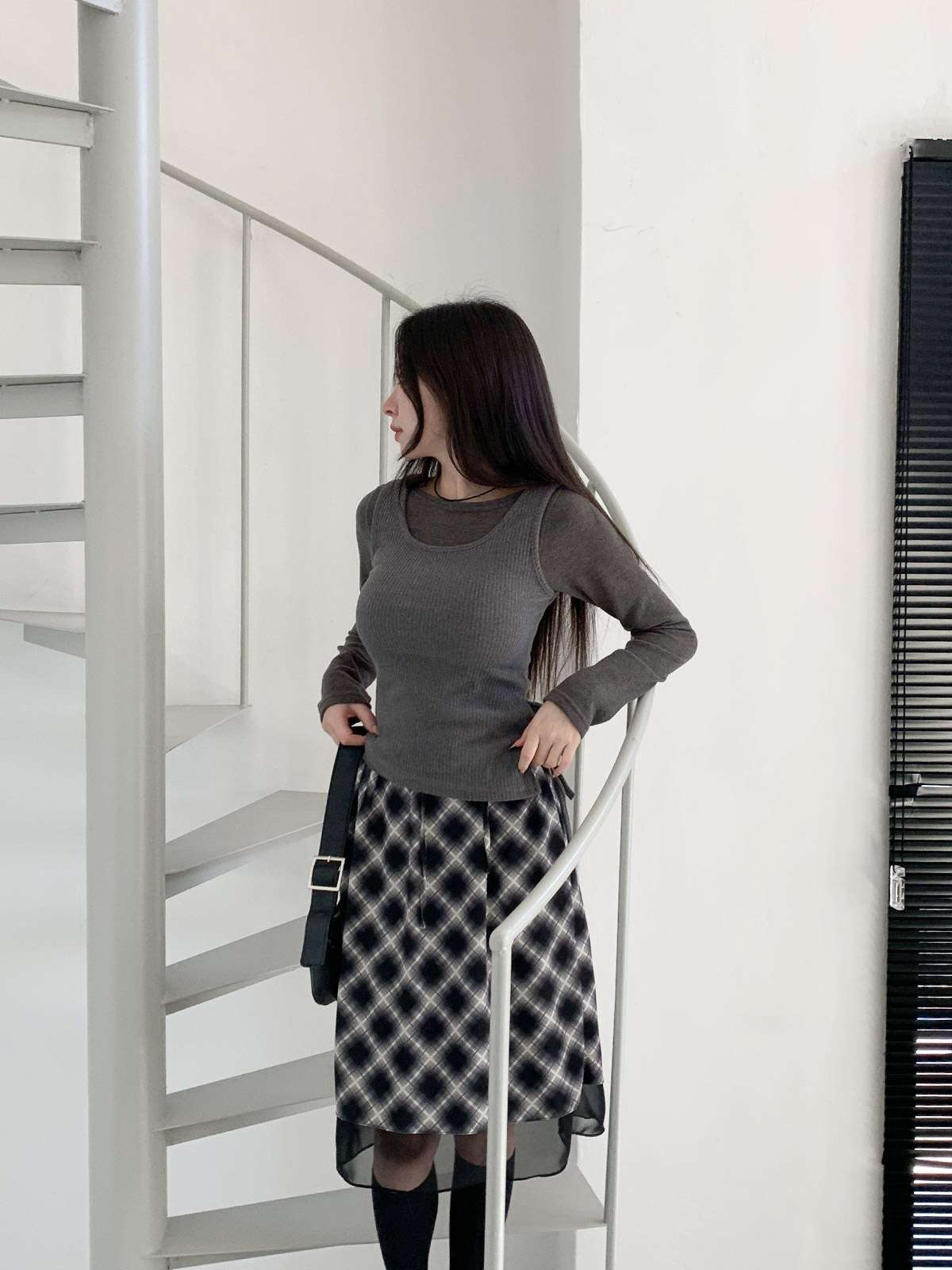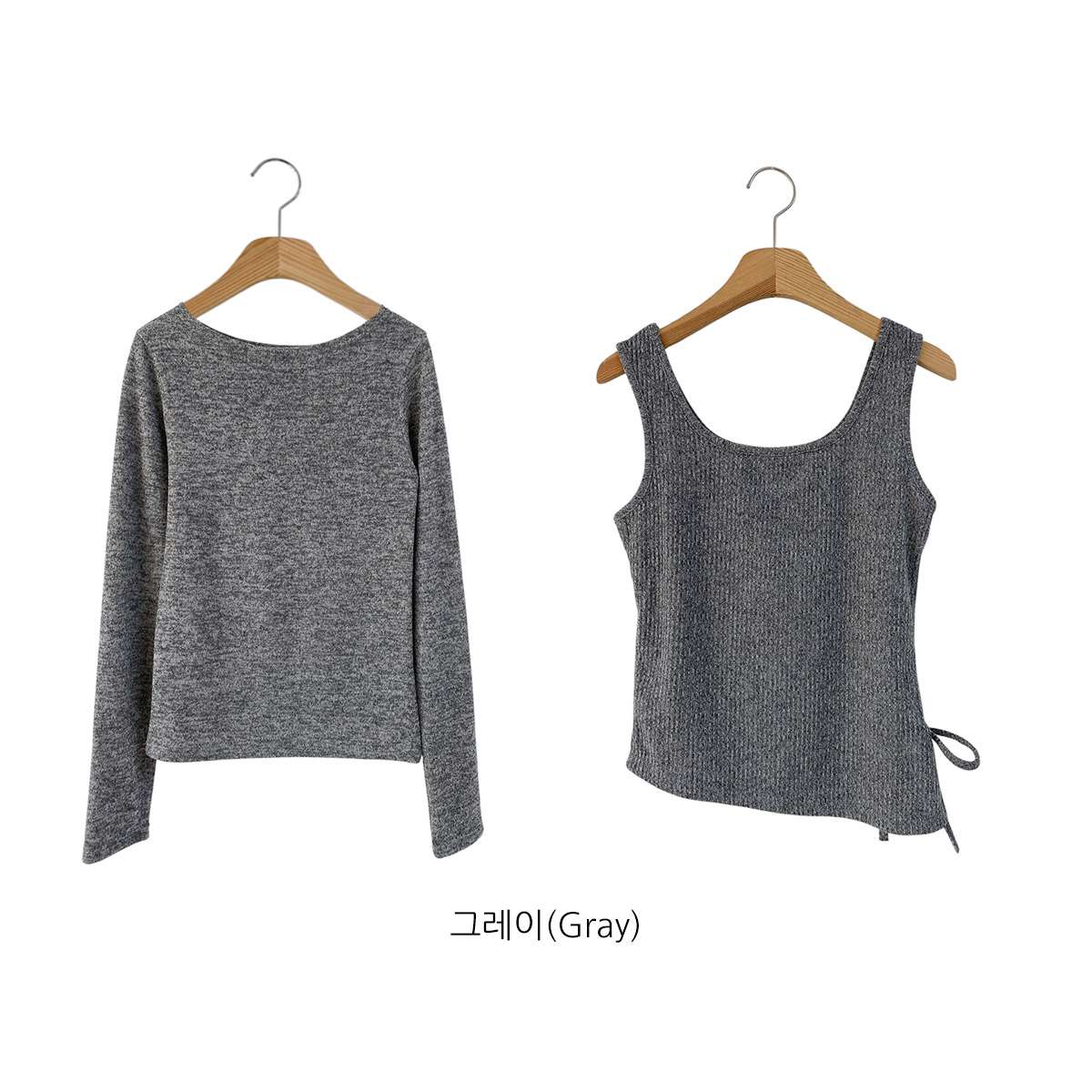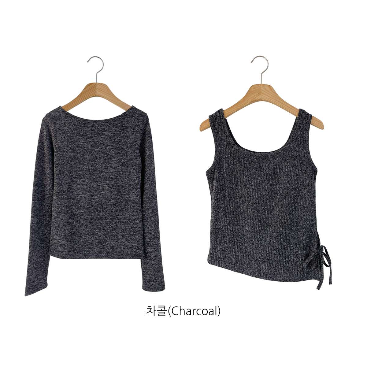 [ SET3836K59-그트인 언발 트임 나시 시스루 긴팔티 세트 ]