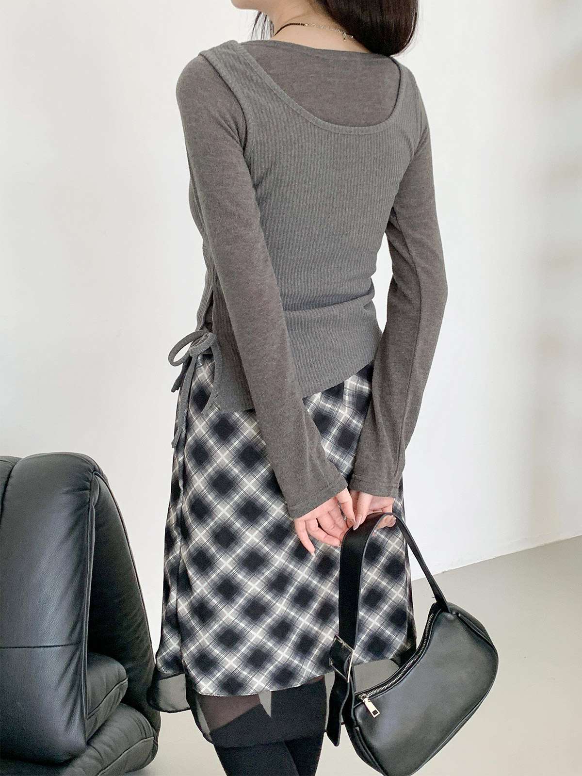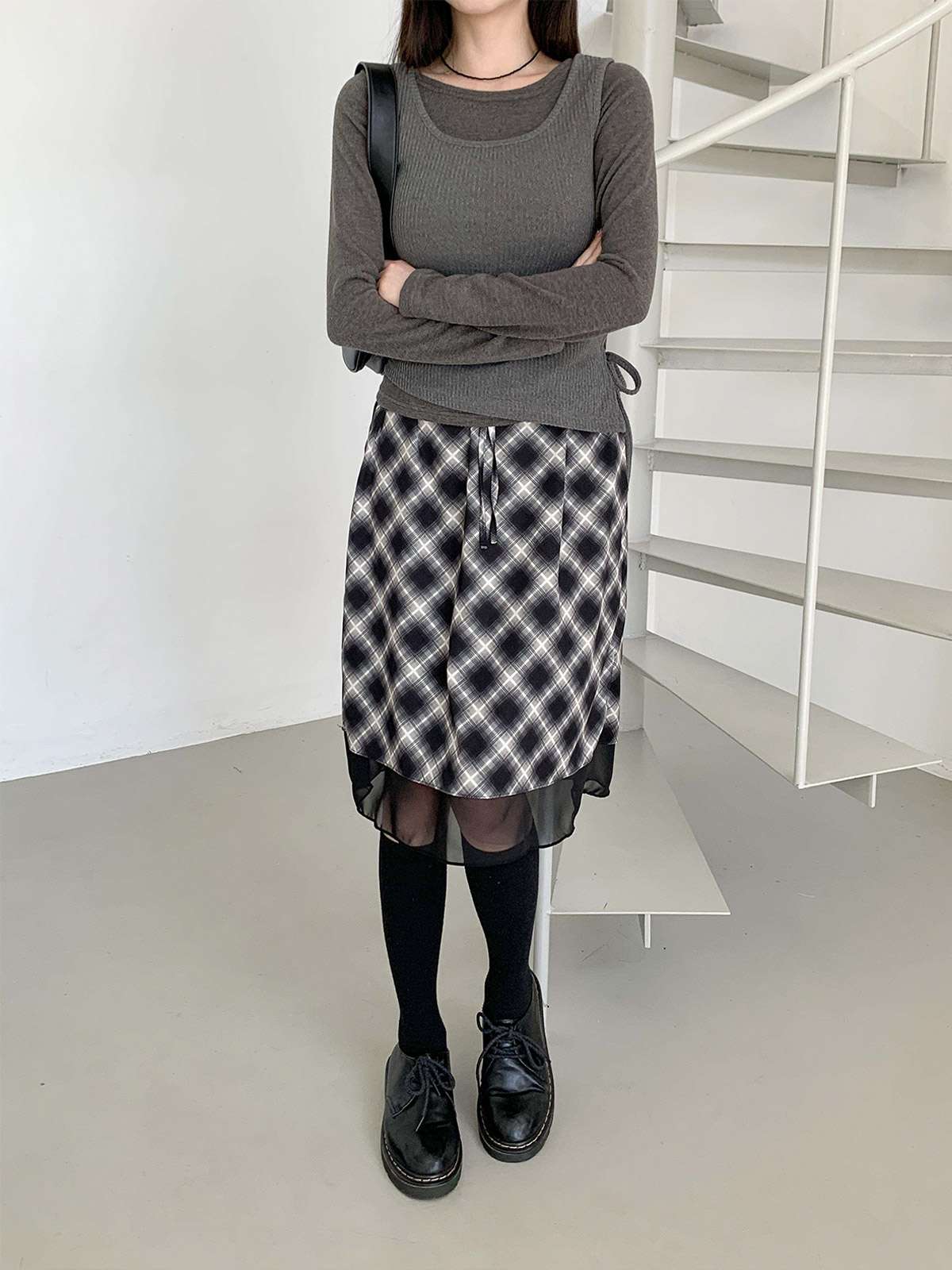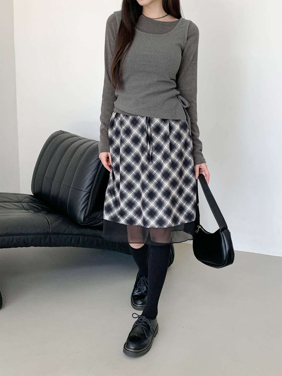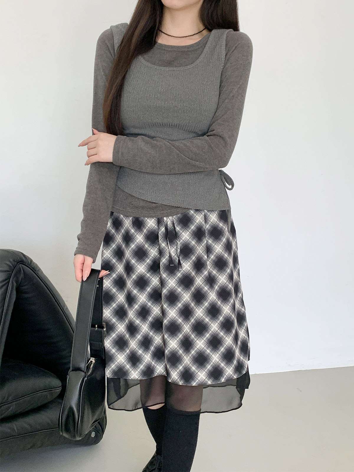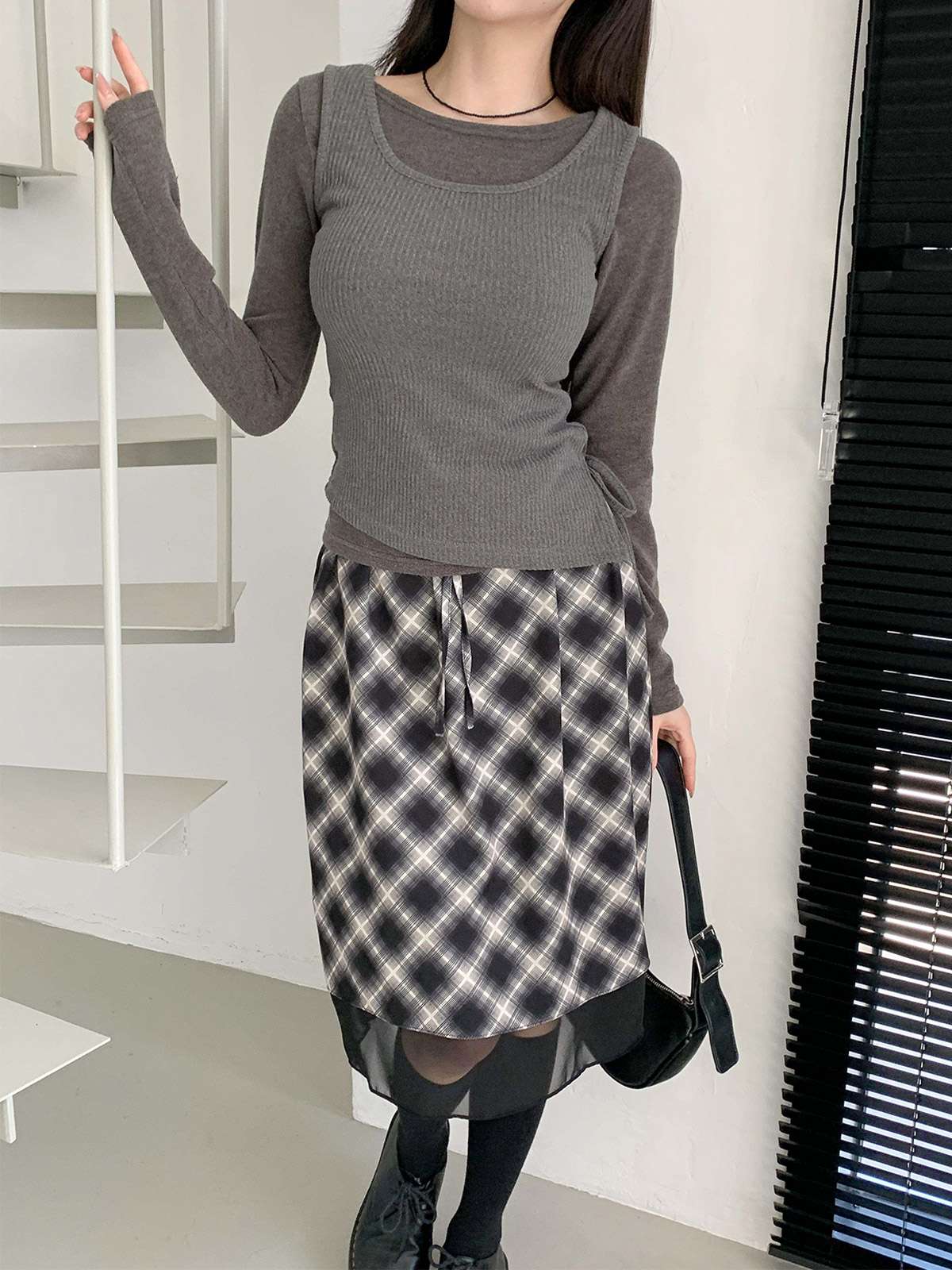 [ SET3836K59-그트인 언발 트임 나시 시스루 긴팔티 세트 ]