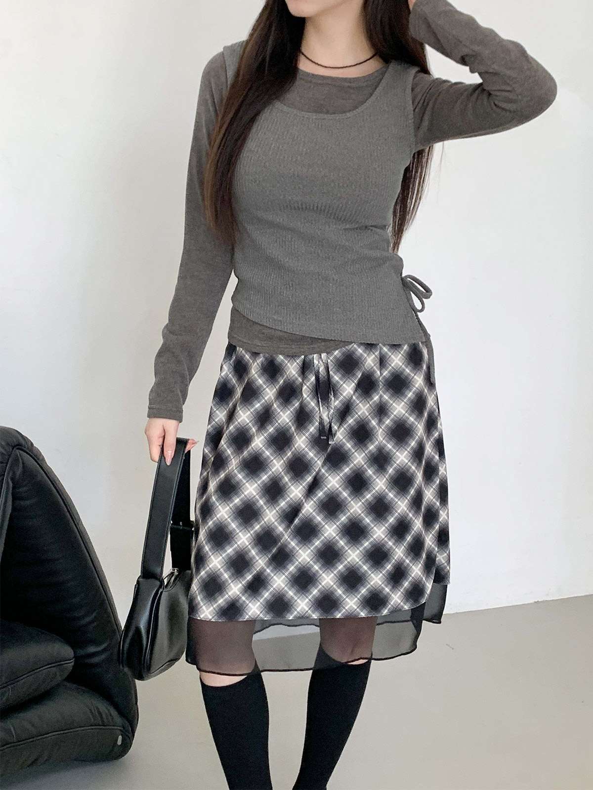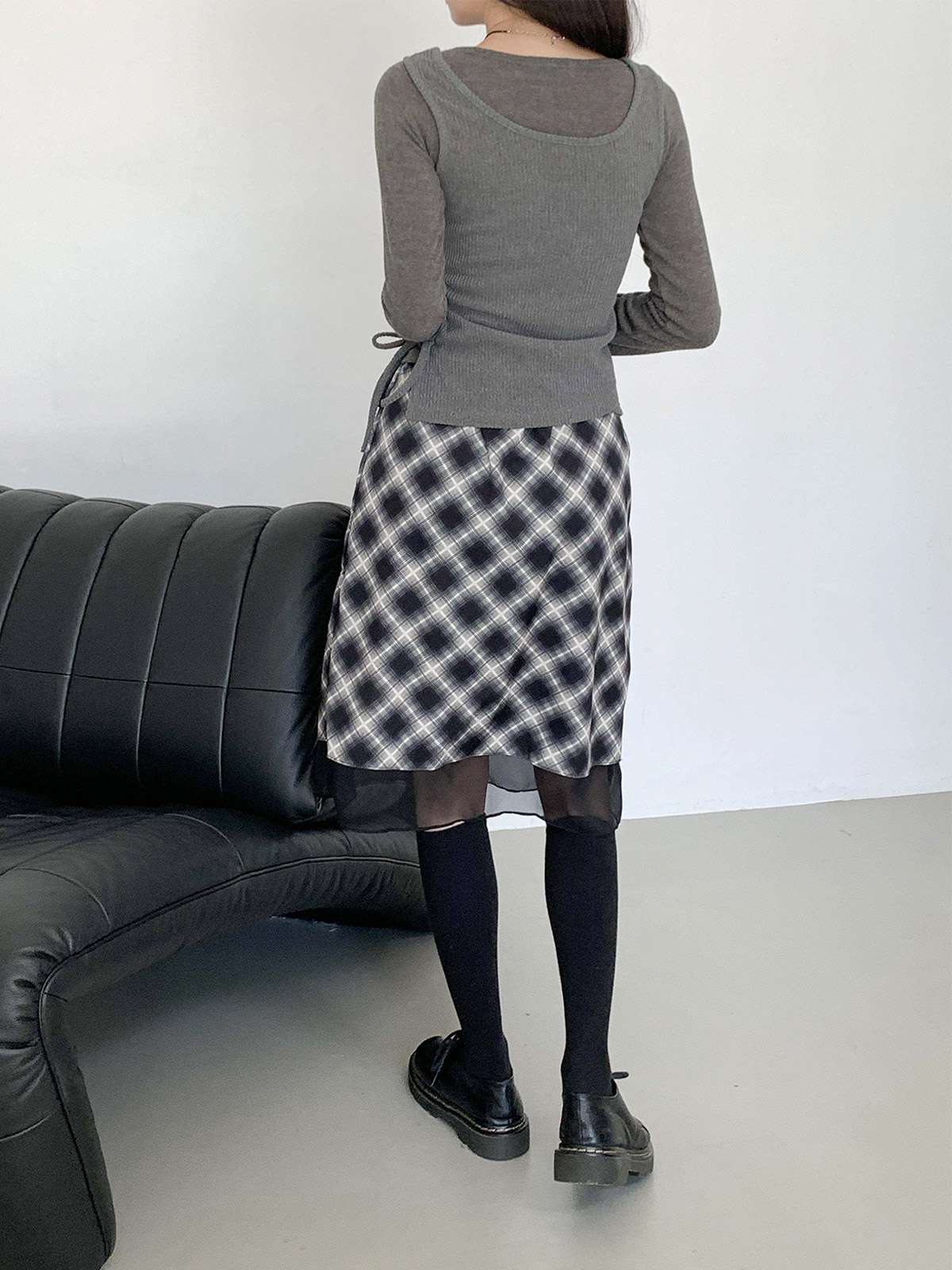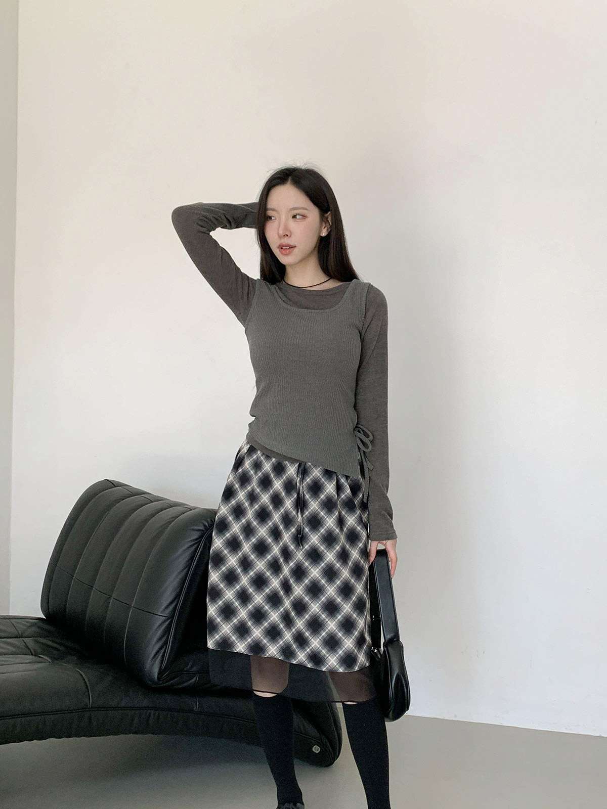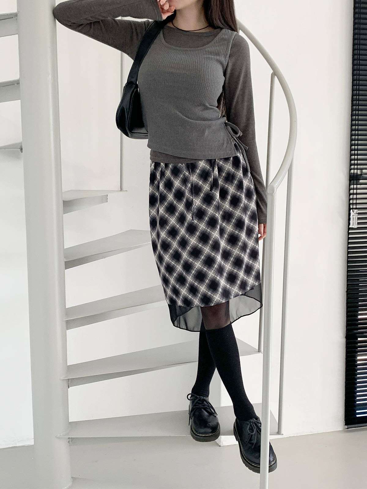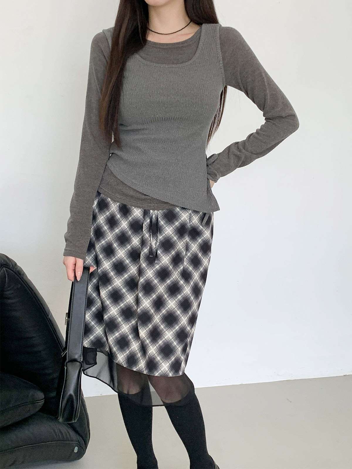 [ SET3836K59-그트인 언발 트임 나시 시스루 긴팔티 세트 ]