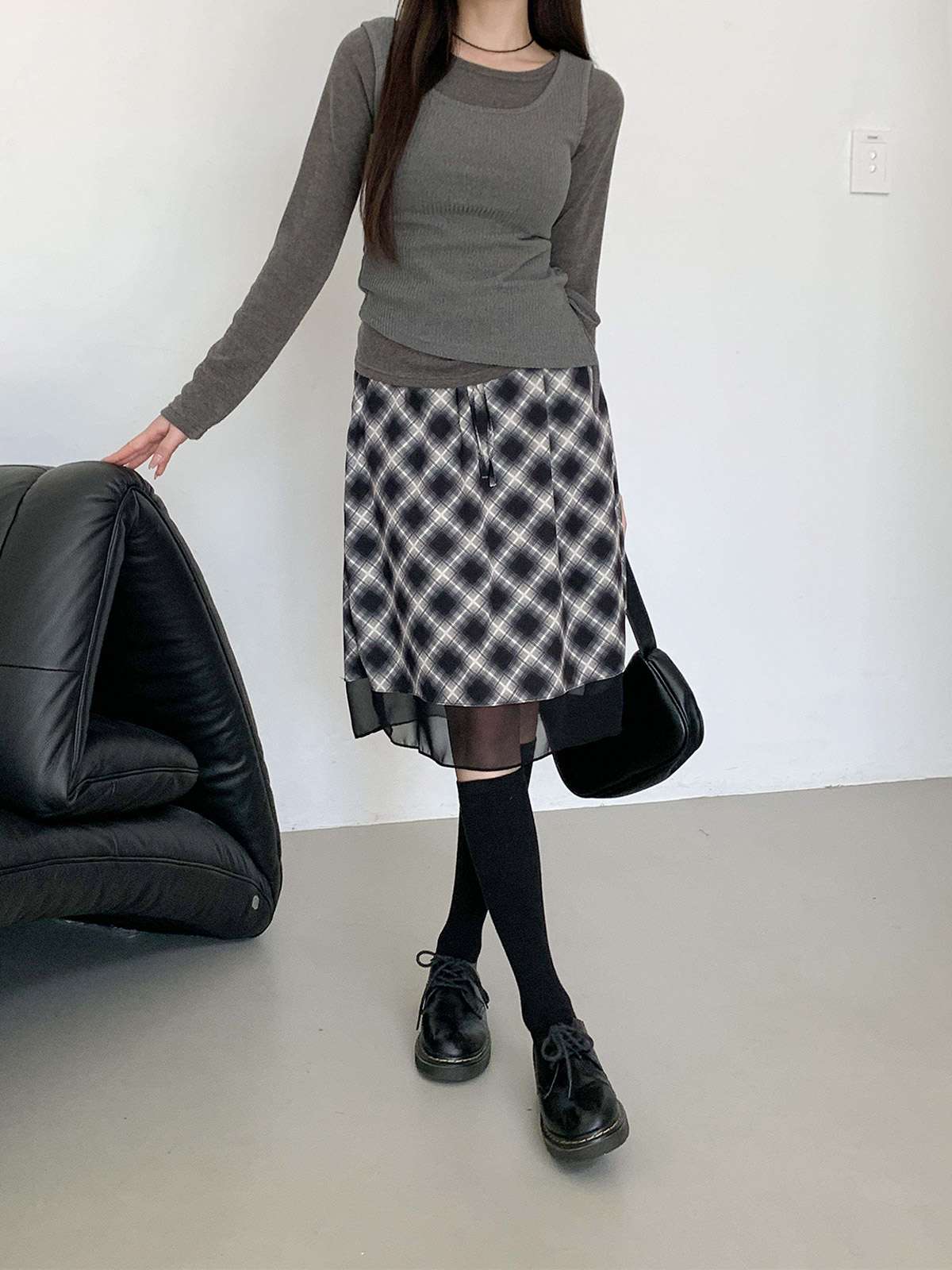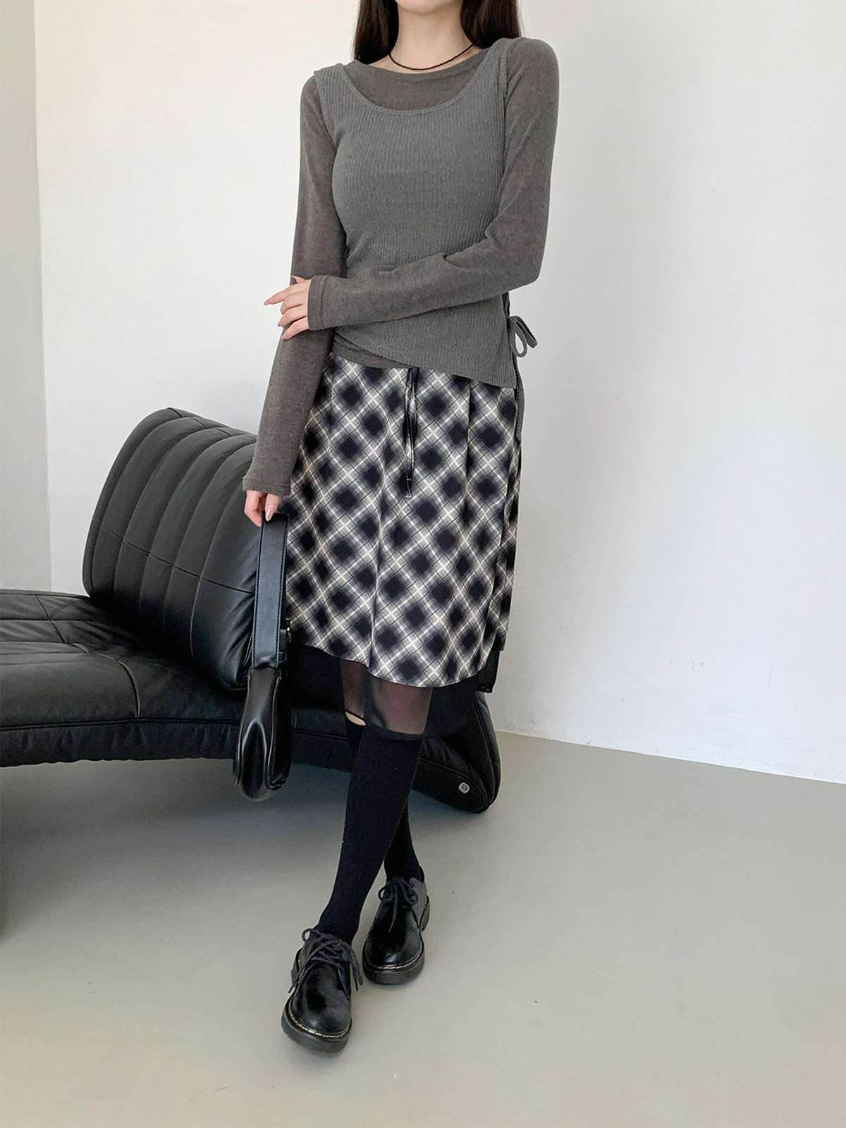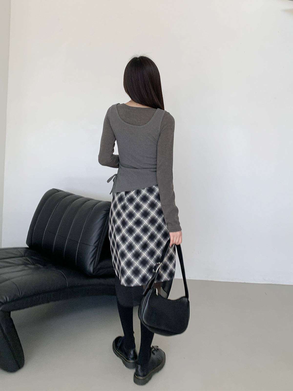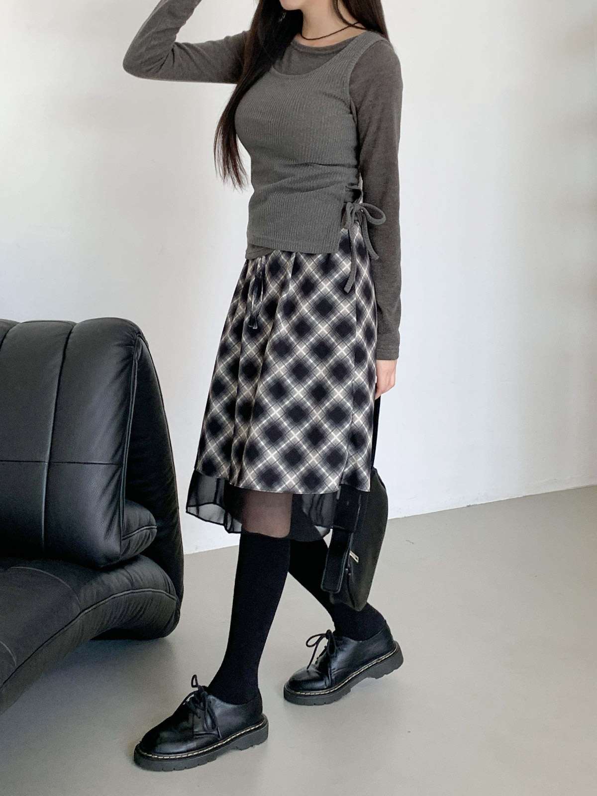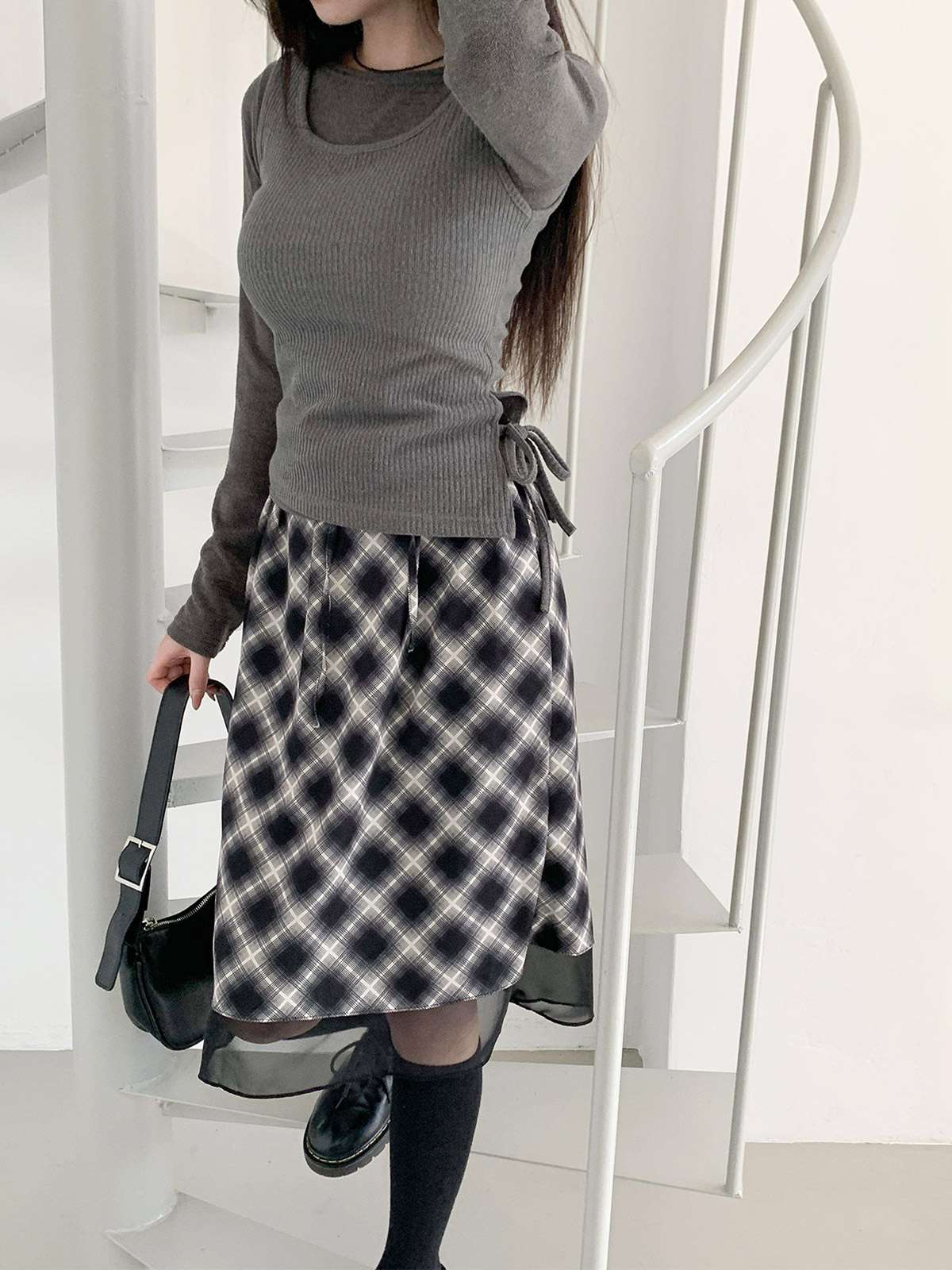 [ SET3836K59-그트인 언발 트임 나시 시스루 긴팔티 세트 ]