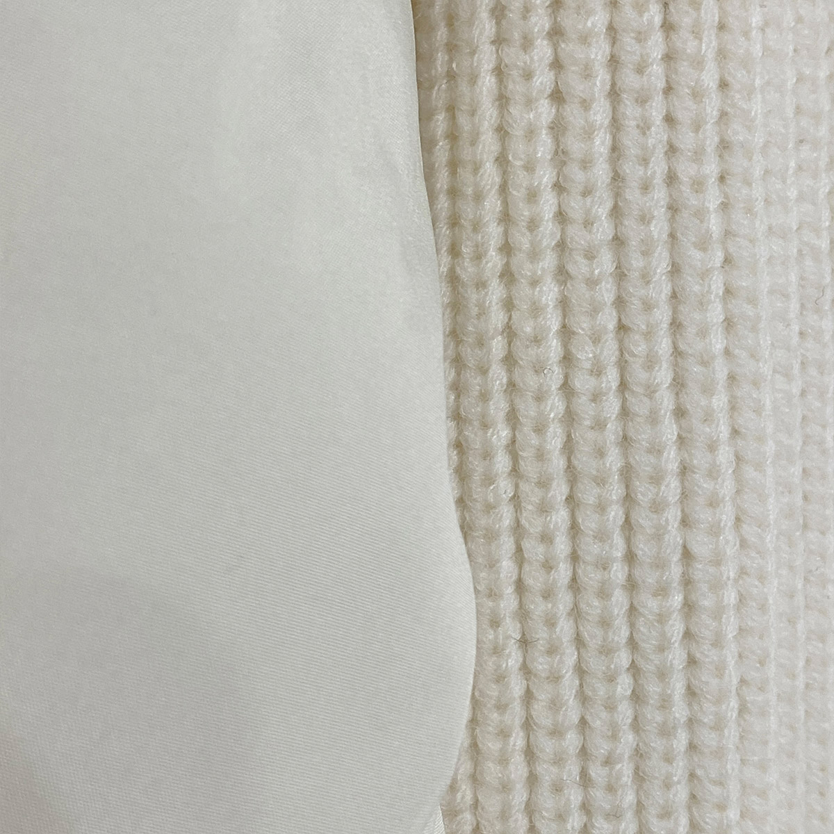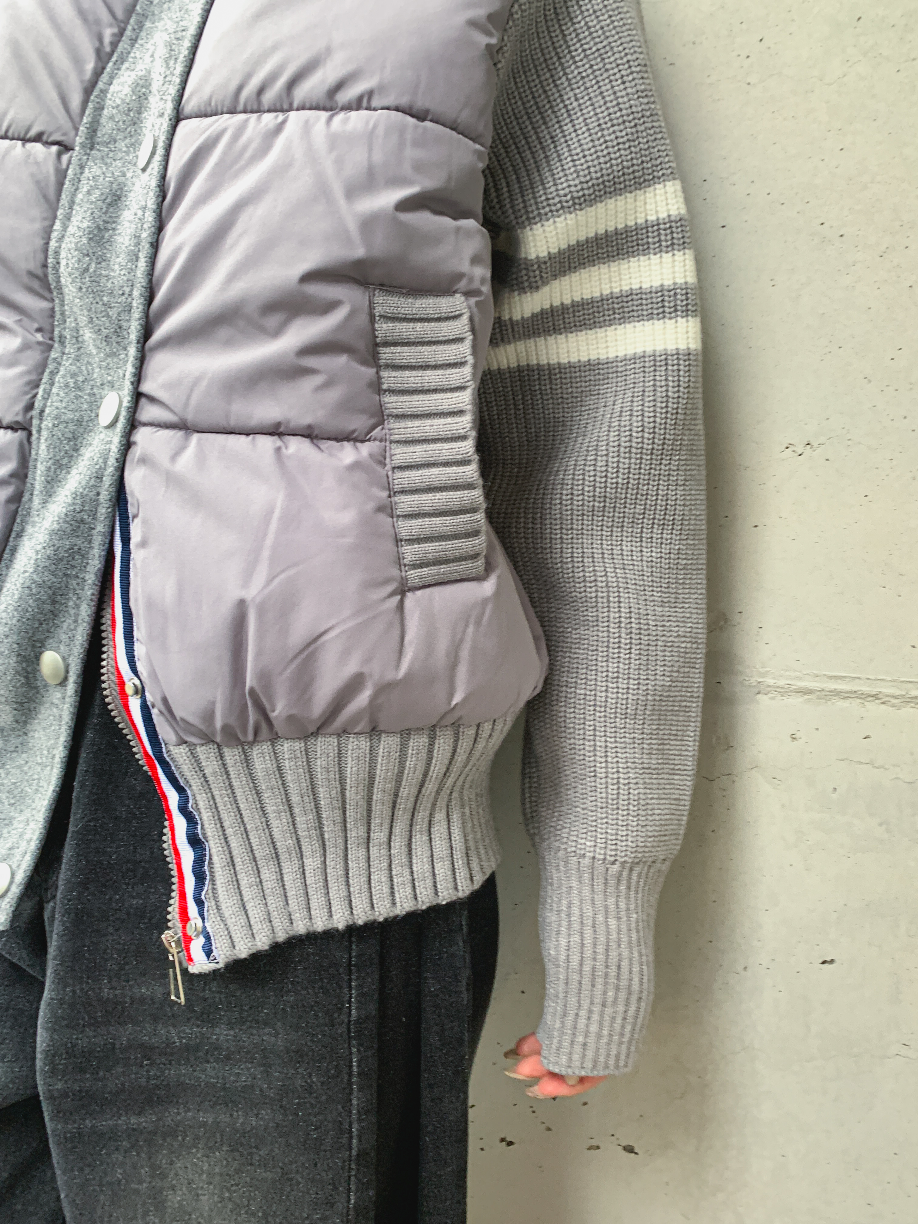 유니크한 니트 소매 디자인으로 소매에 스트라이프 패턴이 있어서 더욱 포인트되고