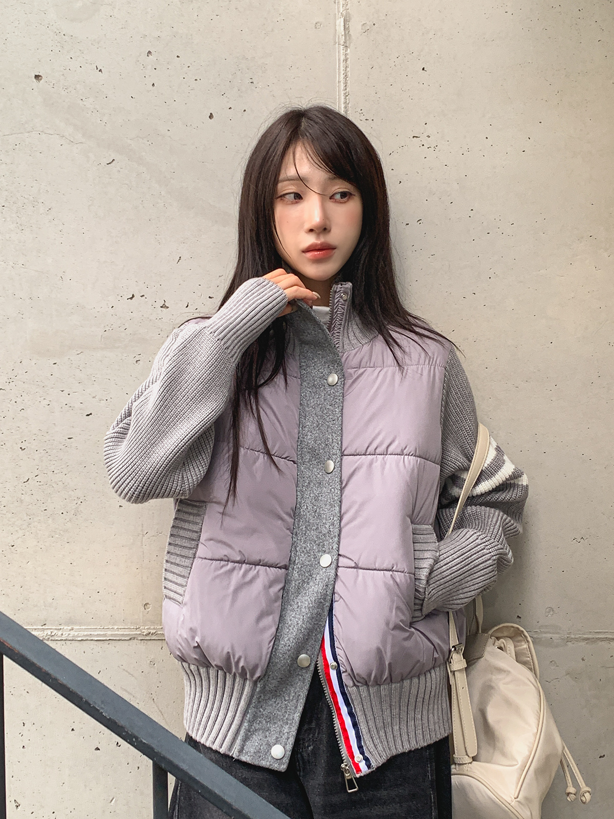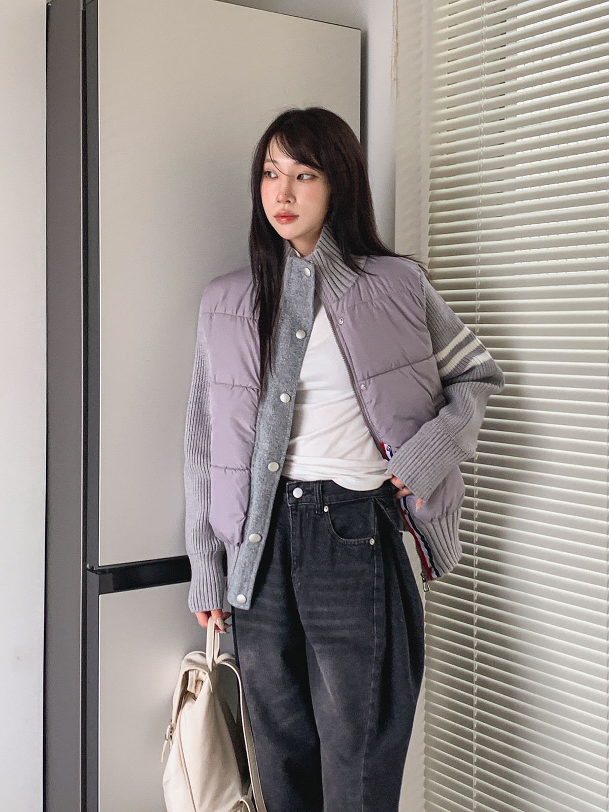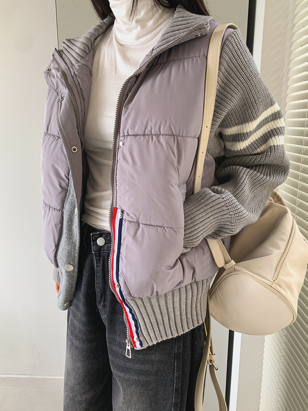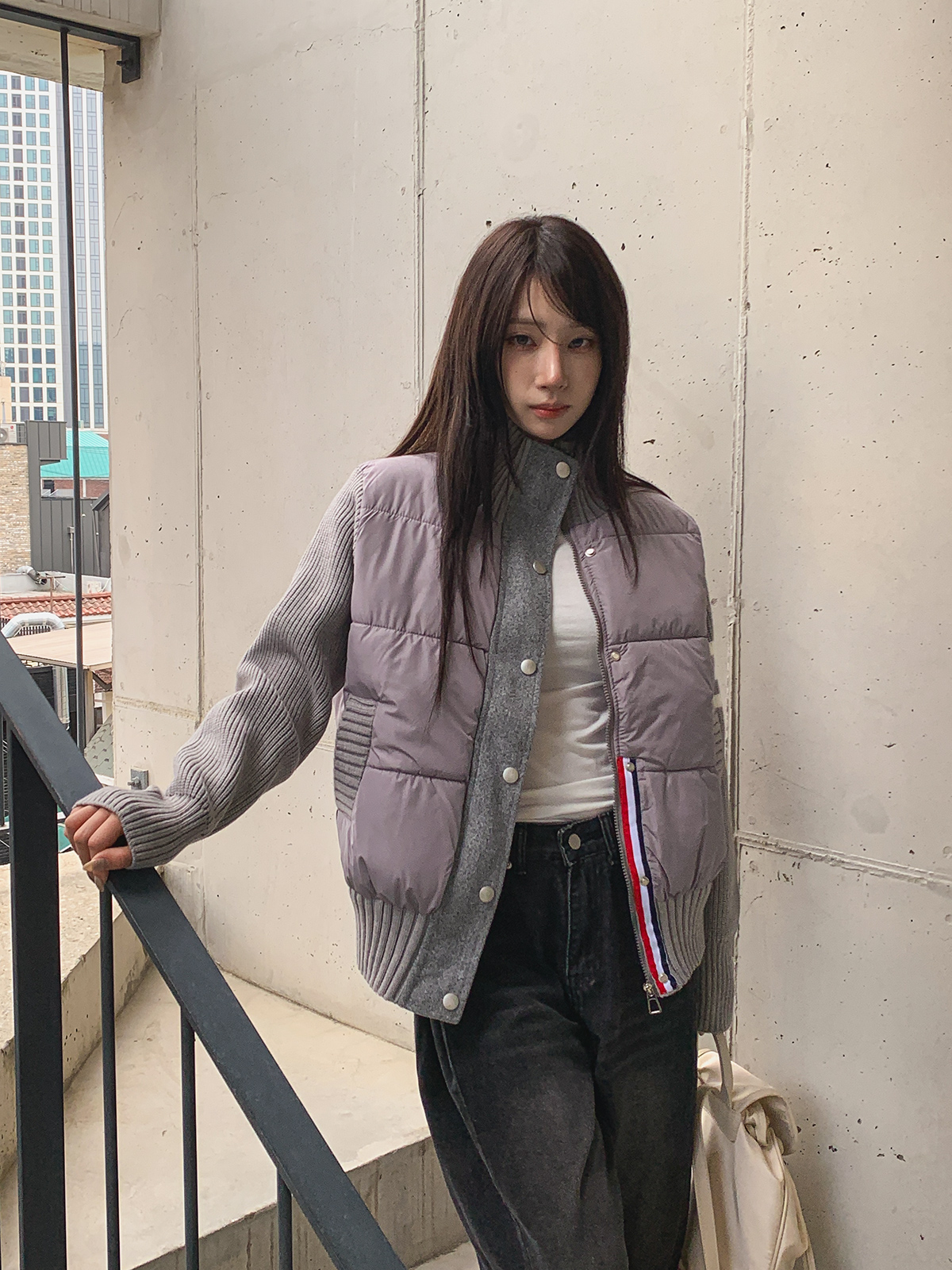 [ JK6050K59-빌리버 하이넥 세미크롭 니트패딩 ]