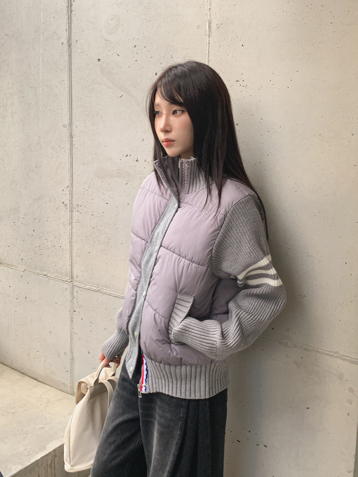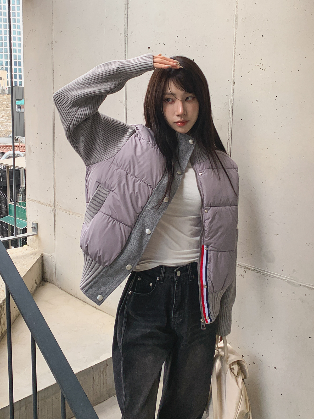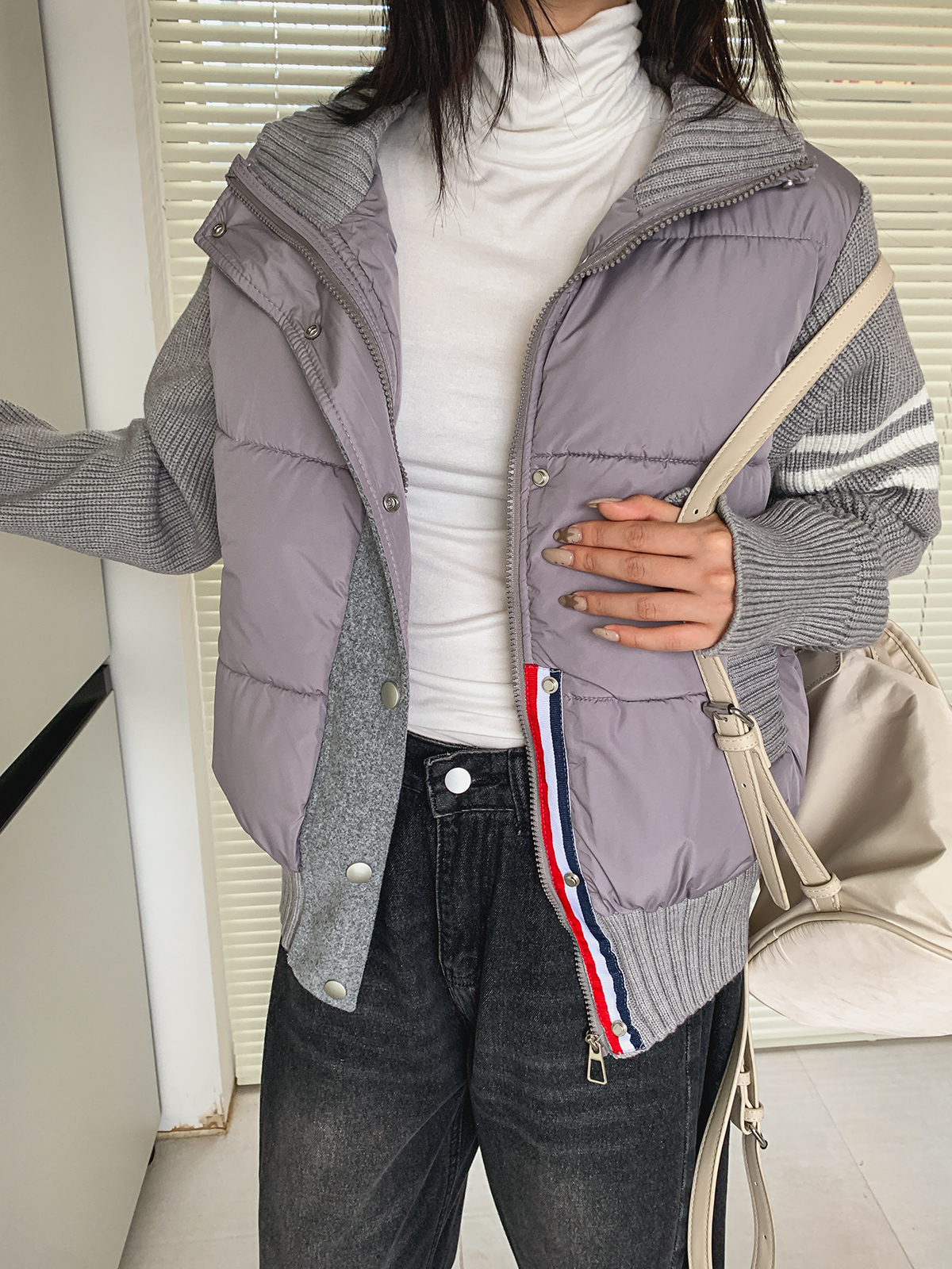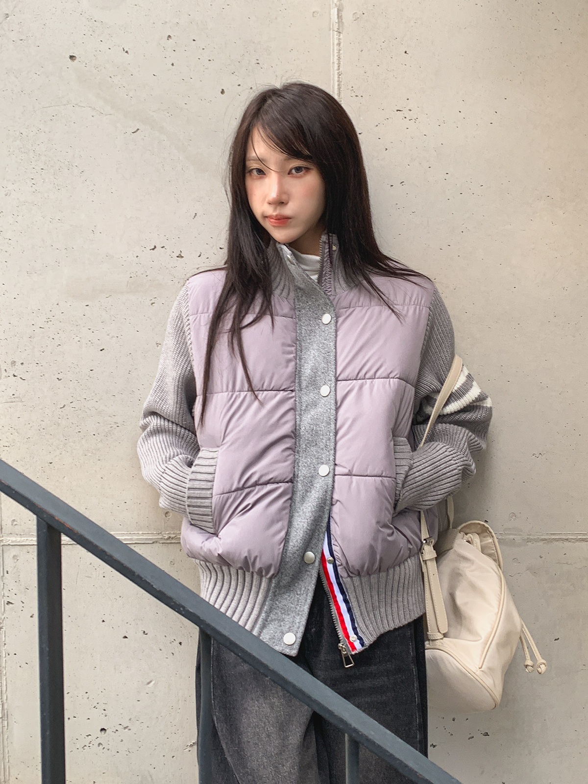 [ JK6050K59-빌리버 하이넥 세미크롭 니트패딩 ]