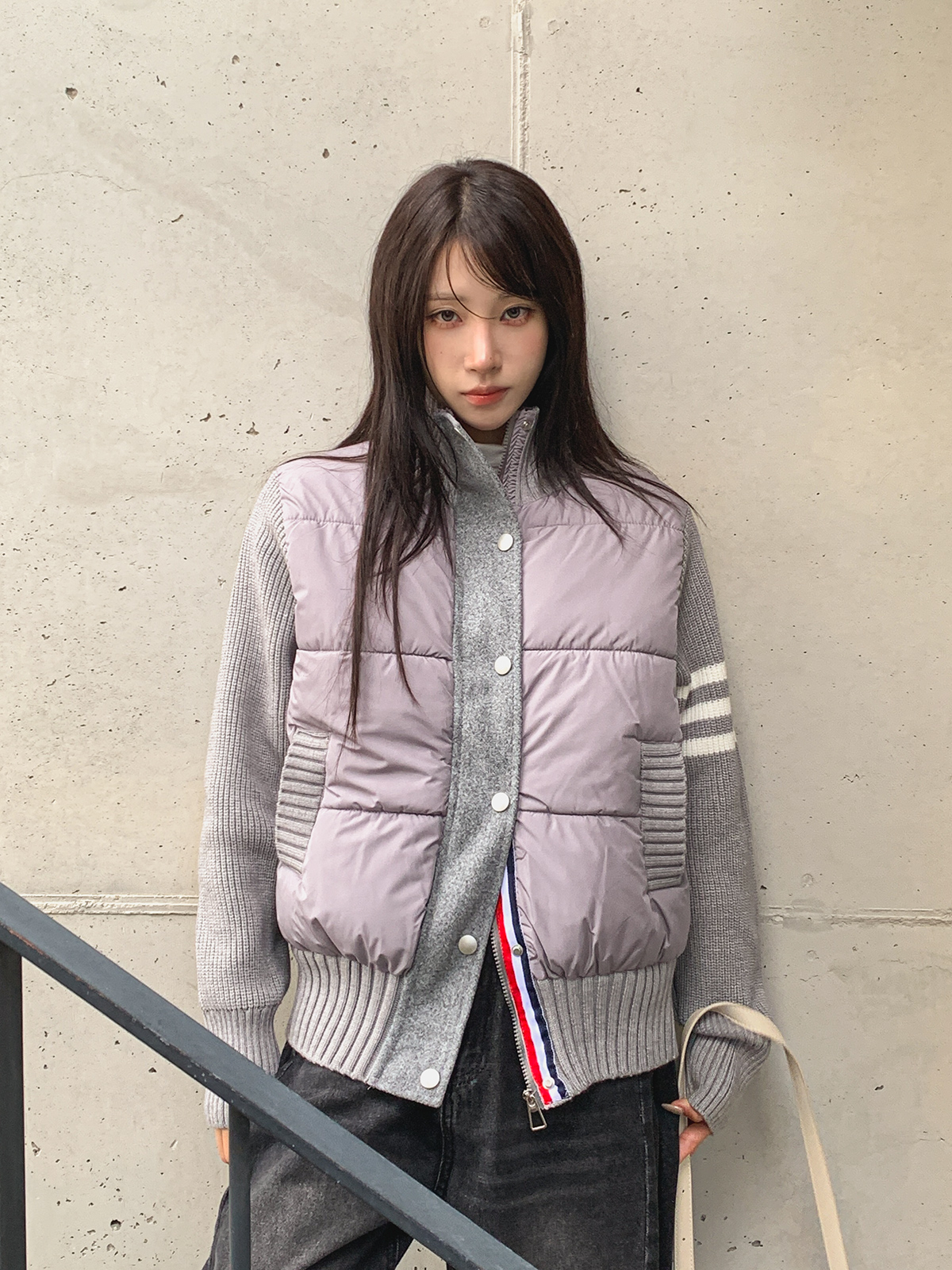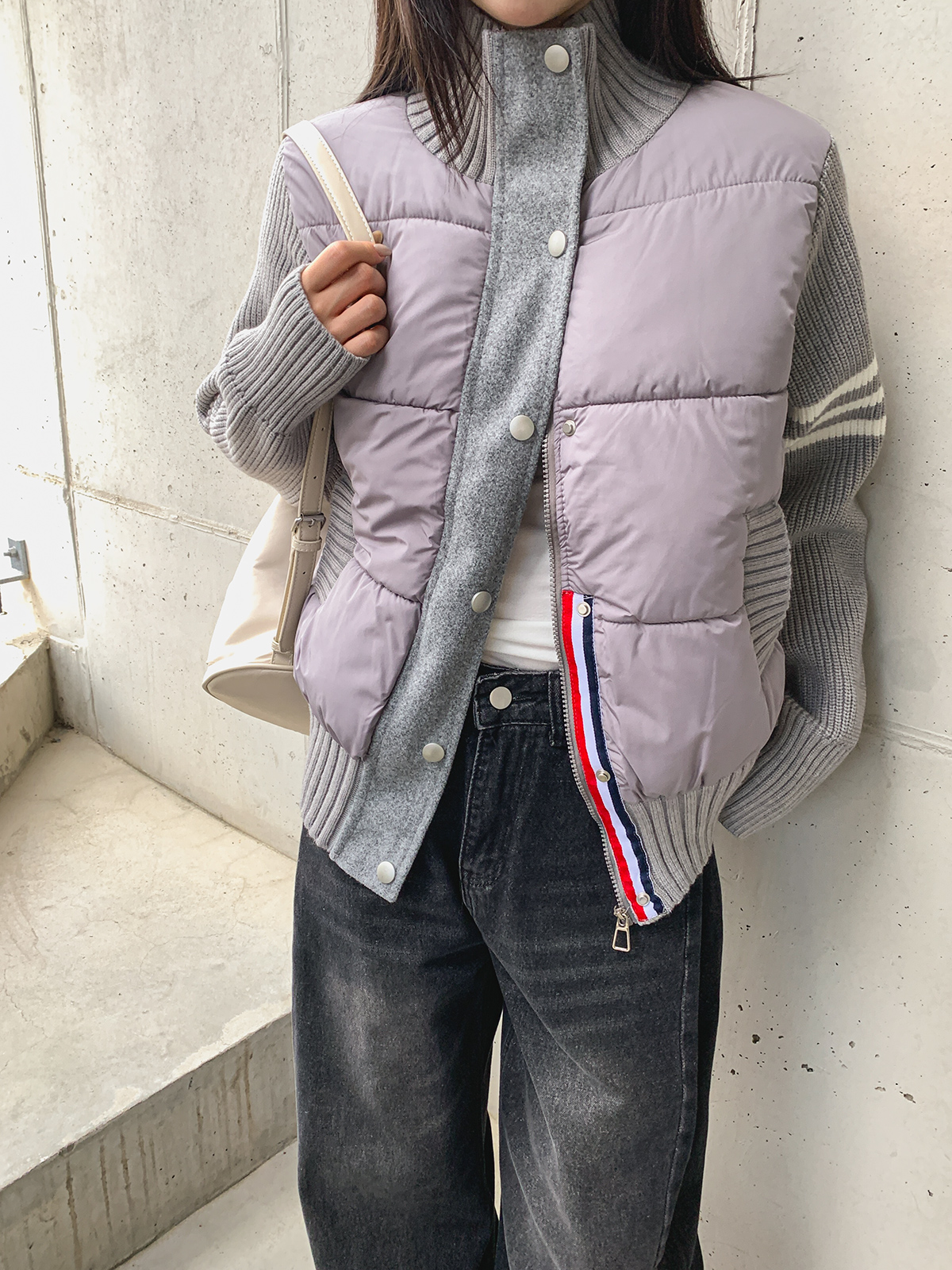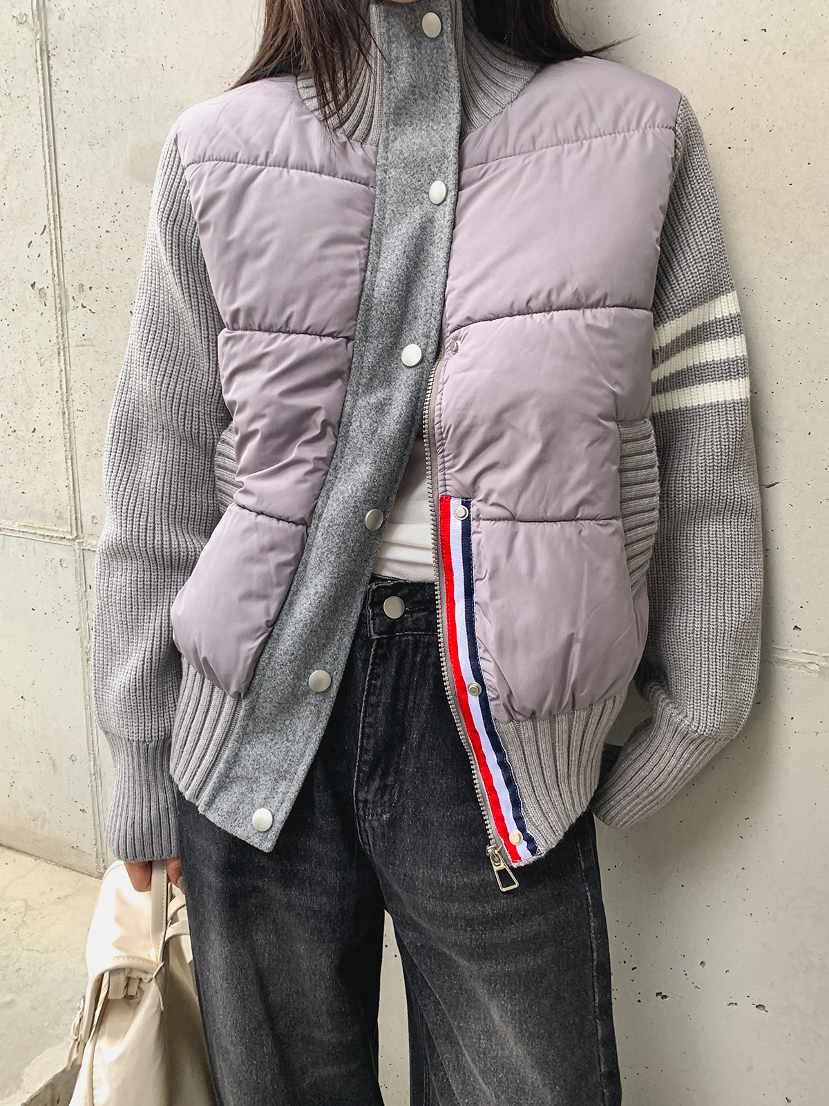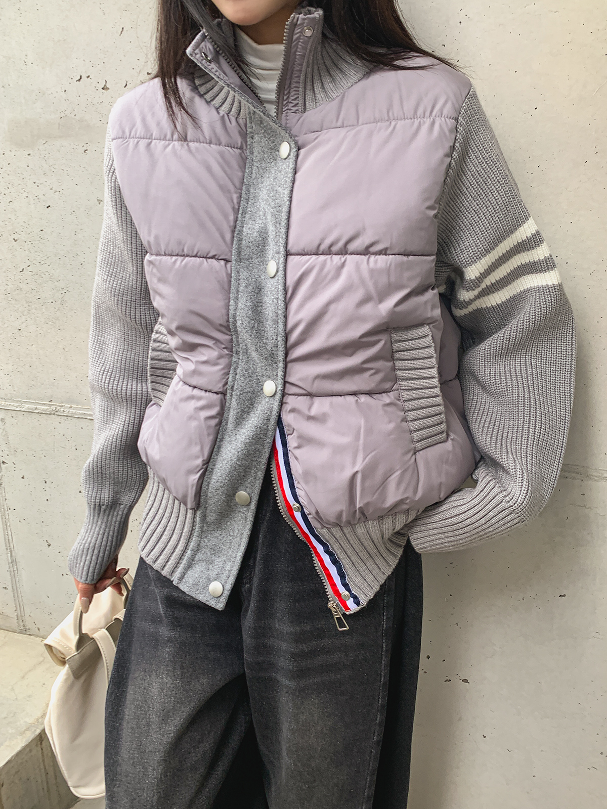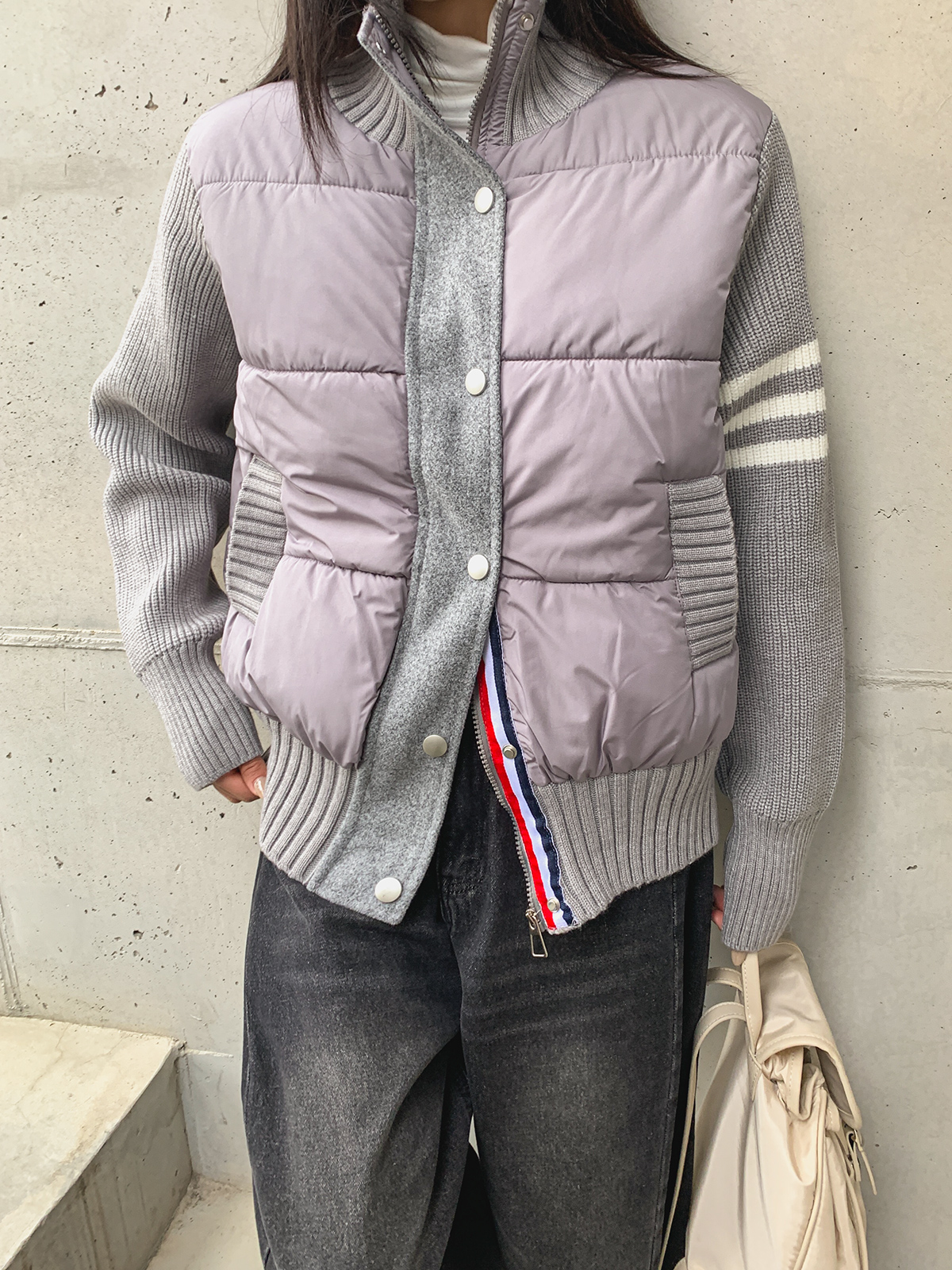 [ JK6050K59-빌리버 하이넥 세미크롭 니트패딩 ]