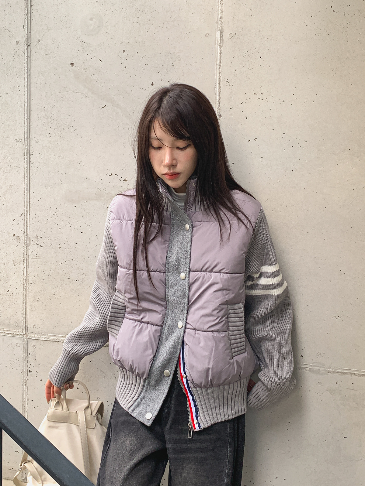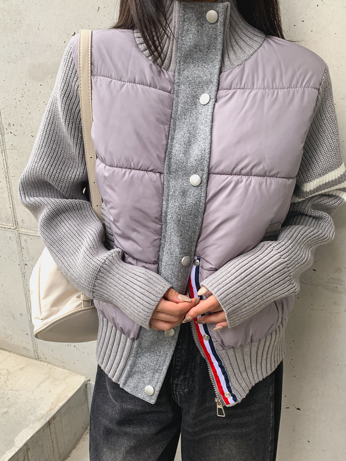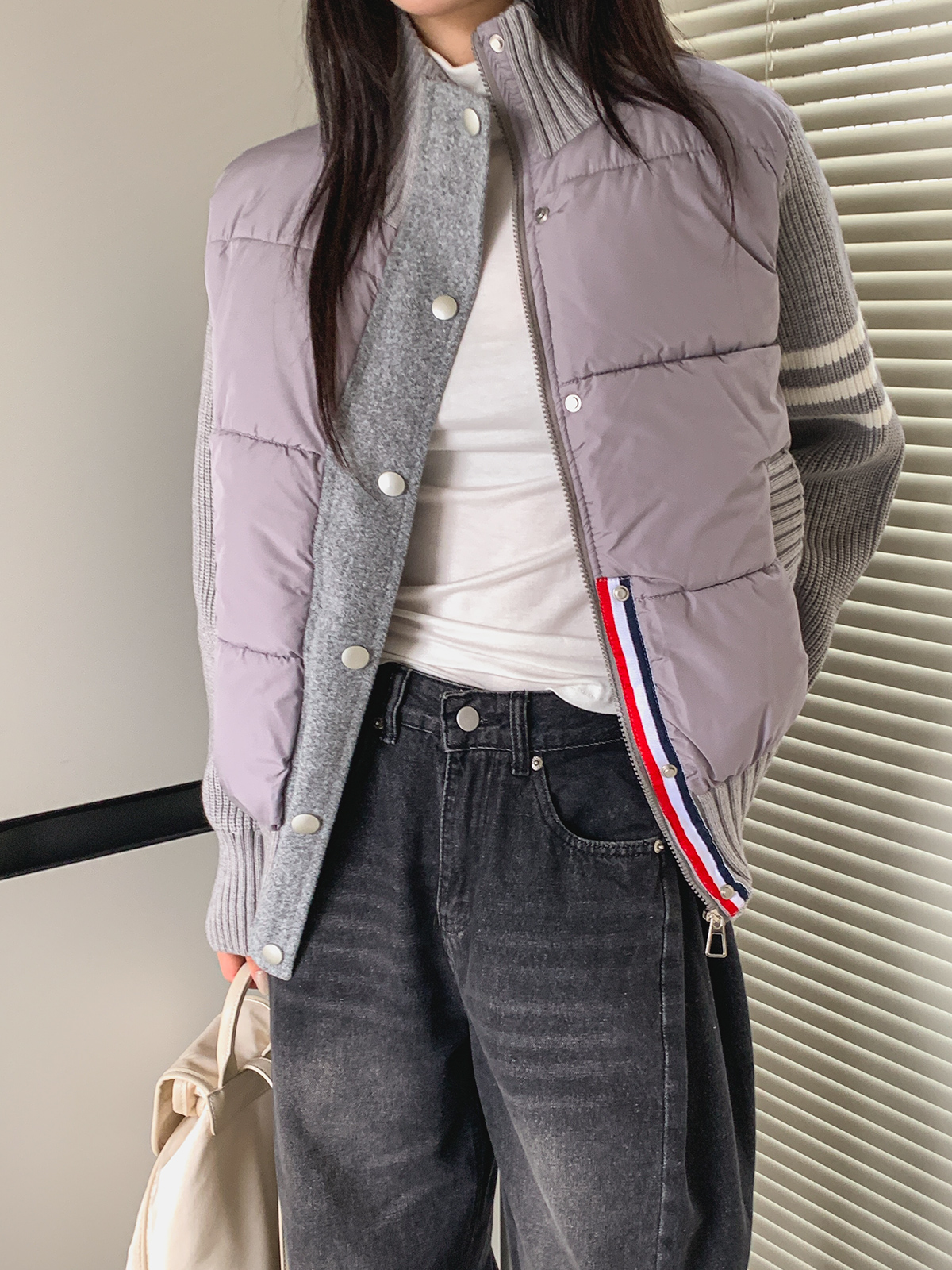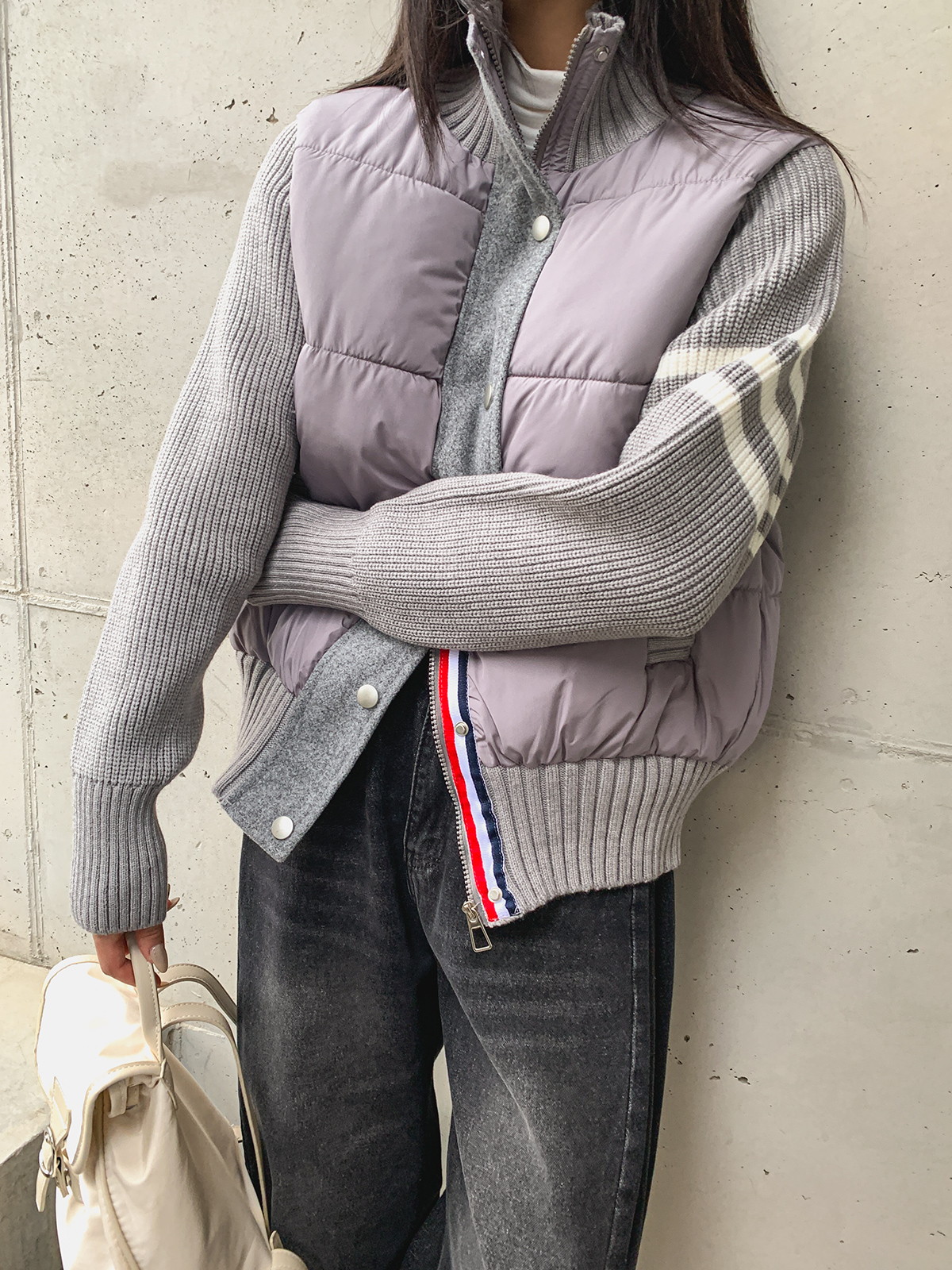 [ JK6050K59-빌리버 하이넥 세미크롭 니트패딩 ]