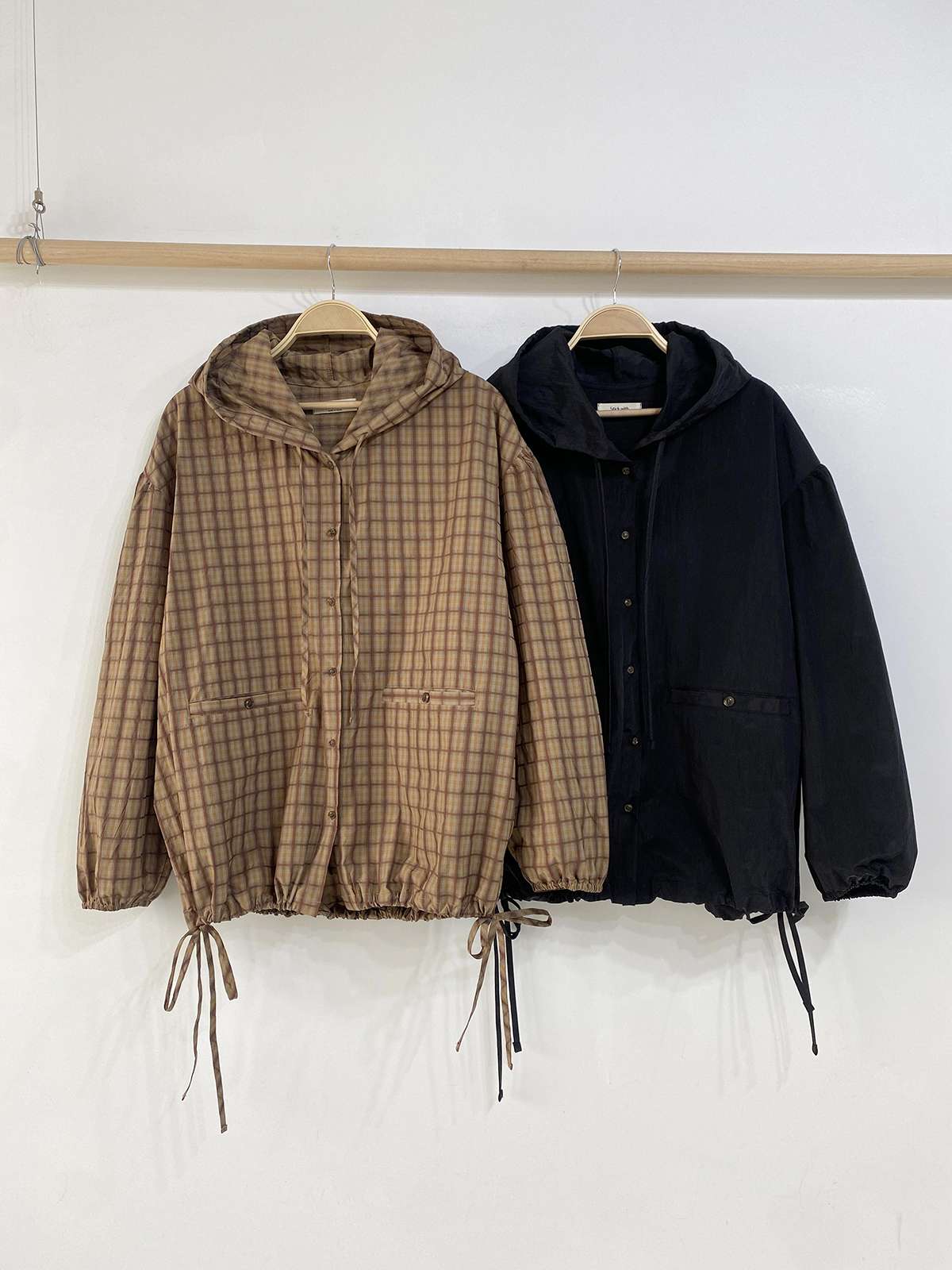 [ JK6051K59-루킨디 오버핏 체크 후드 바람막이 ]