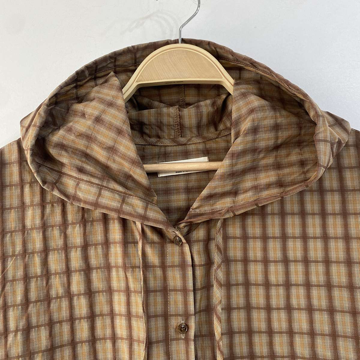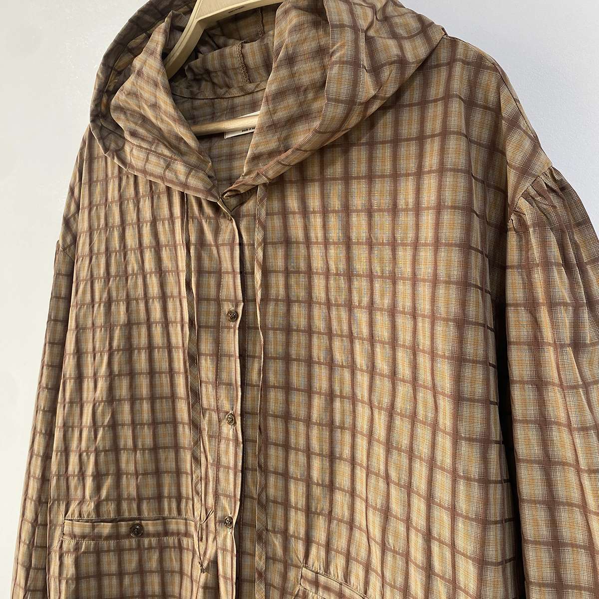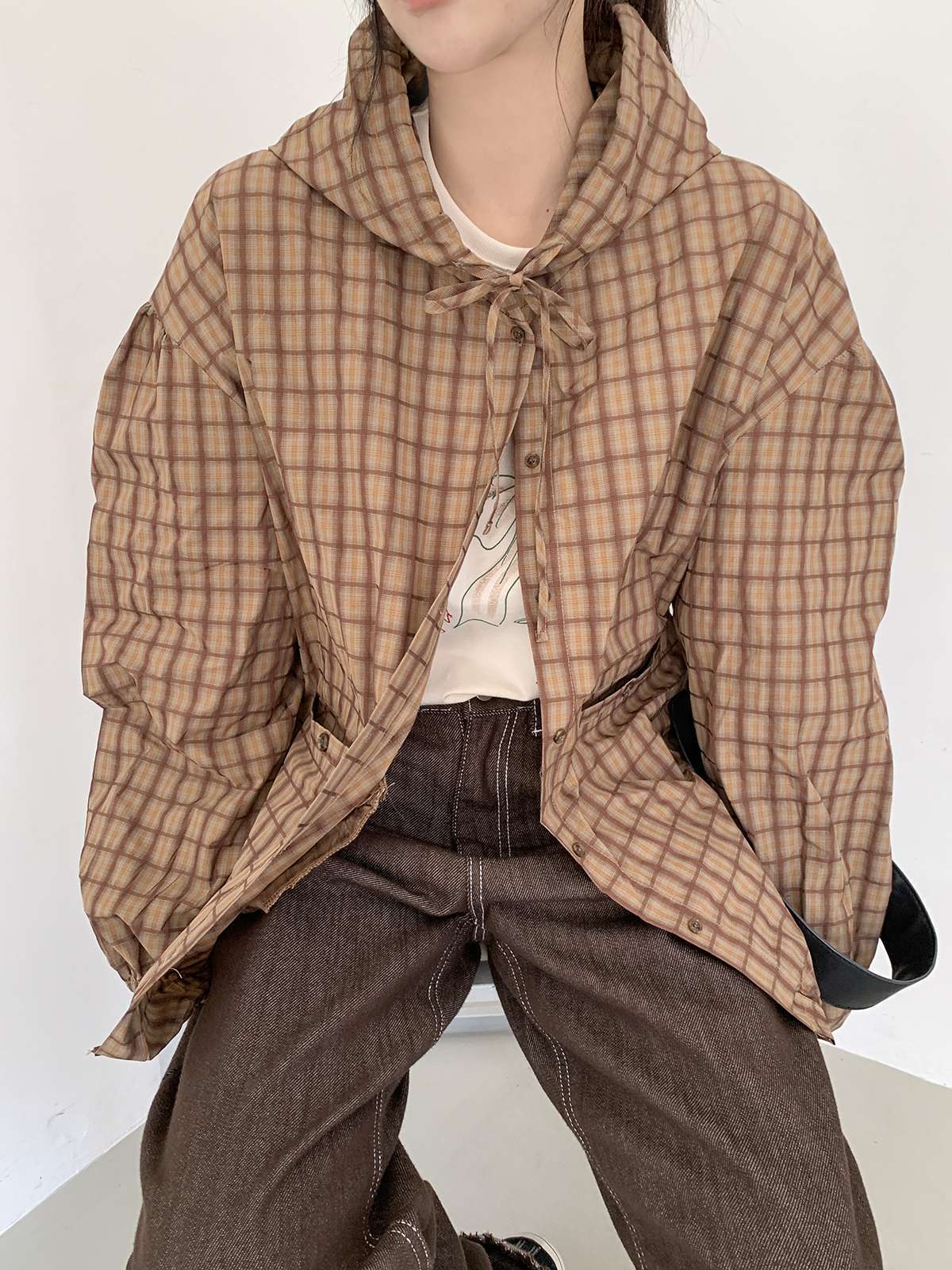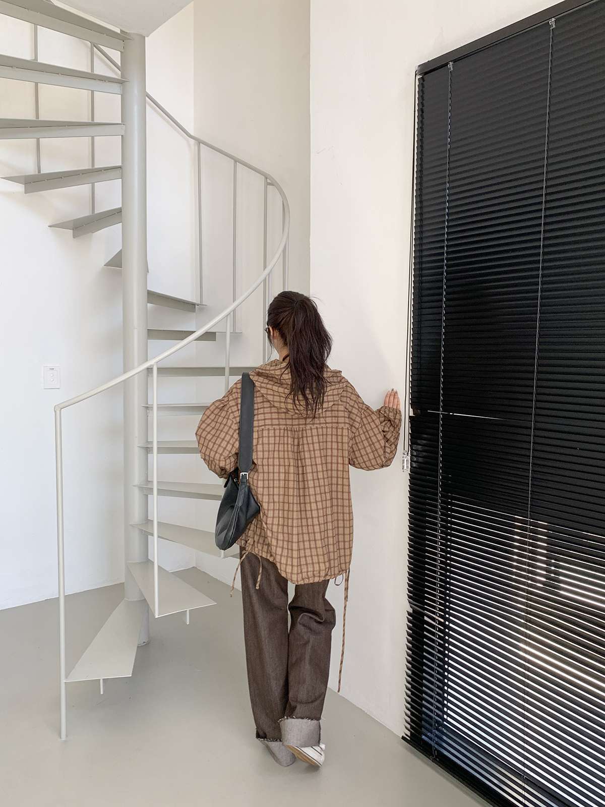 빈티지한 무드의 체크 패턴과 후드가 어우러져 세련된