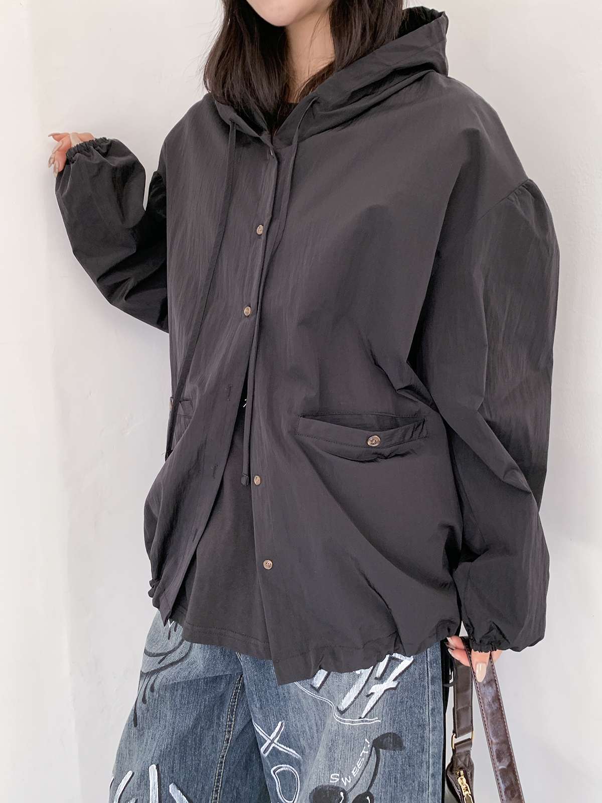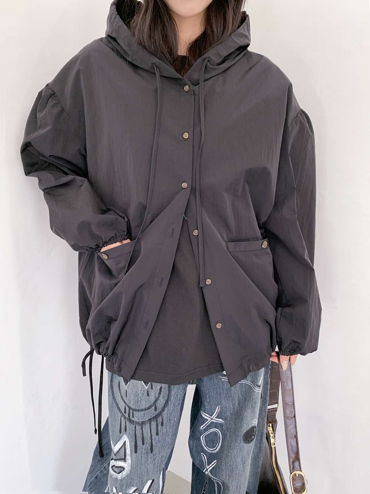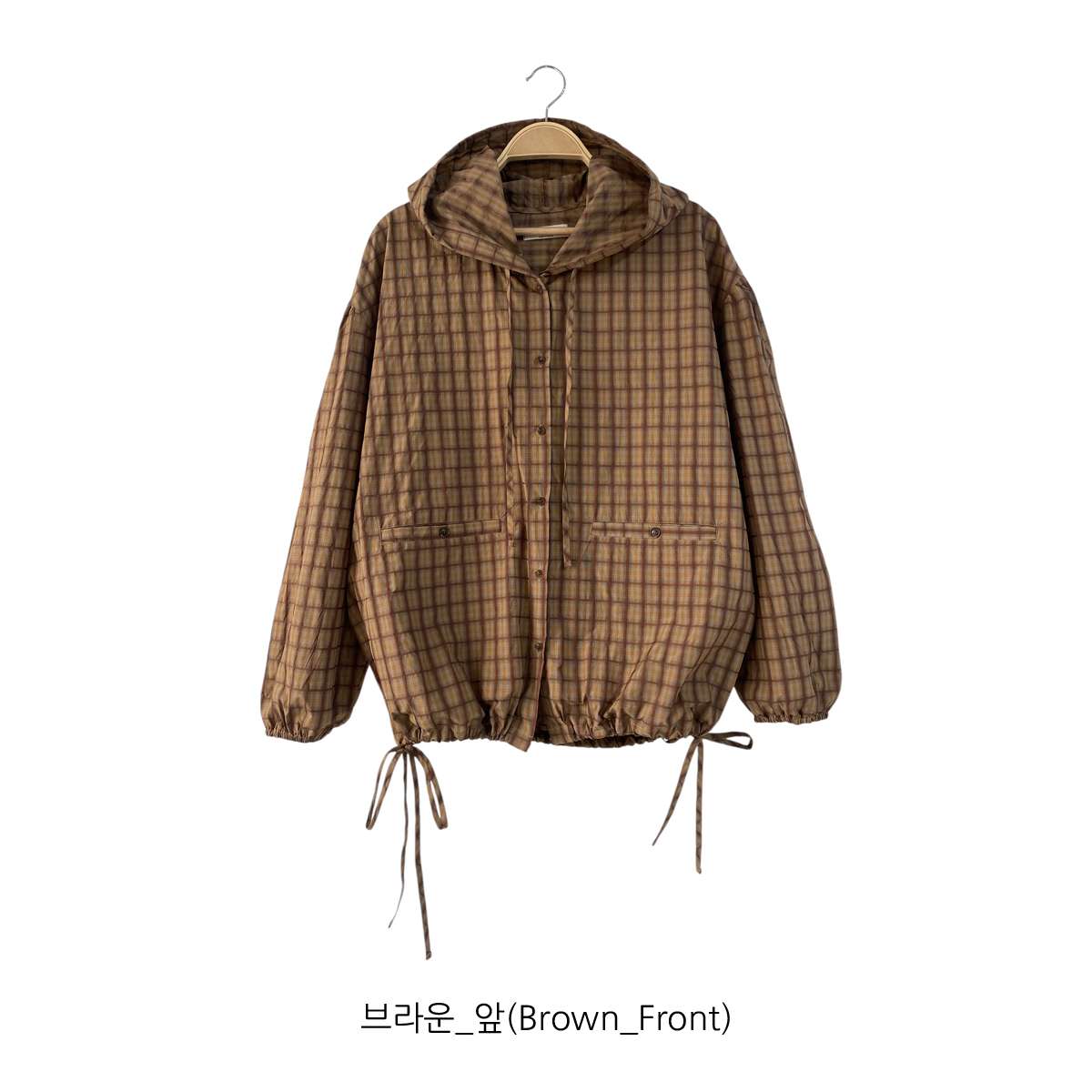 JK6051K59-루킨디 오버핏 체크 후드 바람막이