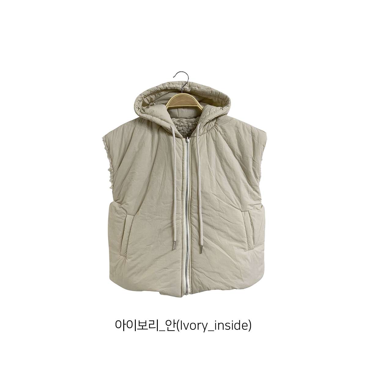 [ VT1386K59-쿠로바 리버시블 양털 후드 경량 패딩 조끼 ]