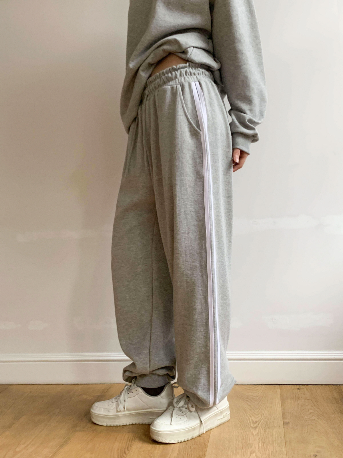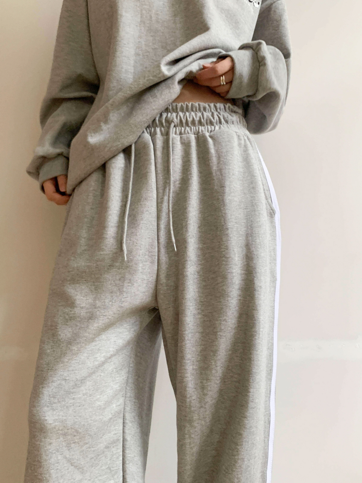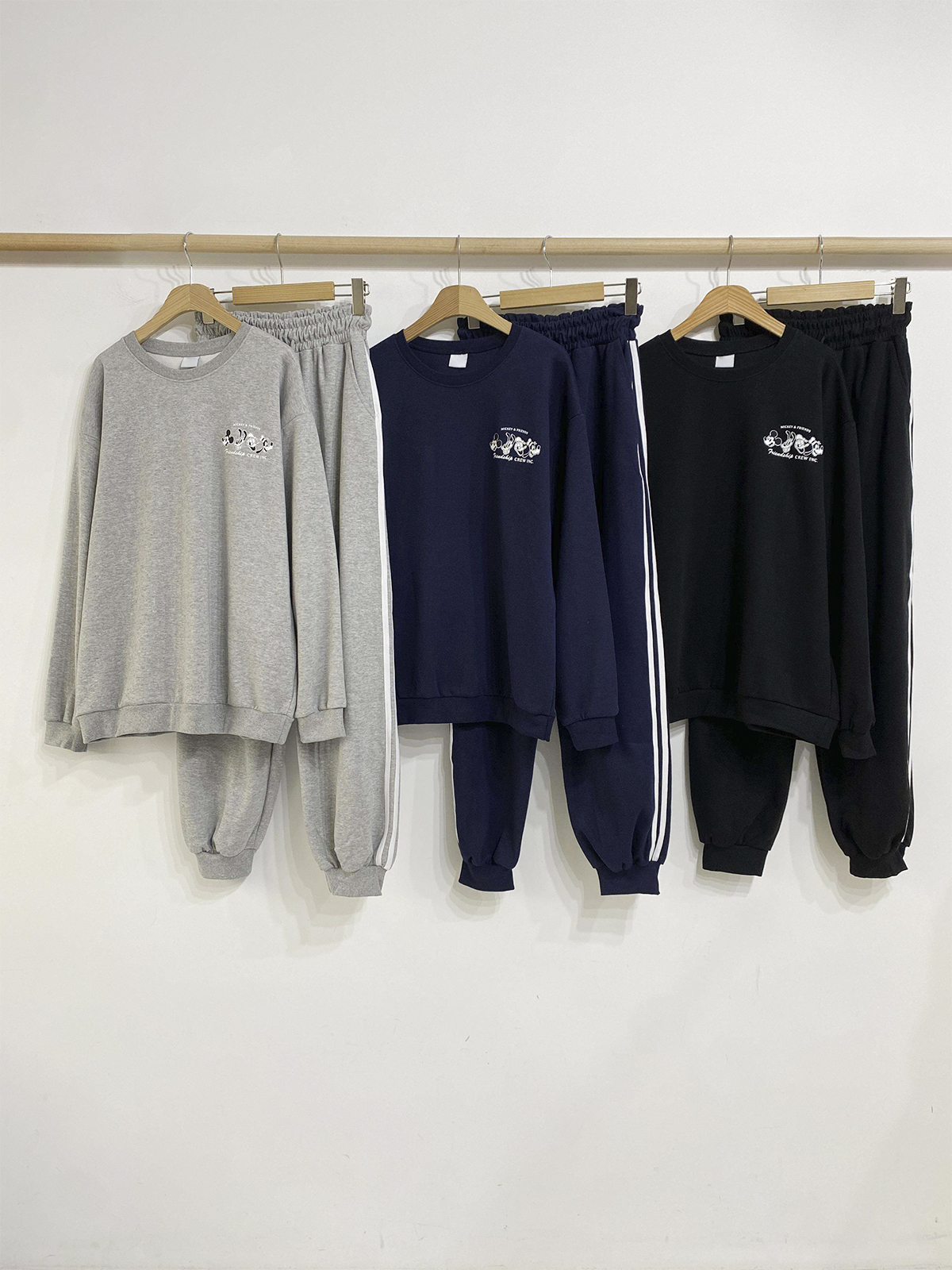 편안하면서도 깔끔한 조거 팬츠 세트입니다.