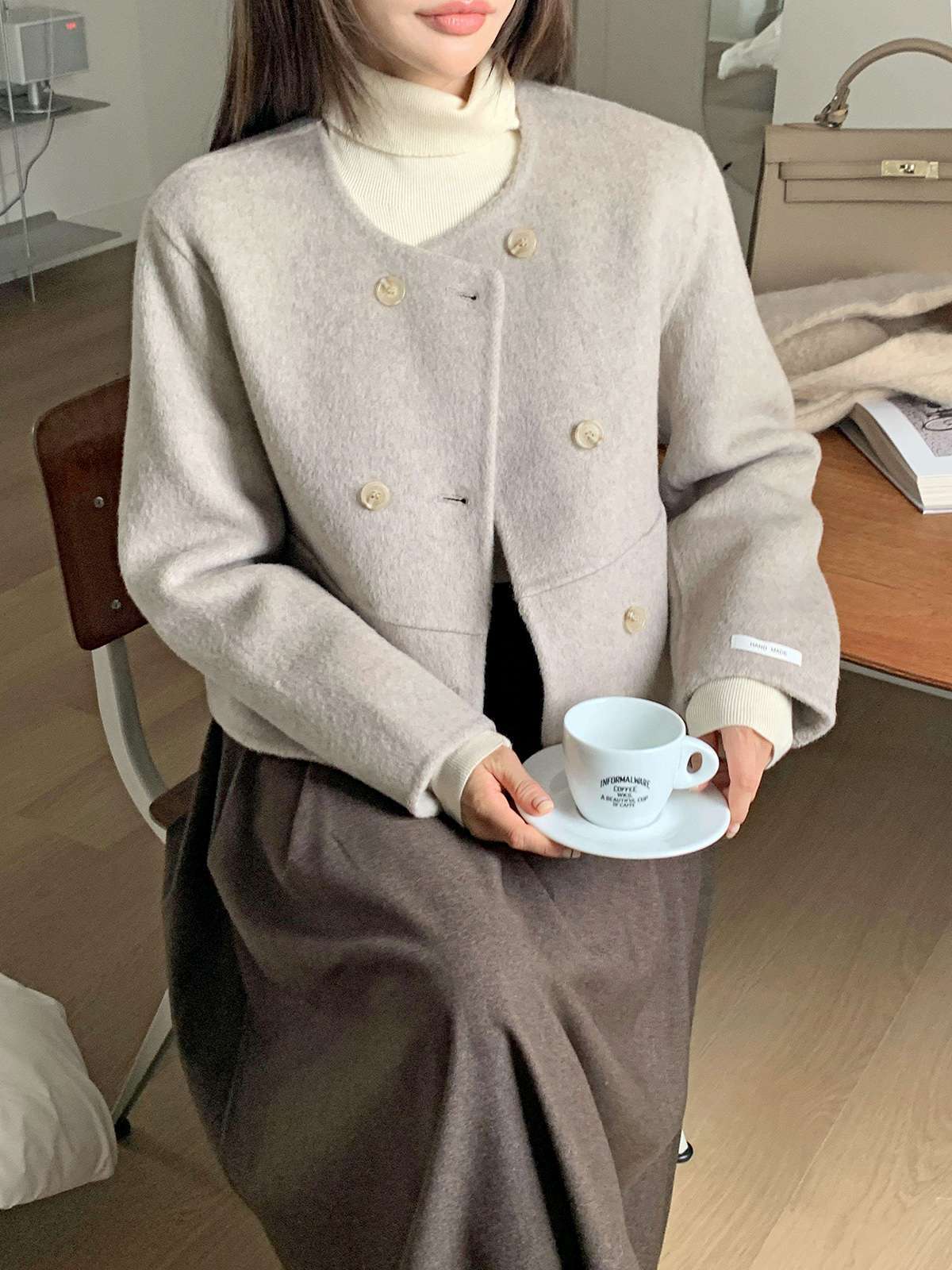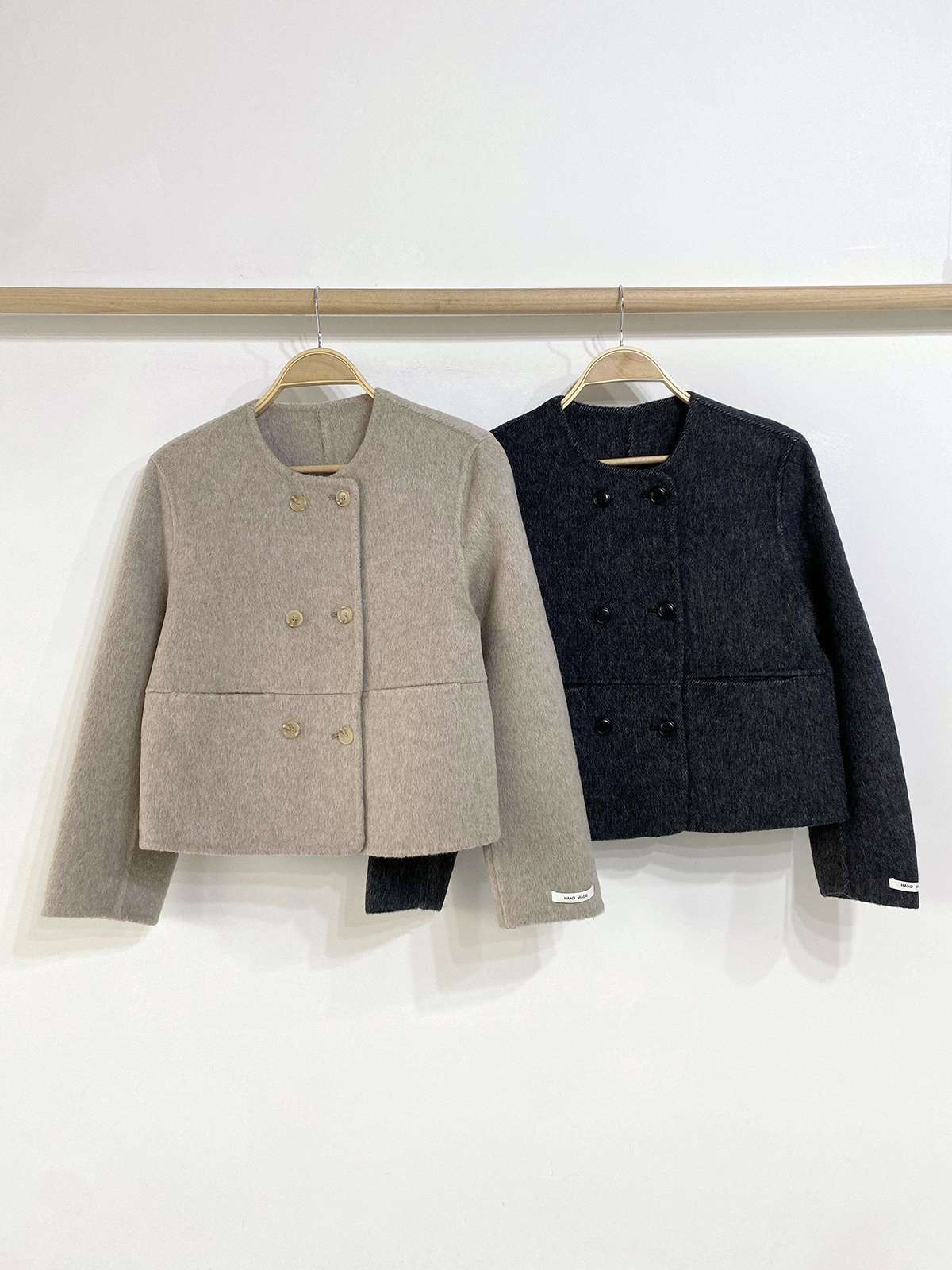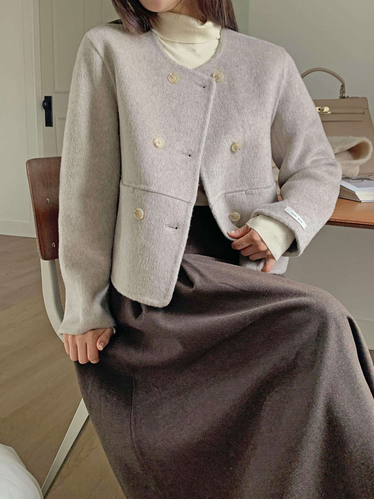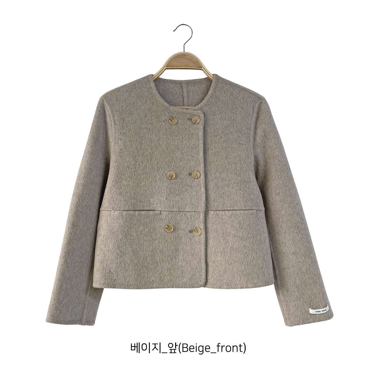 [ JK6058K59-소린후 노카라 더블 버튼 핸드메이드 숏 울 자켓 ]