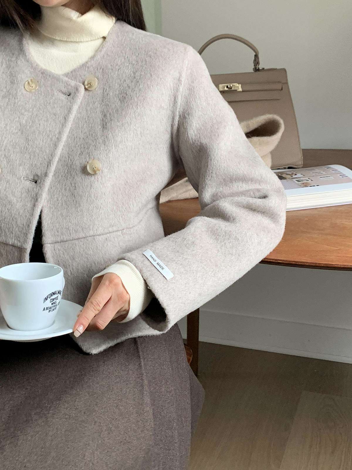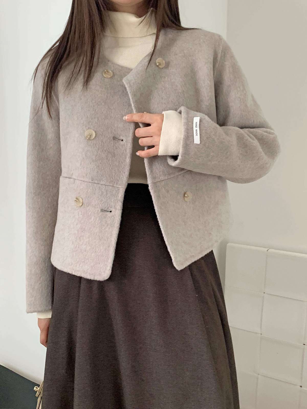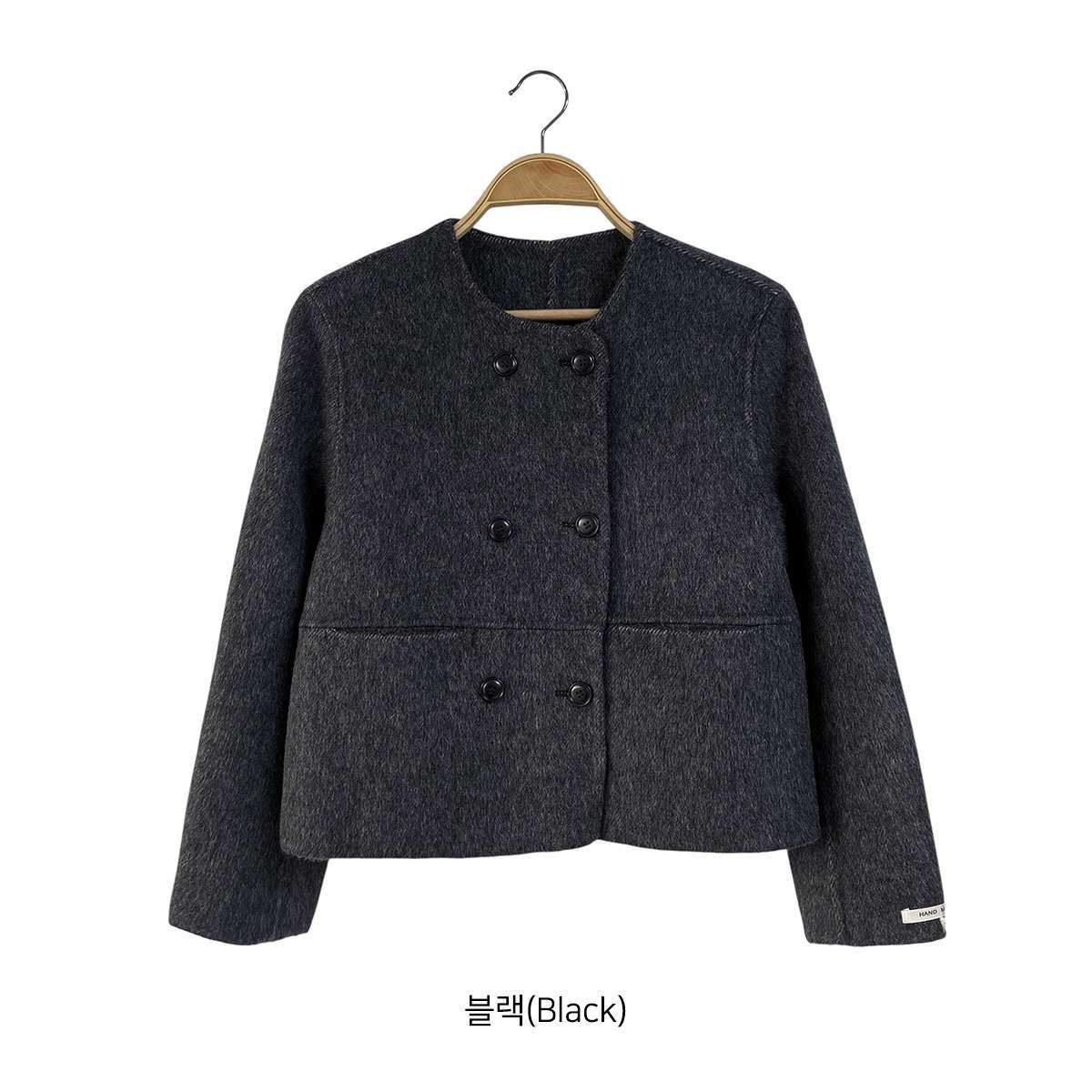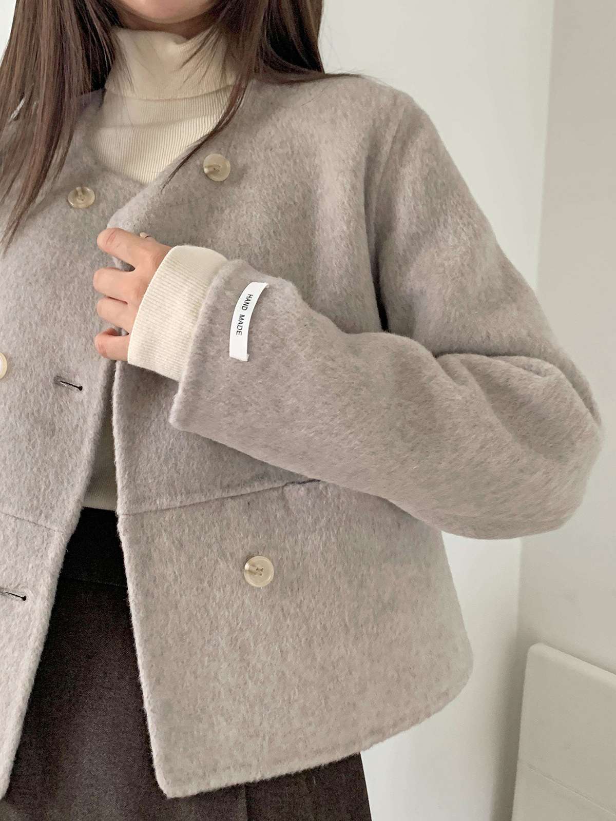 JK6058K59-소린후 노카라 더블 버튼 핸드메이드 숏 울 자켓