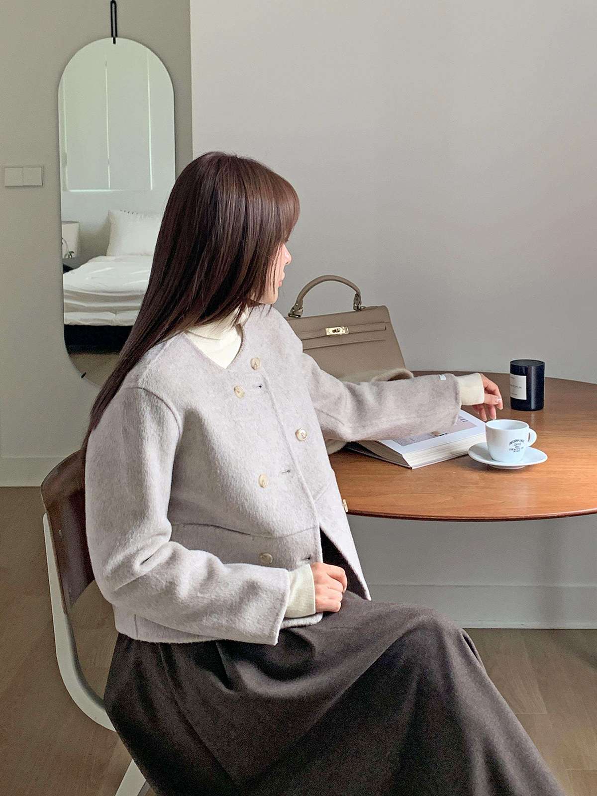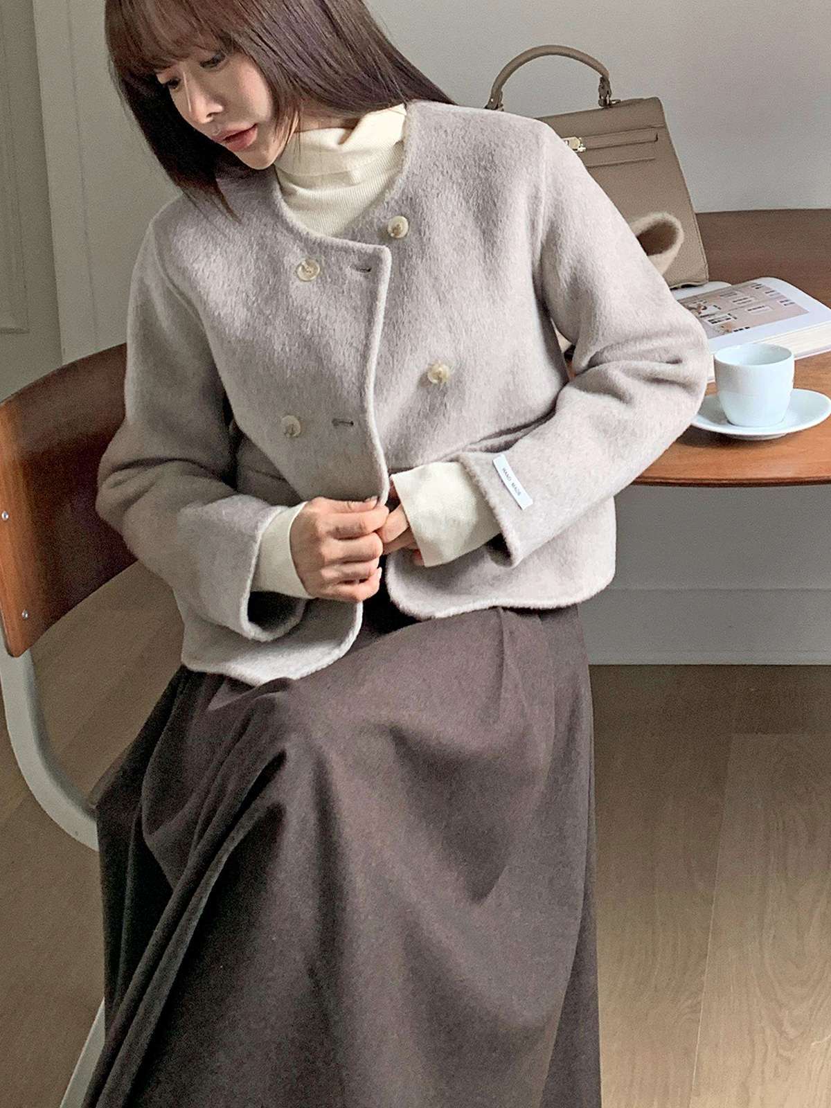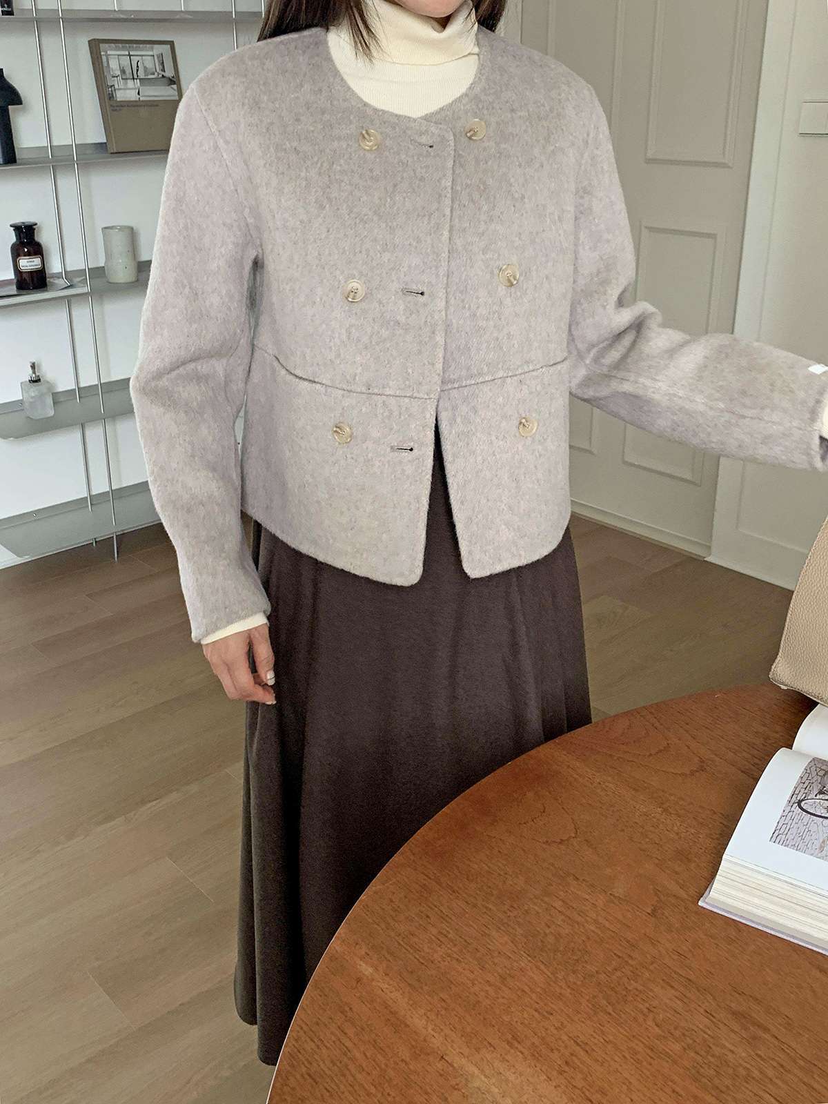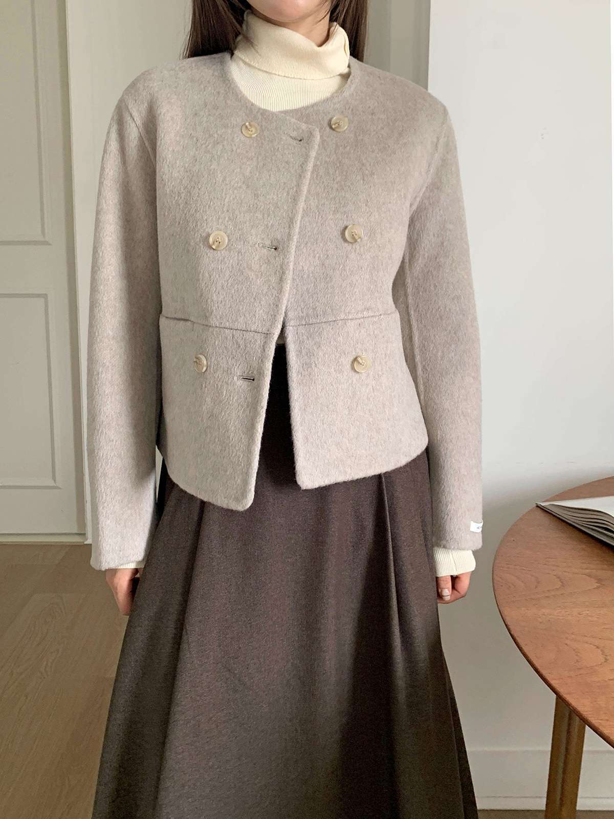 JK6058K59-소린후 노카라 더블 버튼 핸드메이드 숏 울 자켓