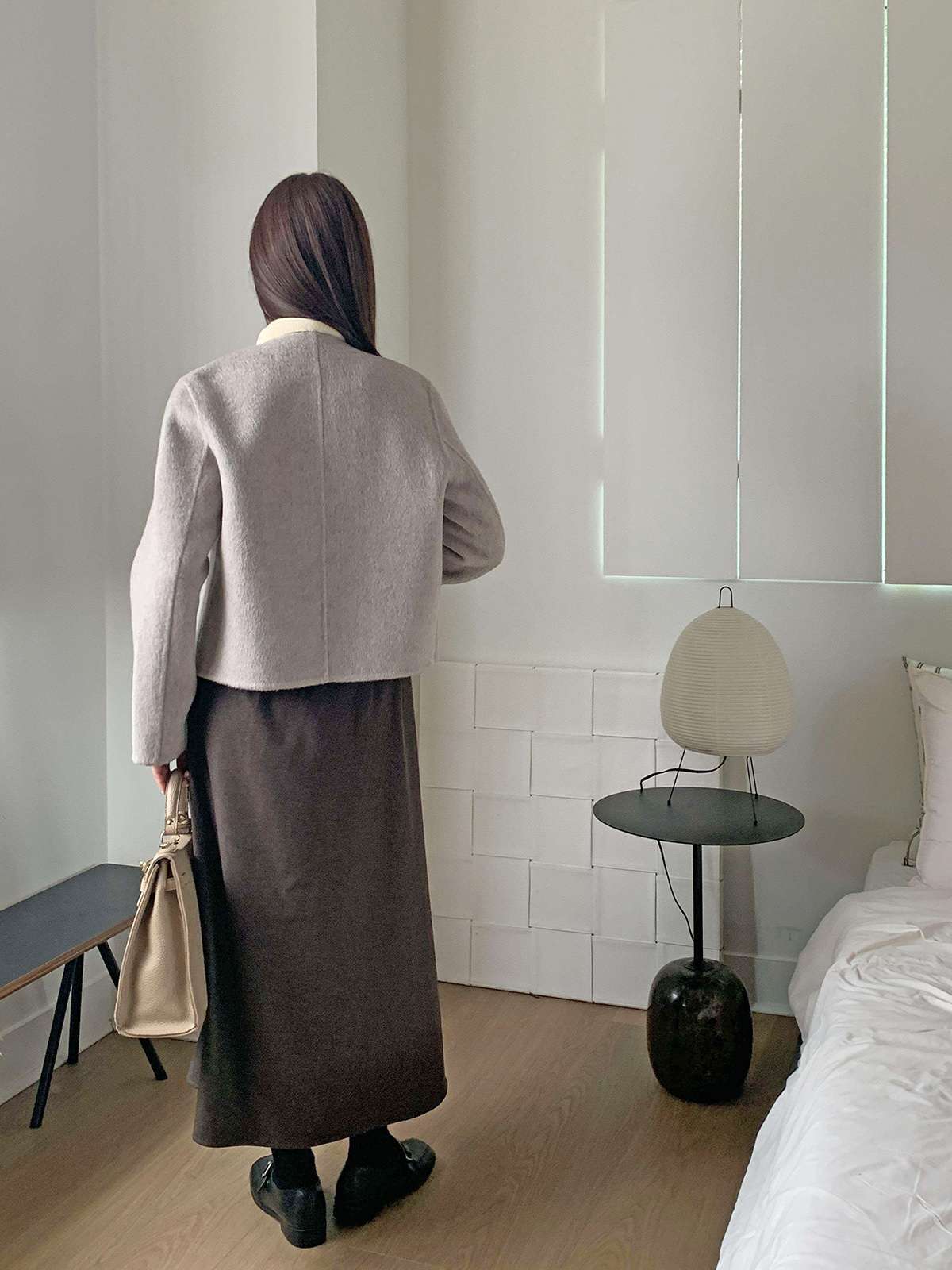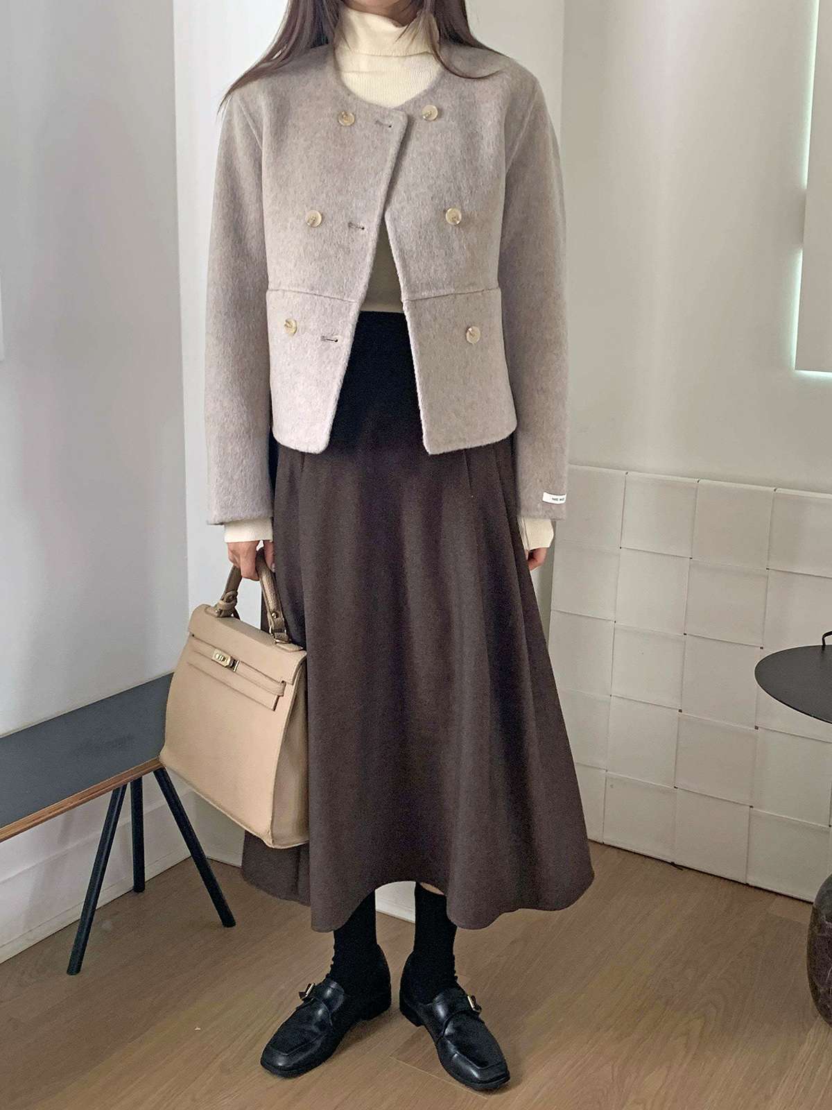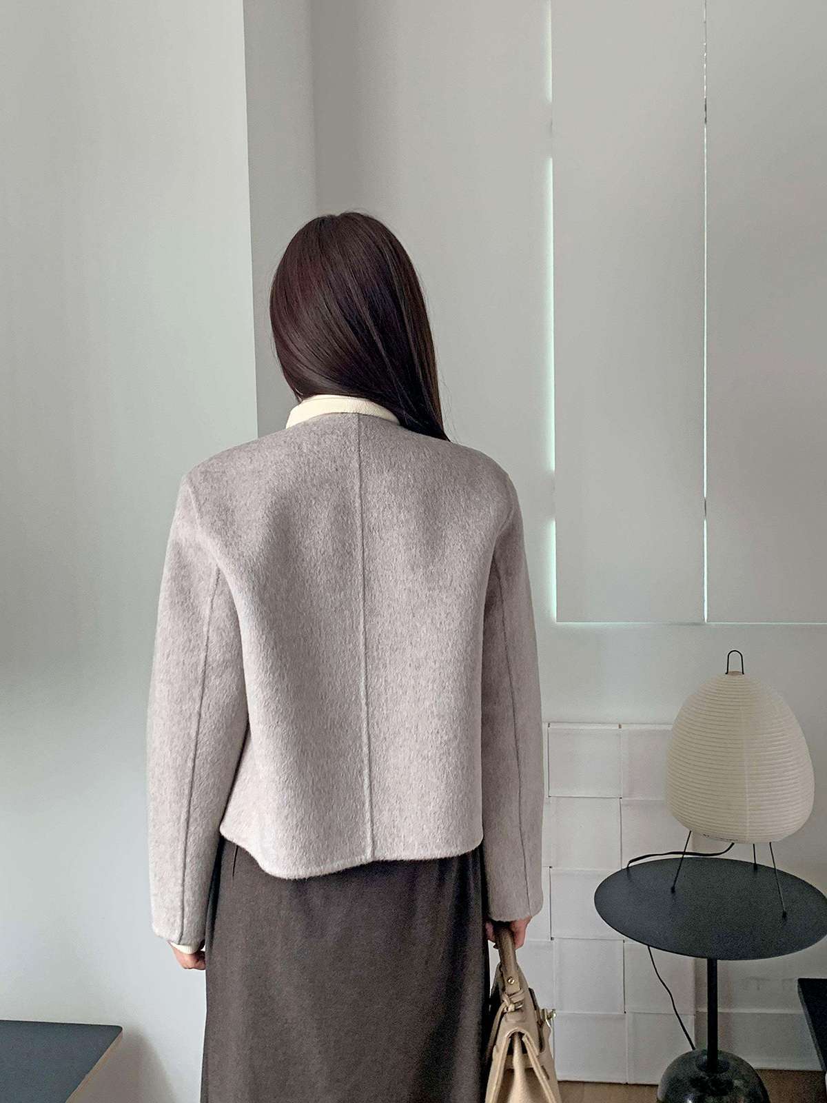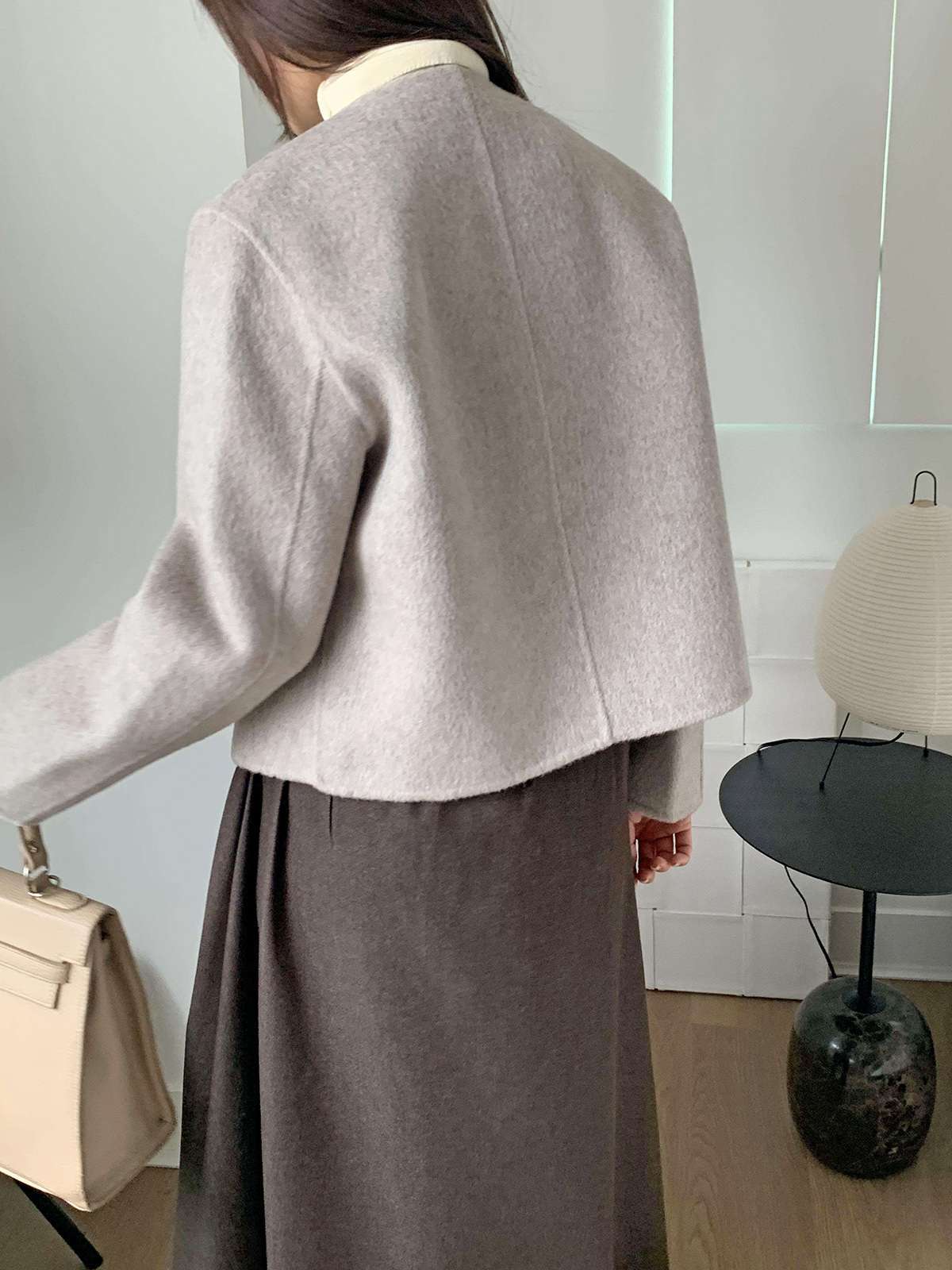JK6058K59-소린후 노카라 더블 버튼 핸드메이드 숏 울 자켓